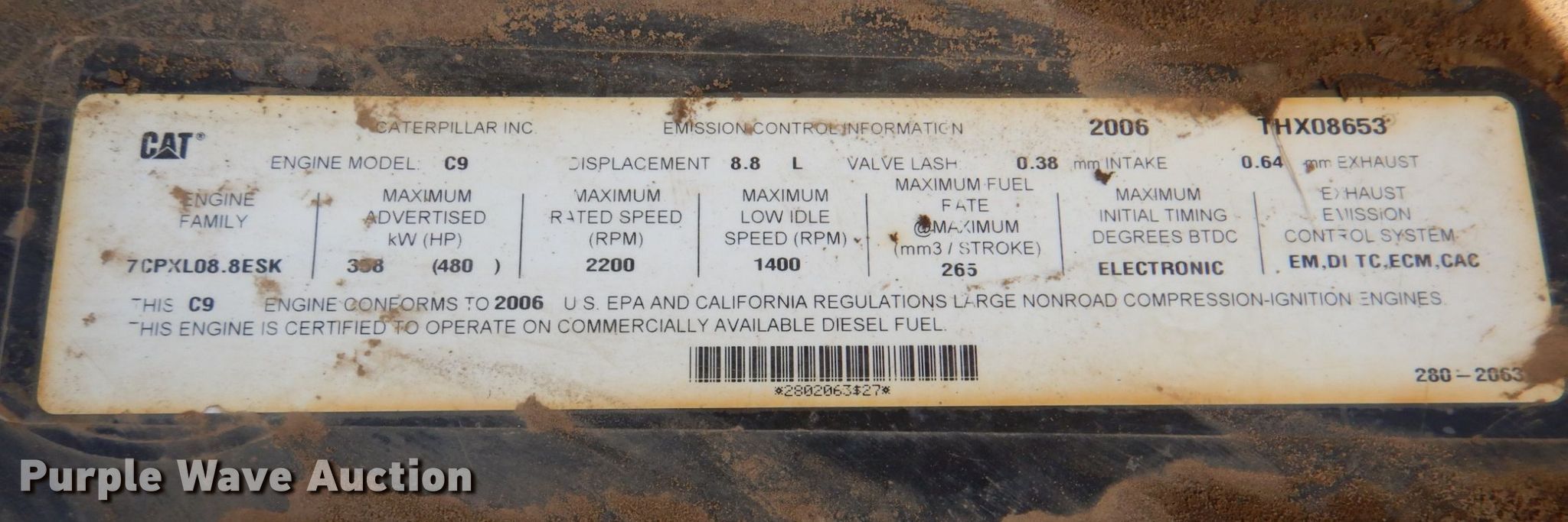 2007 Caterpillar 330DL excavator. Hours: 15,910 on meter, Serial: CAT0330DEMWP01551. Engine Caterpillar C9, Cylinders: 6, Fuel type: Diesel. Transmission Hydrostatic, Two speed travel. Operators station Enclosed cab, AC, Heat, Pattern changer. Operational Auxiliary hydraulics One-way, Two-way, Boom Standard, Stick Stick length: 10' 6", Quick coupler: Hydraulic Caterpillar, Bucket Caterpillar, Width: 56", Teeth: 6. Tracks Width: 31.5", Steel, Grouser pads: Triple. Kings Construction Company. 10241 US 59 Hwy. Oskaloosa, KS 66066