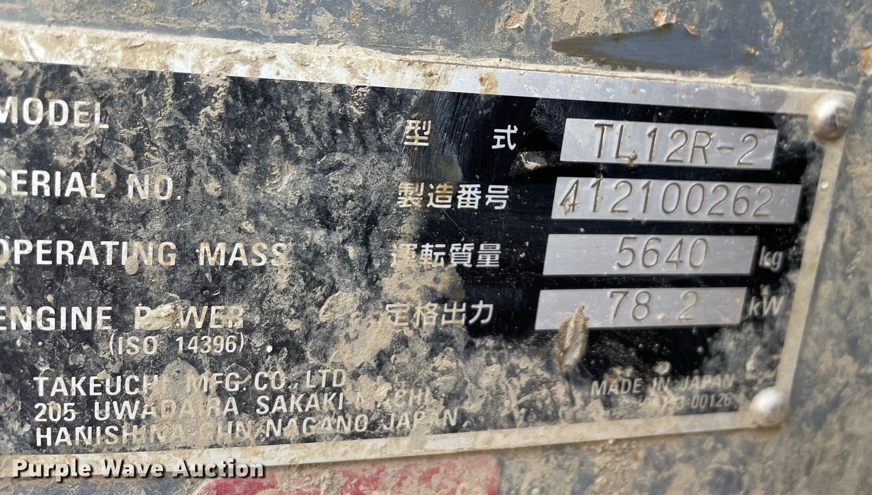 Purple Wave is selling a used Tracked Skid Steer Loader in Missouri. This item is a 2017 Takeuchi TL12R2 tracked skid steer loader with the following: Hours: Unknown, Serial: 412100262