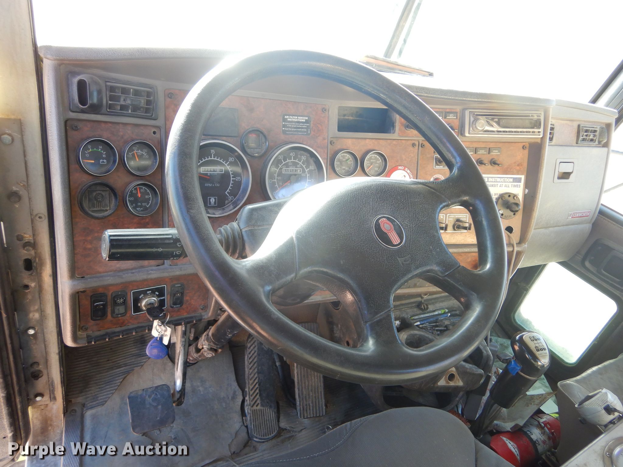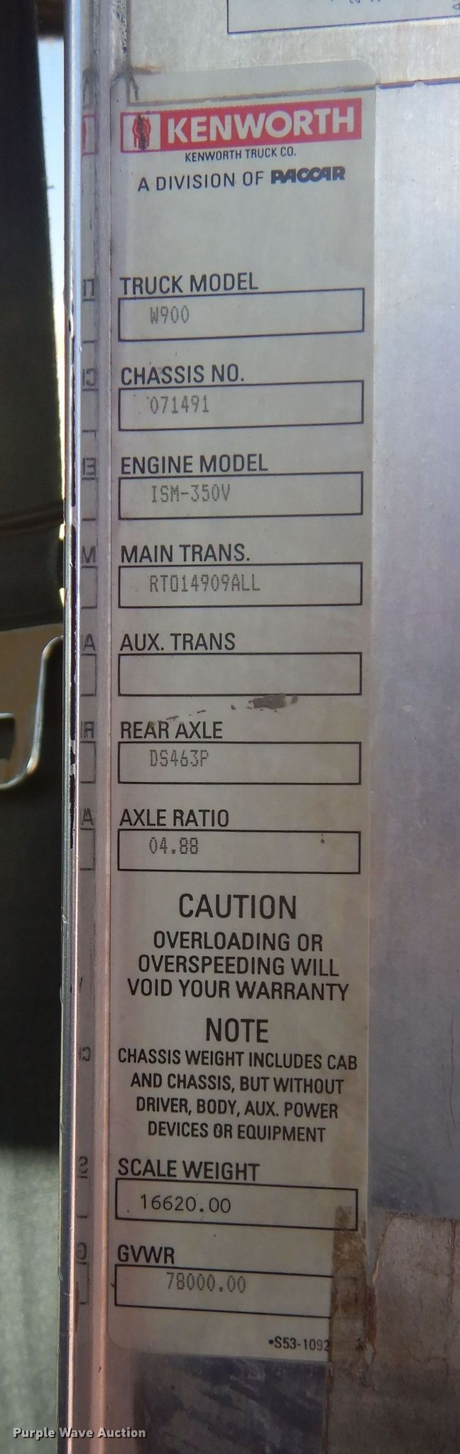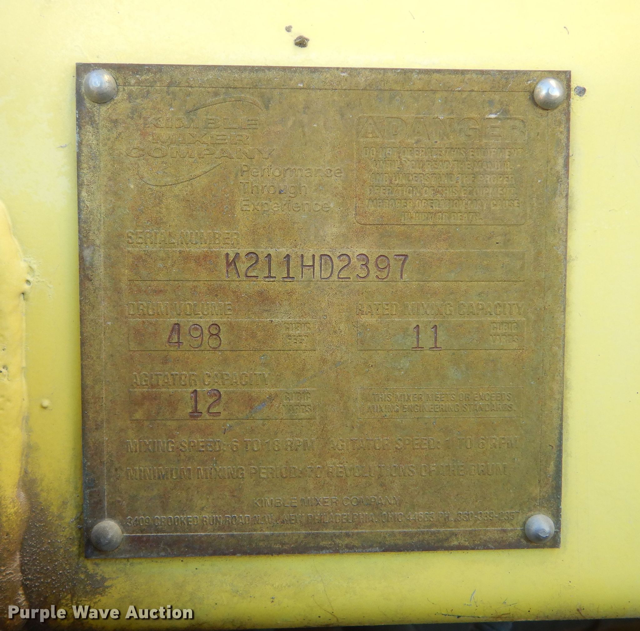 2004 Kenworth W900 ready mix truck. Miles: 210,127 on odometer, Hours: 27,262 on meter, VIN: 1NKWL0EX54J071491. Engine Cummins ISM, Displacement: 10.8L, Cylinders: 6, Fuel type: Diesel. Transmission Eaton Fuller, Manual, Speed: 11. Chassis Axles: 4, Pusher axle, Tag axle, Differential lock: Full, Suspension: Walking beam, Brakes: Air, GVWR: 78,000 lbs FAWR: 20,000 lbs, IAWR: 23,000 lbs, RAWR: 23,000 lbs, Lift axle GAWR: 11,020 lbs. Interior AC, Heat, Cruise control. Operational Mixer Kimble Mixer Company K-2000, Serial: K211HD2397, Capacity: 11 cu.yd., Discharge: Rear, In-cab controls, Rear drum controls, Water tank capacity: 150 gallons, Chute Extensions: 3, Chute type: Steel.. Tires Front: 425/65R22.5, Rear: 11R22.5, Lift axle: 255/70R22.5. Notes Contents not included, Coolant in the oil. South Dakota title. Concrete Materials - Sweetman Const.. 1305 N Louise Ave. Sioux Falls, SD 57107