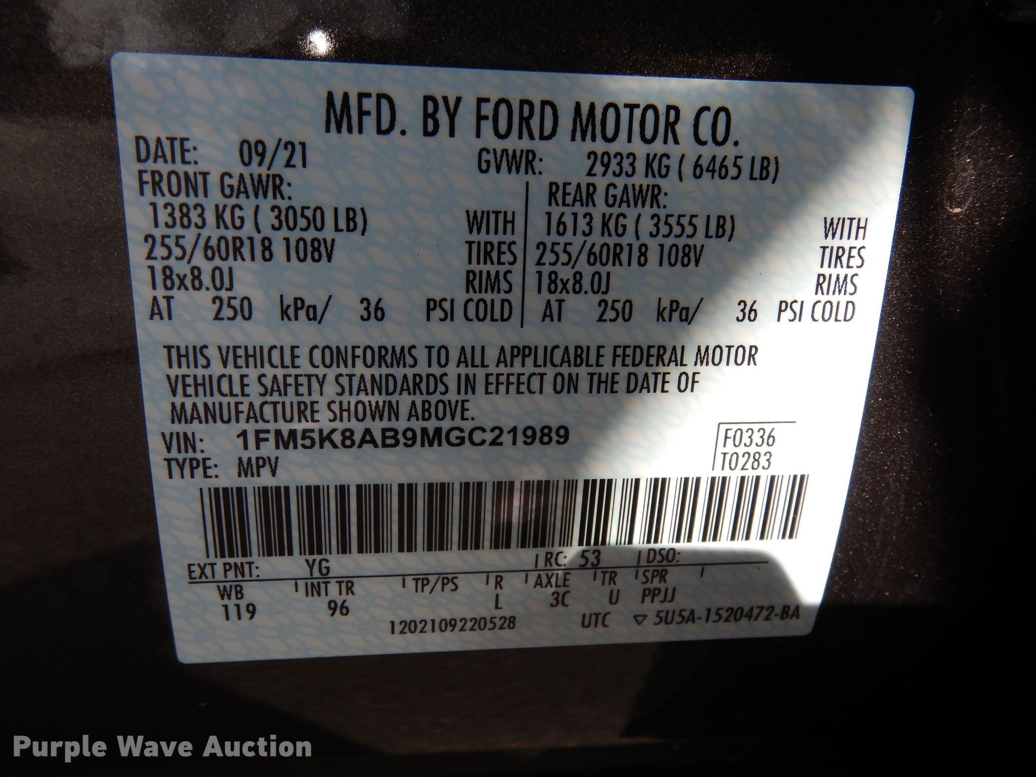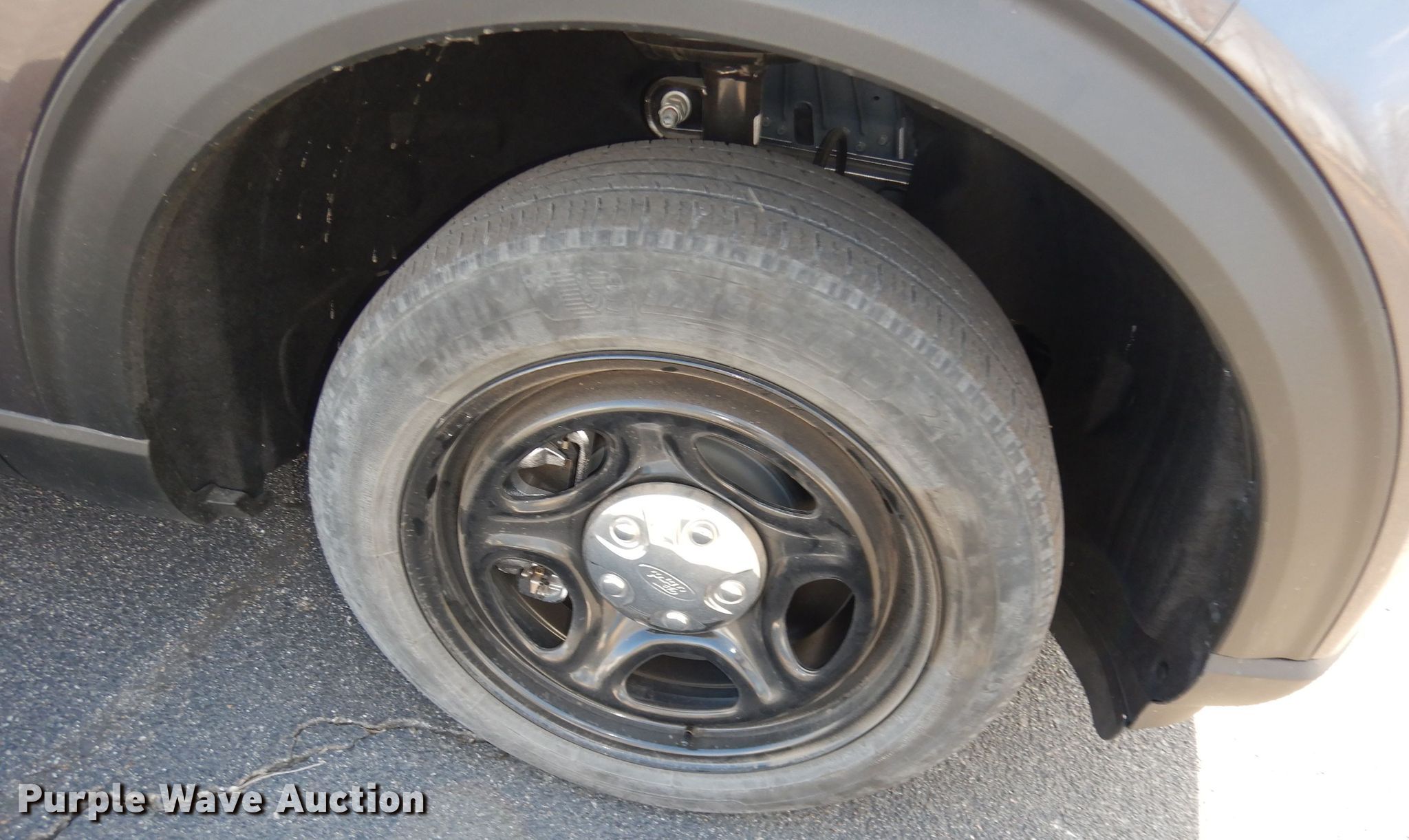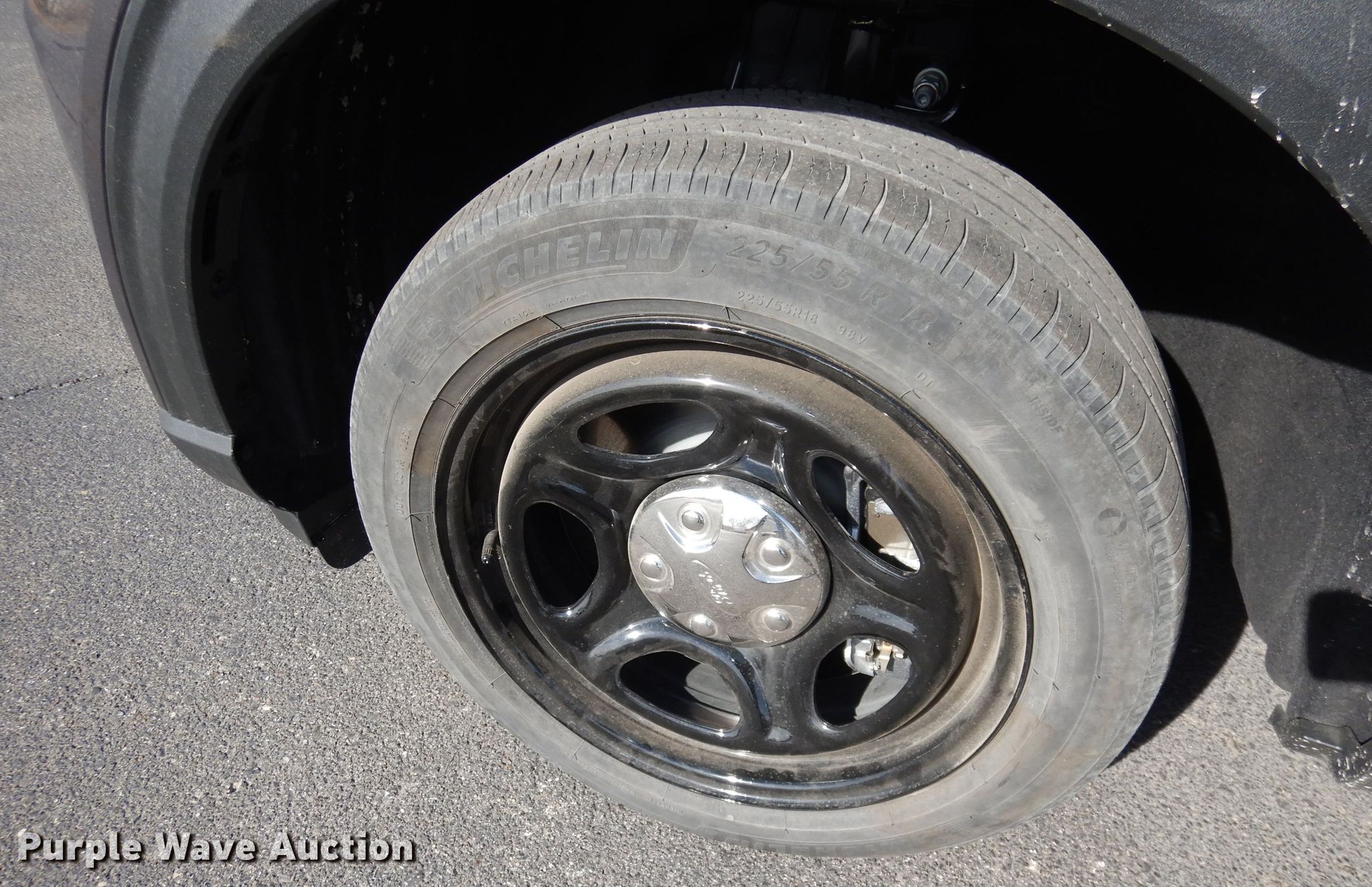 2021 Ford Explorer Police Interceptor SUV. Miles: 168 on odometer, VIN: 1FM5K8AB9MGC21989. Engine Displacement: 3.3L V6 DOHC 24V, Cylinders: 6, Fuel type: Gas. Transmission Automatic, All wheel drive. Interior AC, Heat, Seat: Power driver, Power windows, Power locks, Cruise control, Backup camera. Tires Size: 225/55R18. Notes No center console, Dead battery, Roof damage, Front end damage. Title distribution may be delayed up to 14 days from verification of funds. 825 Levee Dr. Manhattan, KS 66502
