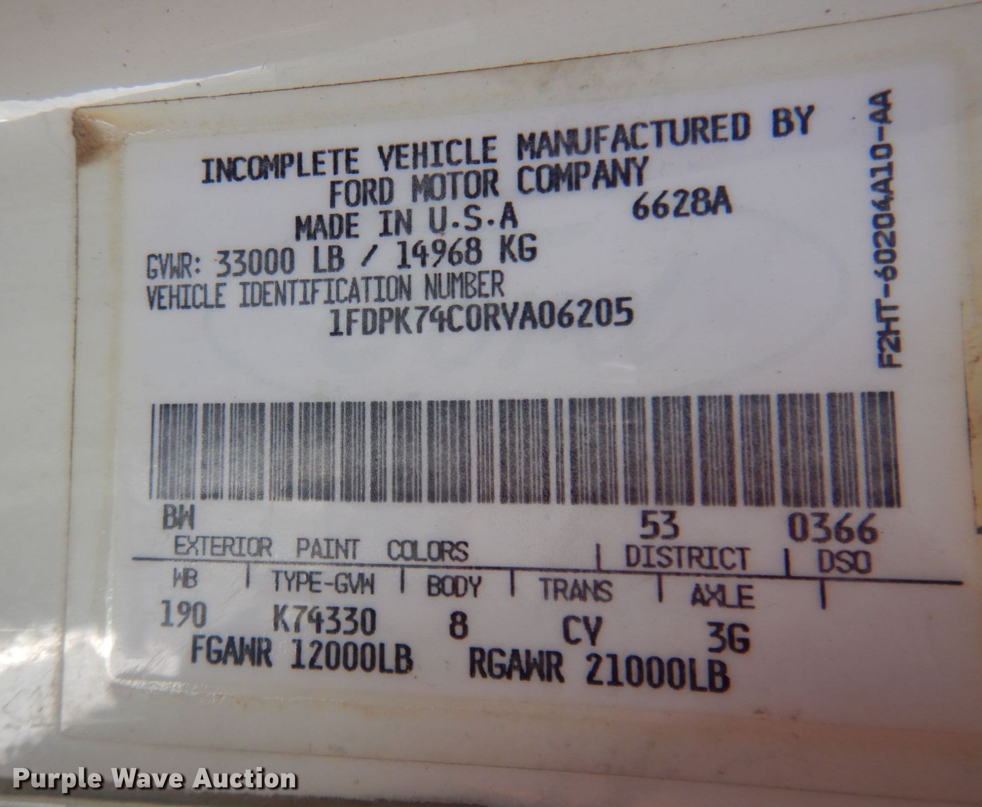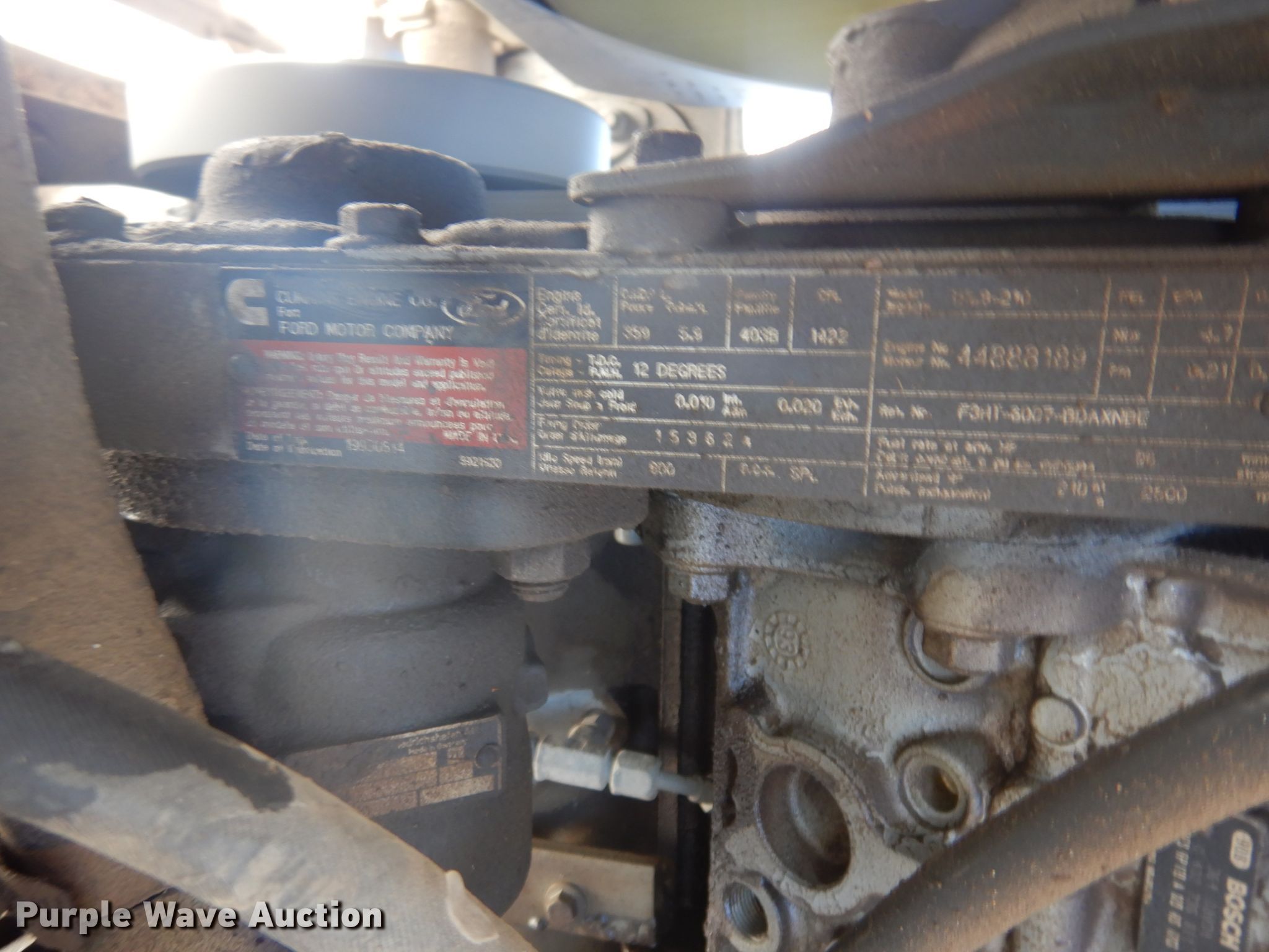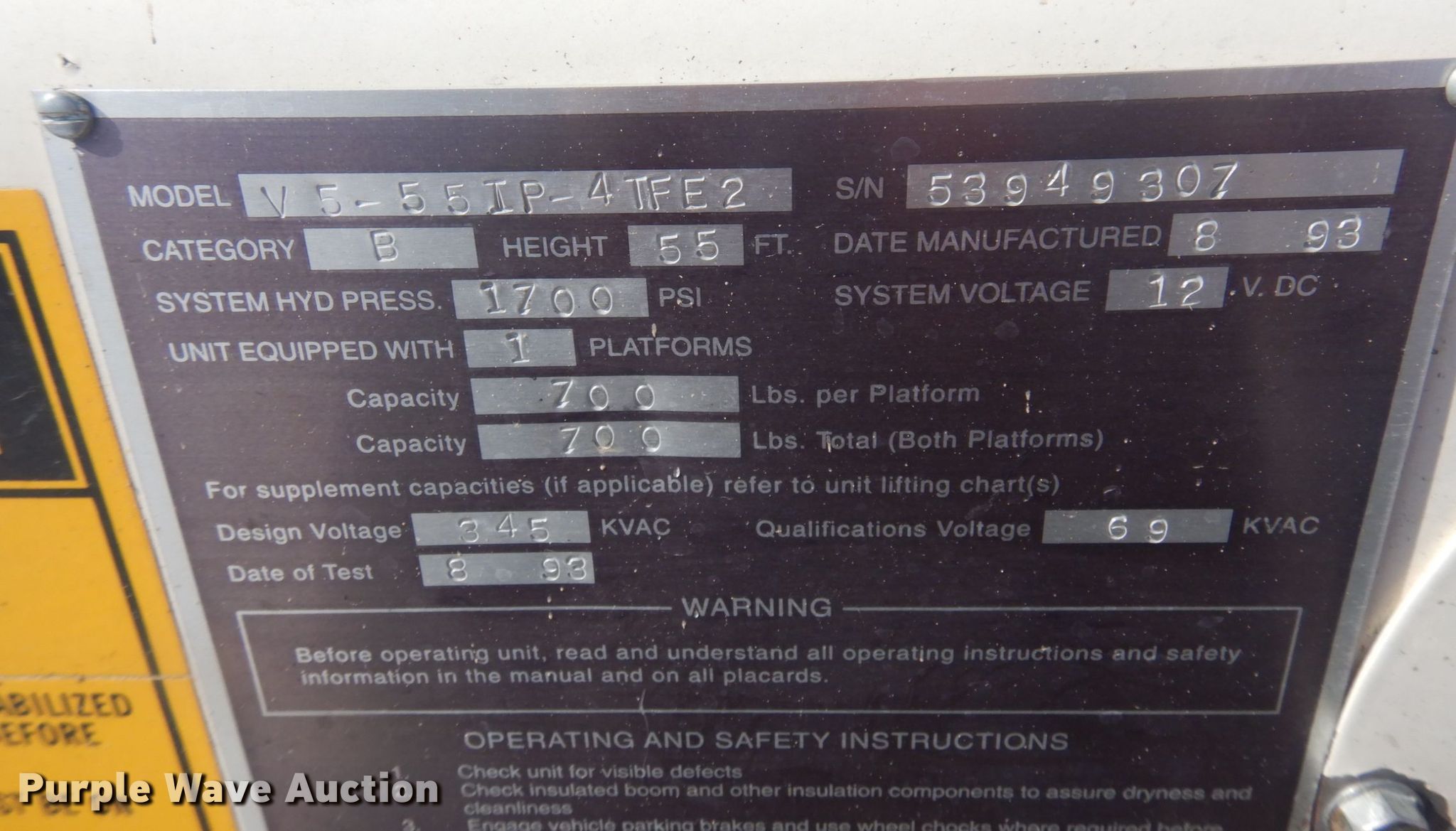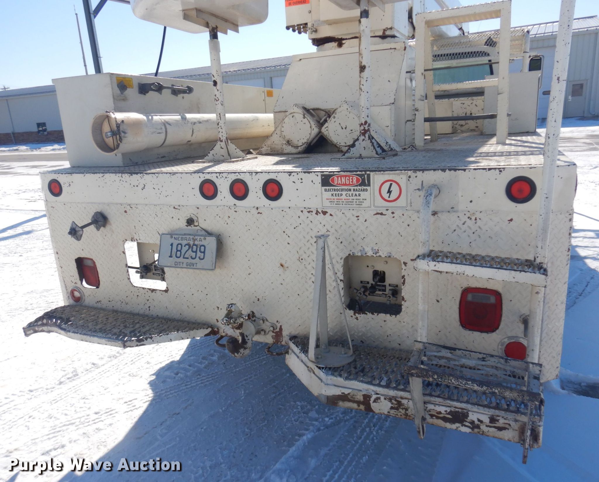 1994 Ford F700 bucket truck. Miles: 33,778 on odometer, Hours: 7,751 on meter, VIN: 1FDPK74C0RVA06205. Engine Cummins, Serial: 44888189, Displacement: 5.9L, Cylinders: 6, Fuel type: Diesel. Transmission Manual, Speed: 5. Chassis Axles: Single, Suspension: Spring, Brakes: Air, PTO. Operational Bed 17' L x 8' W, Boom 1998 V5-55IP-4TFE2, Serial: 53949307, Maximum lift capacity: 700 lbs, Maximum lift height: 55', Boom type: Articulating, Man basket, Boom controls Ground, Platform/ basket.. Tires Size: 10.00R20. Nebraska title. Seller is a government entity who will be assigning and distributing the title. Please contact the seller for distribution questions. City of Alliance. 324 Laramie Ave. Alliance, NE 69301