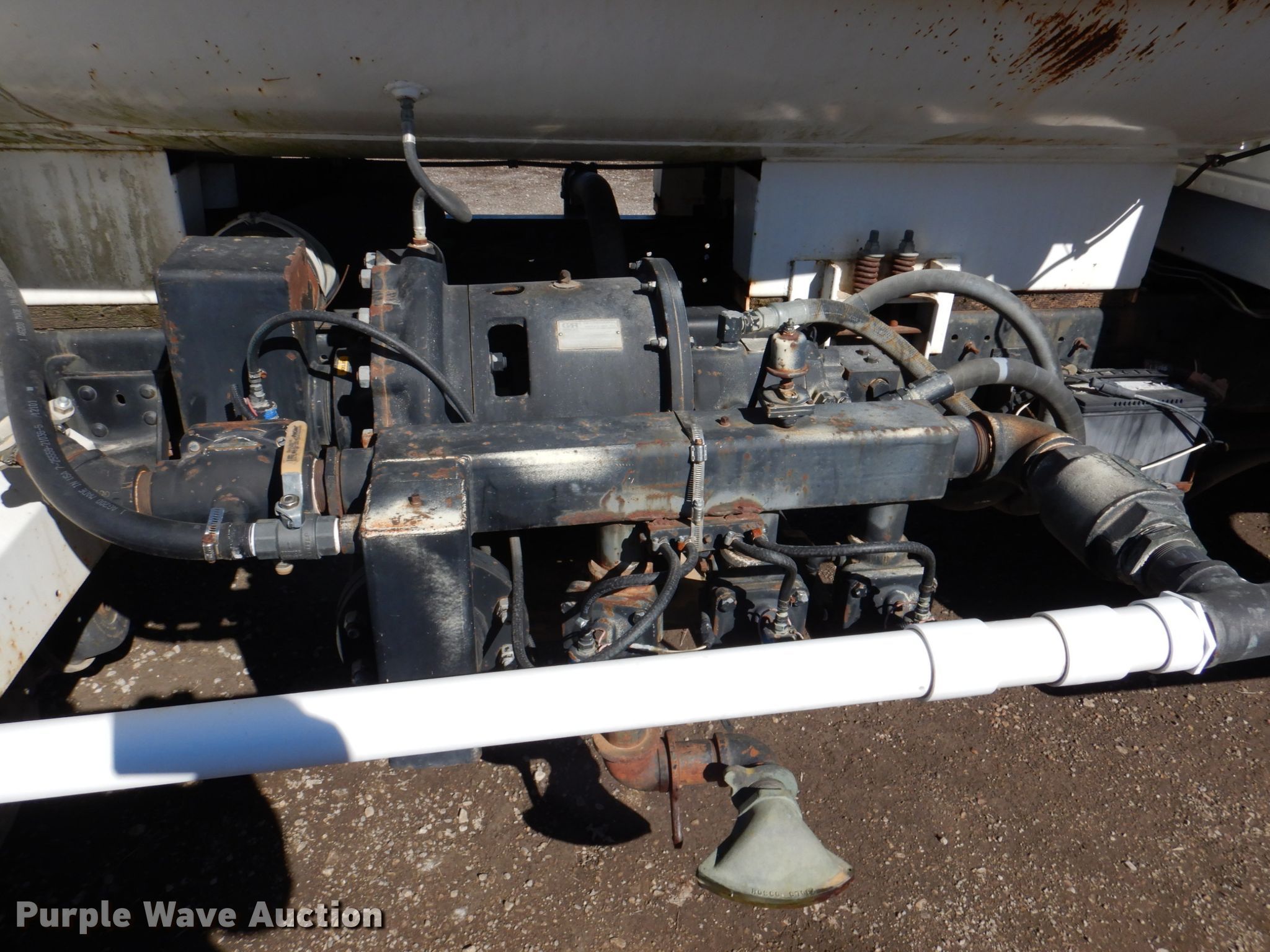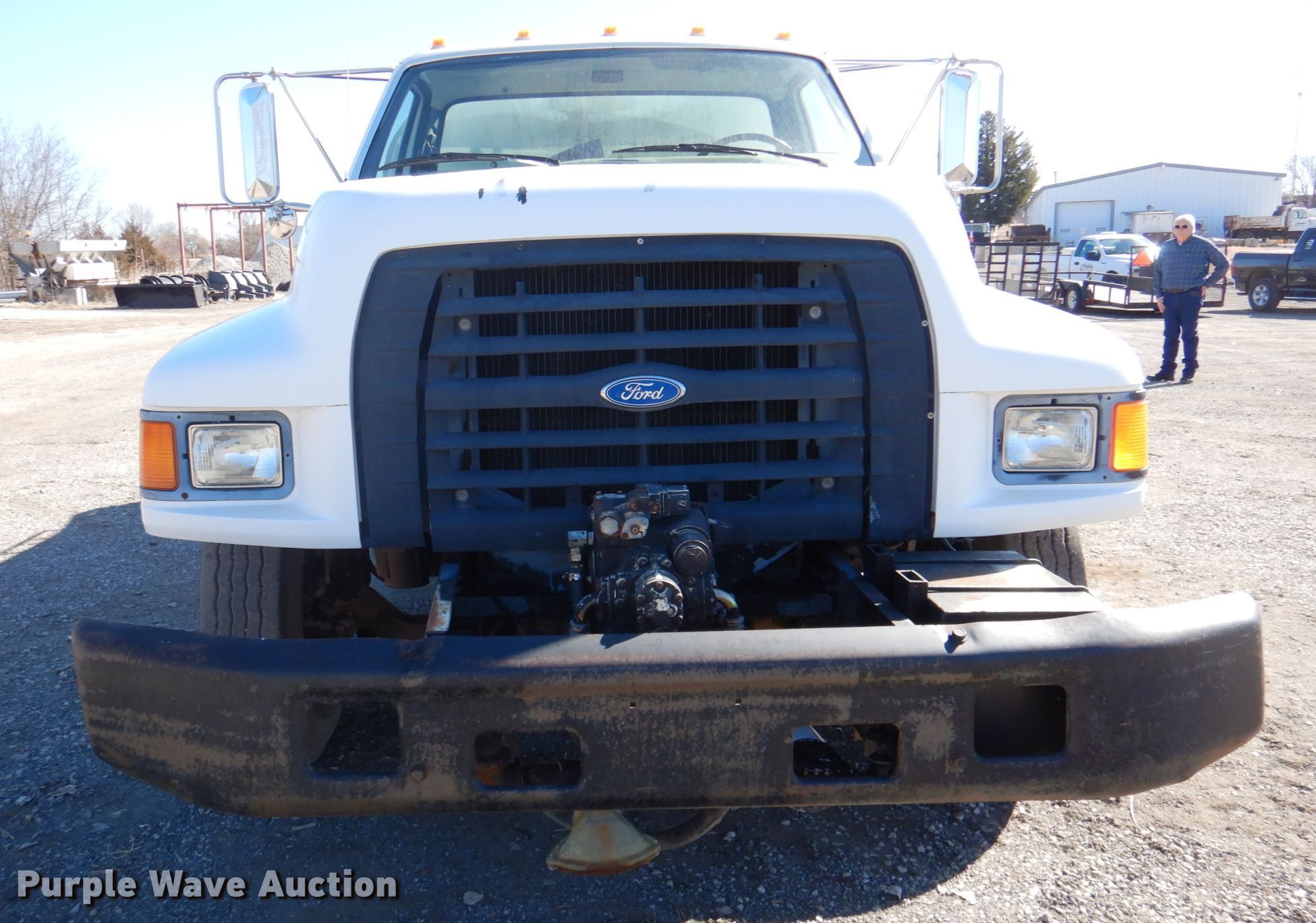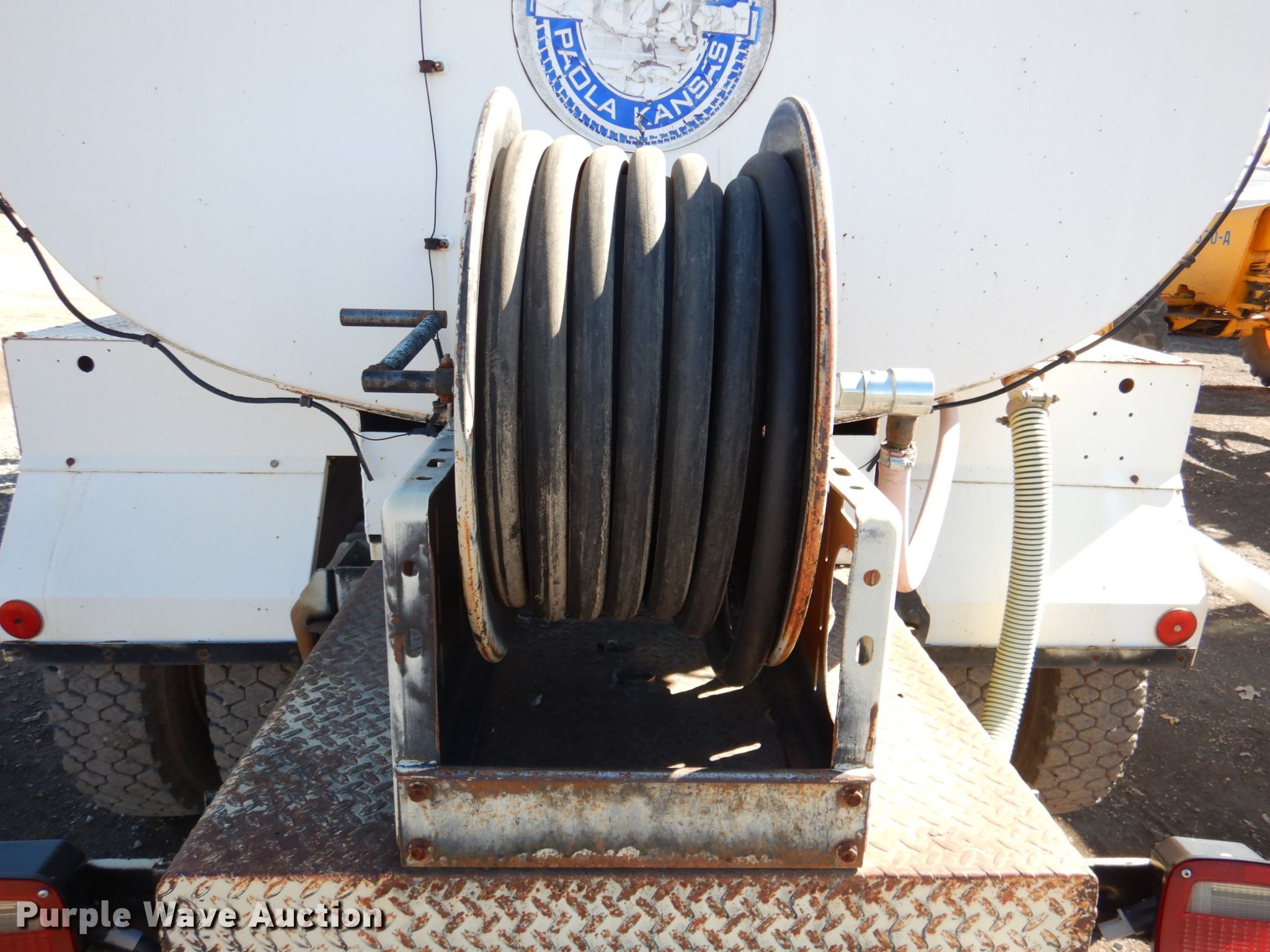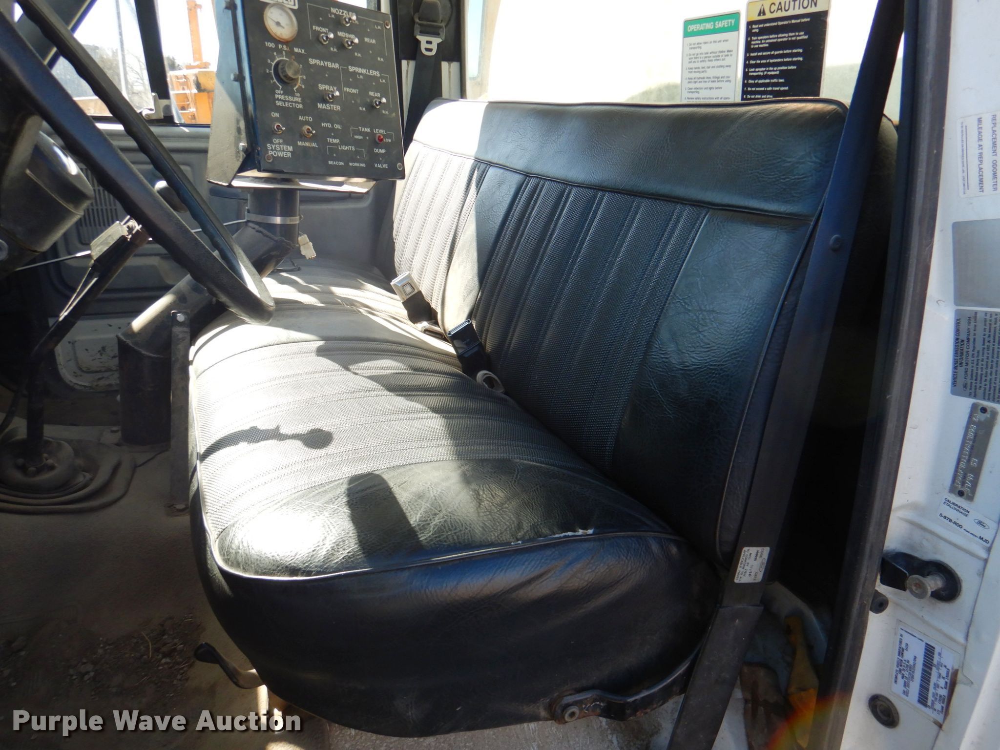 1995 Ford F700 water truck. Miles: 3,665 on odometer, VIN: 1FDXF70J1SVA17048. Engine Displacement: 7.0L, Cylinders: 8, Fuel type: Gas. Transmission Manual, Speed: 5, plus 2. Chassis Axles: Single, Suspension: Spring, Brakes: Air, GVWR: 28,000 lbs, Wheelbase: 171". Interior Heat. Operational Bed / tank Rosco MTA-11, Serial: 33422, Capacity: 1,600 gallons, Spray bar: Front, Rear, Side discharge, Hose reel. Tires Size: 265/75R22.5. Notes Tank leaks, rust holes in bottom of tank. Kansas title. City of Paola. 29370 Old KC Rd. Paola, KS 66071