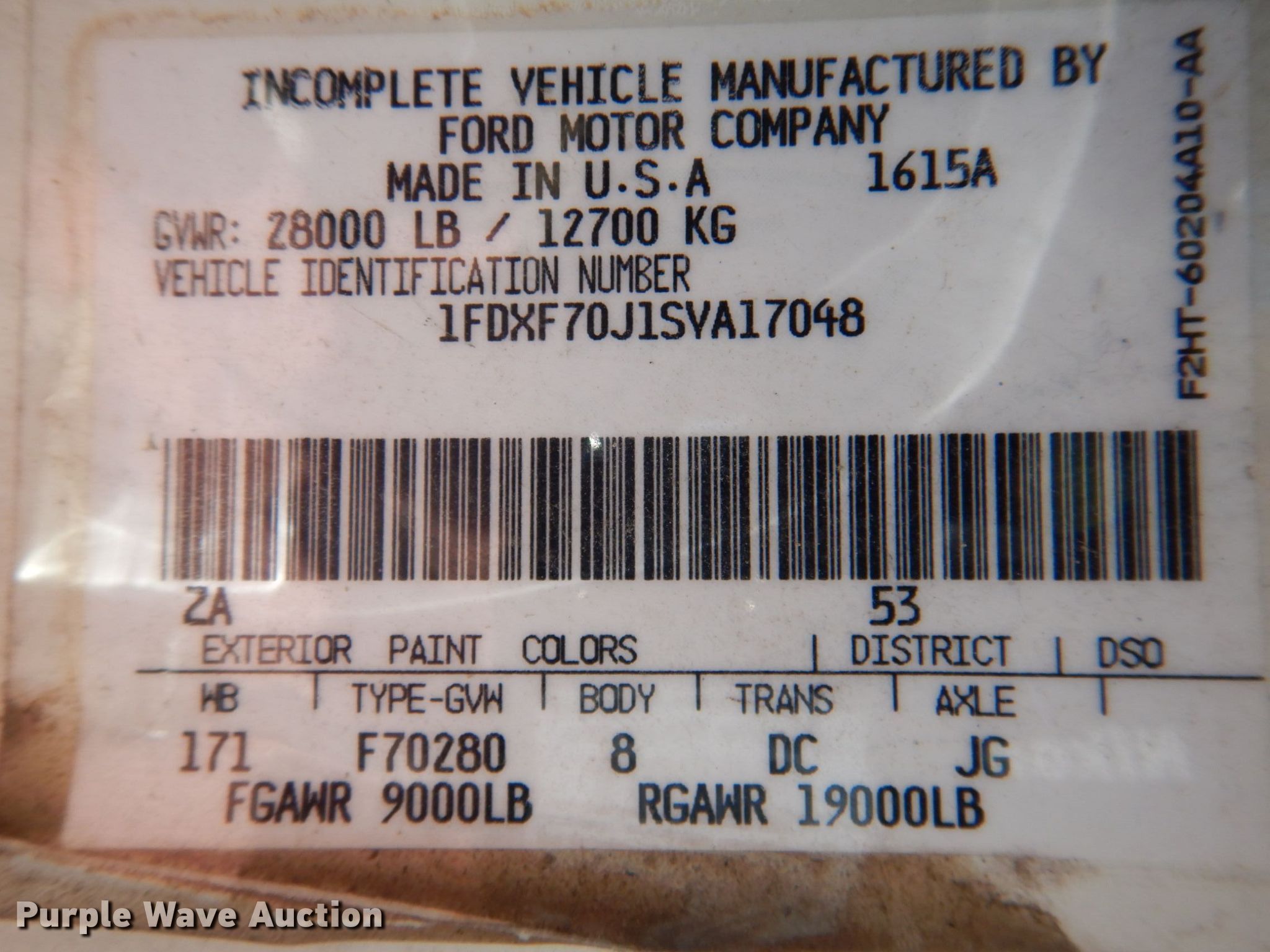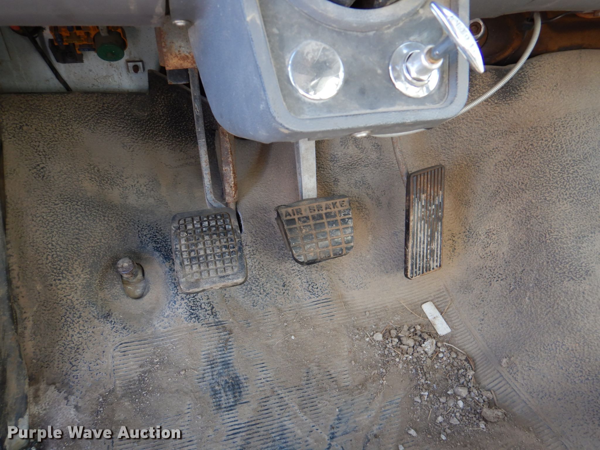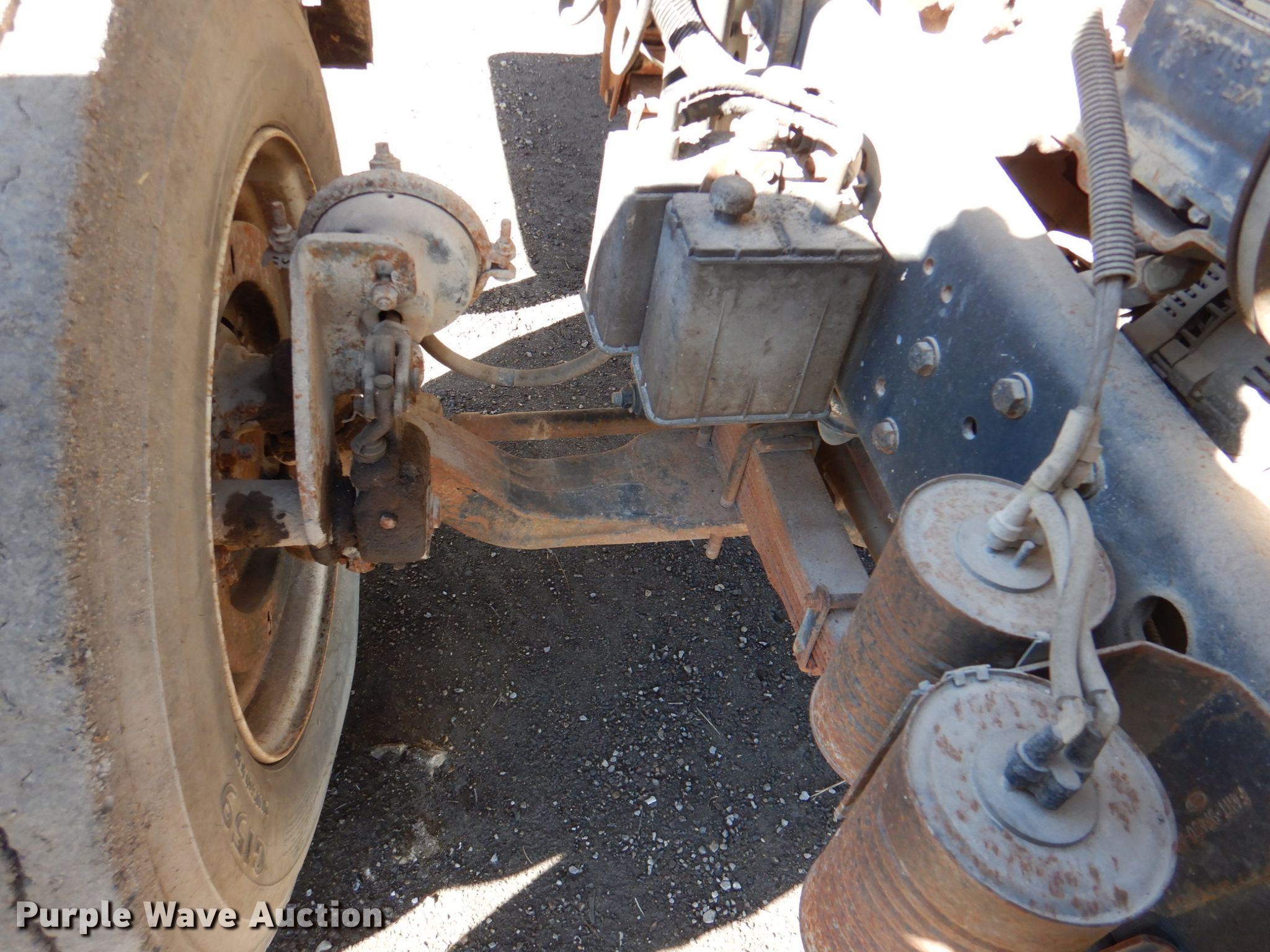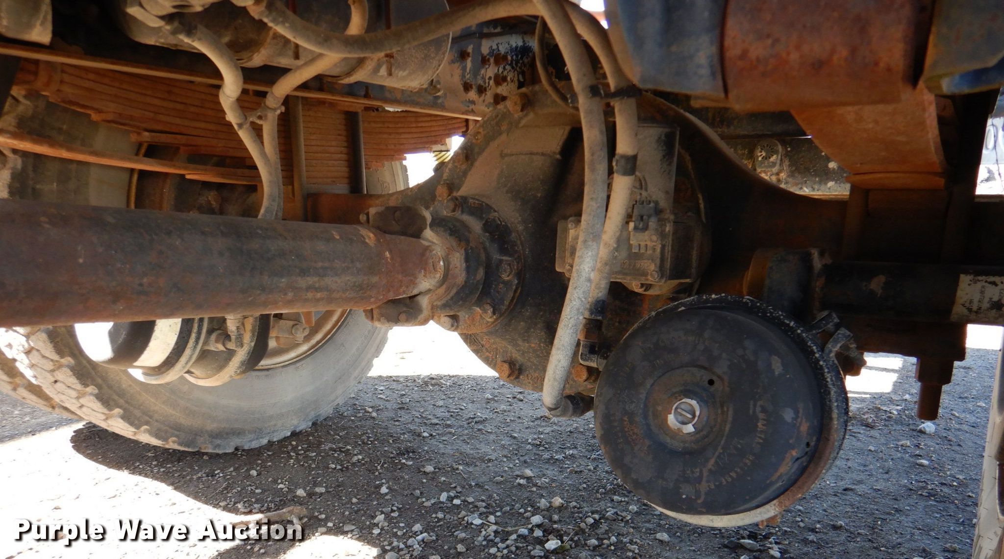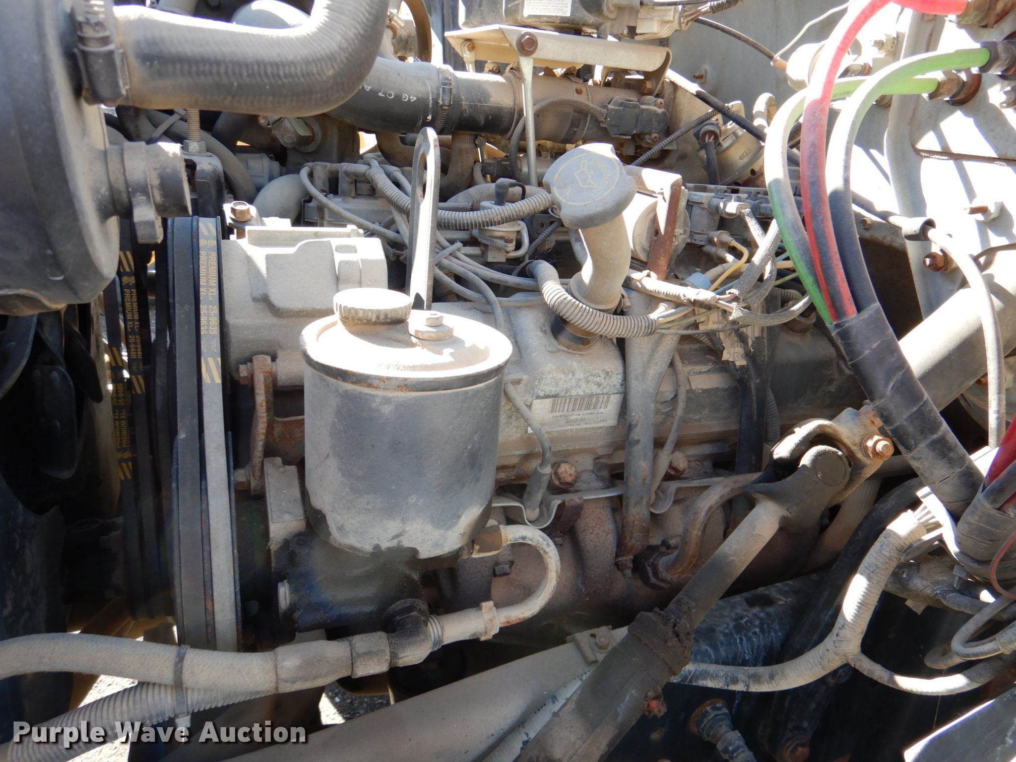 1995 Ford F700 water truck. Miles: 3,665 on odometer, VIN: 1FDXF70J1SVA17048. Engine Displacement: 7.0L, Cylinders: 8, Fuel type: Gas. Transmission Manual, Speed: 5, plus 2. Chassis Axles: Single, Suspension: Spring, Brakes: Air, GVWR: 28,000 lbs, Wheelbase: 171". Interior Heat. Operational Bed / tank Rosco MTA-11, Serial: 33422, Capacity: 1,600 gallons, Spray bar: Front, Rear, Side discharge, Hose reel. Tires Size: 265/75R22.5. Notes Tank leaks, rust holes in bottom of tank. Kansas title. City of Paola. 29370 Old KC Rd. Paola, KS 66071