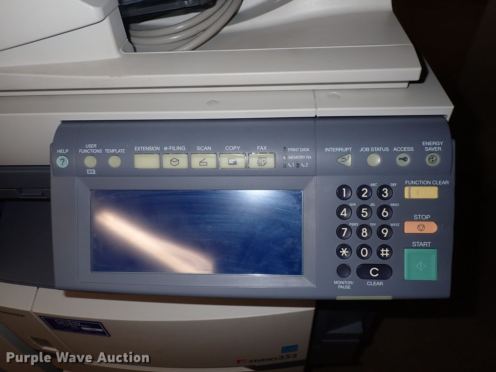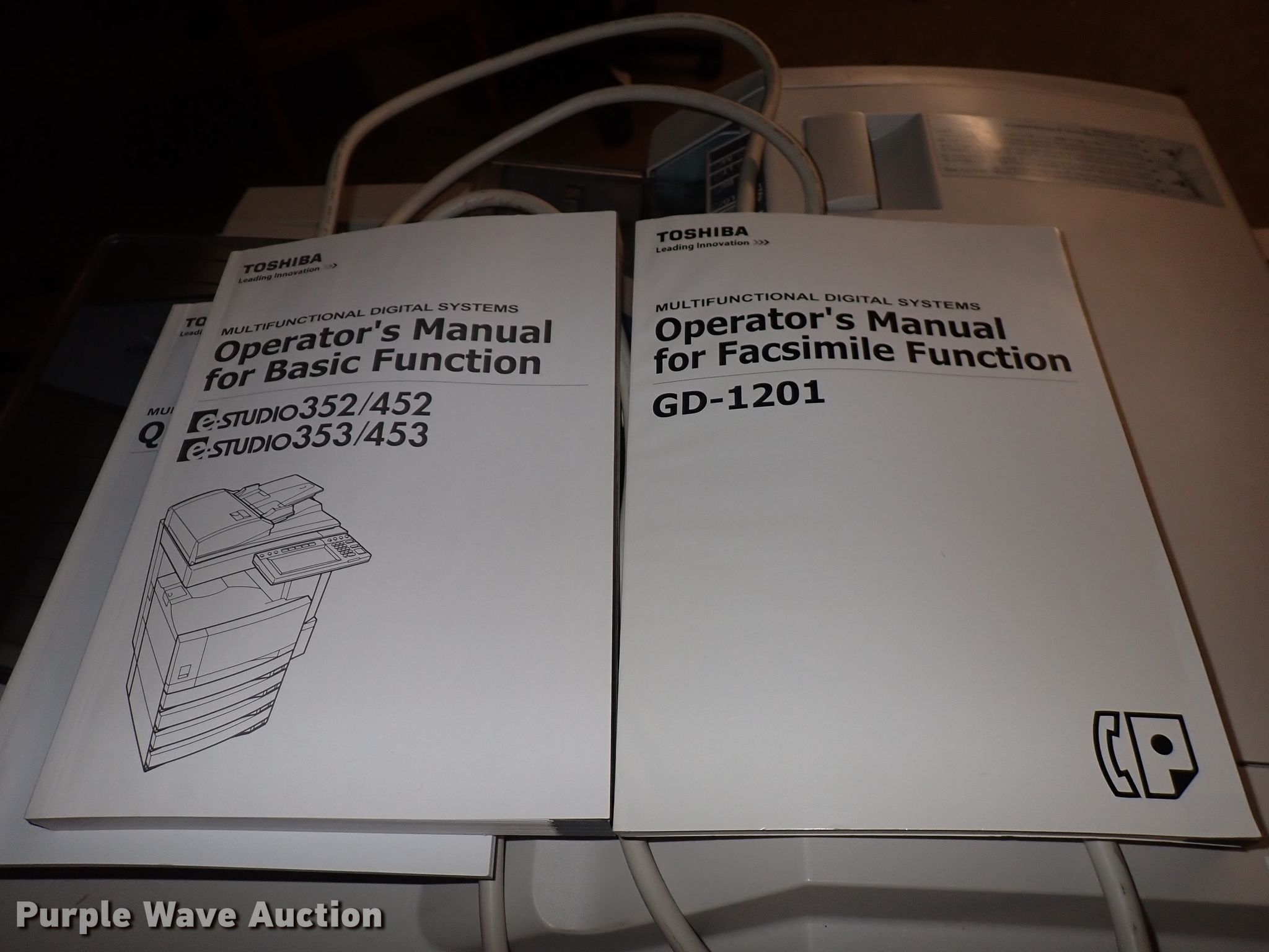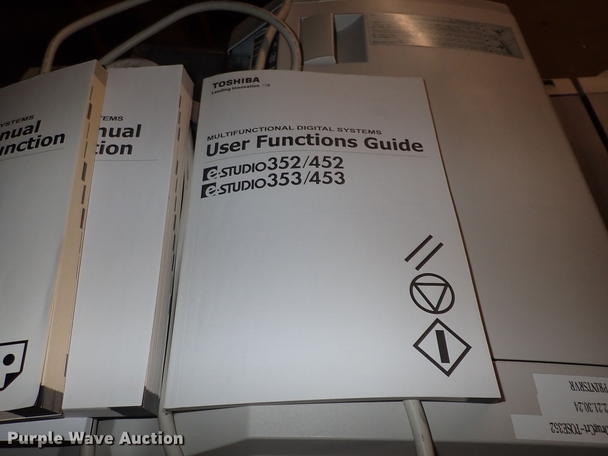 Purple Wave is selling a used Copy or Printing Machine in Kansas. This item is a Toshiba Studio 352 copy machine with the following: Scan and fax capabilities, Toshiba finisher, Toshiba hole punch, Manuals