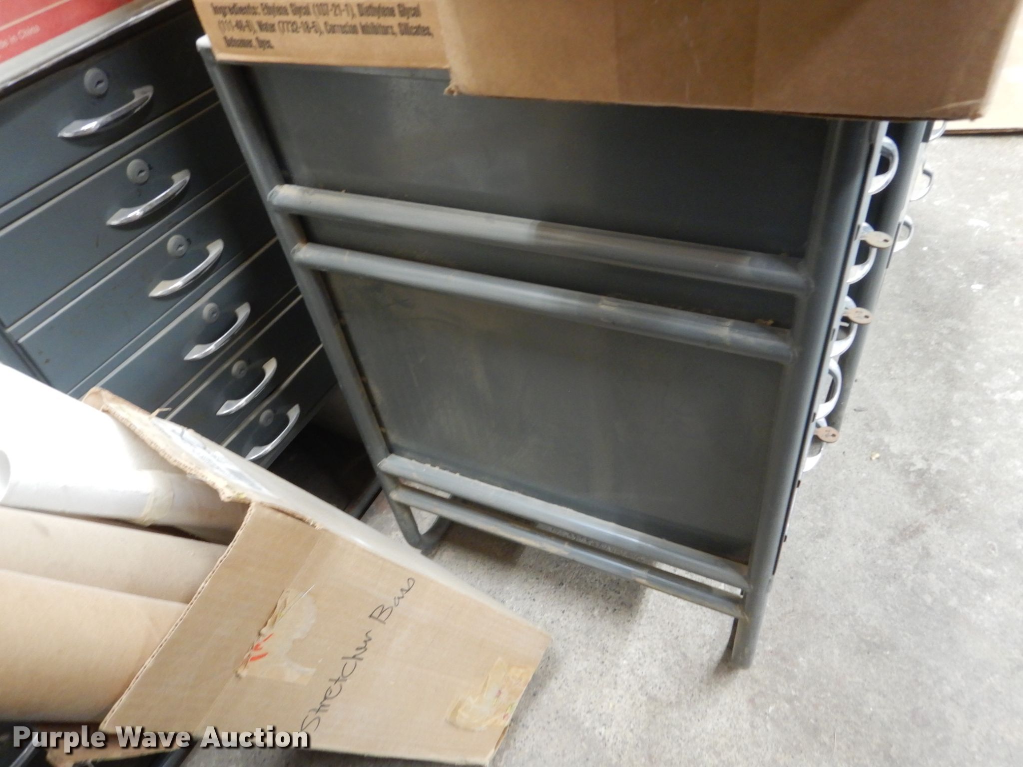 Purple Wave is selling a used Furniture in Iowa. This item is a Furniture with the following: (3) metal cabinets, 20" x 16" x 31"H, (2) metal lockers, 60" x 50", Wood cabinet, 24" x 12" x 22"H, Four drawer file cabinet