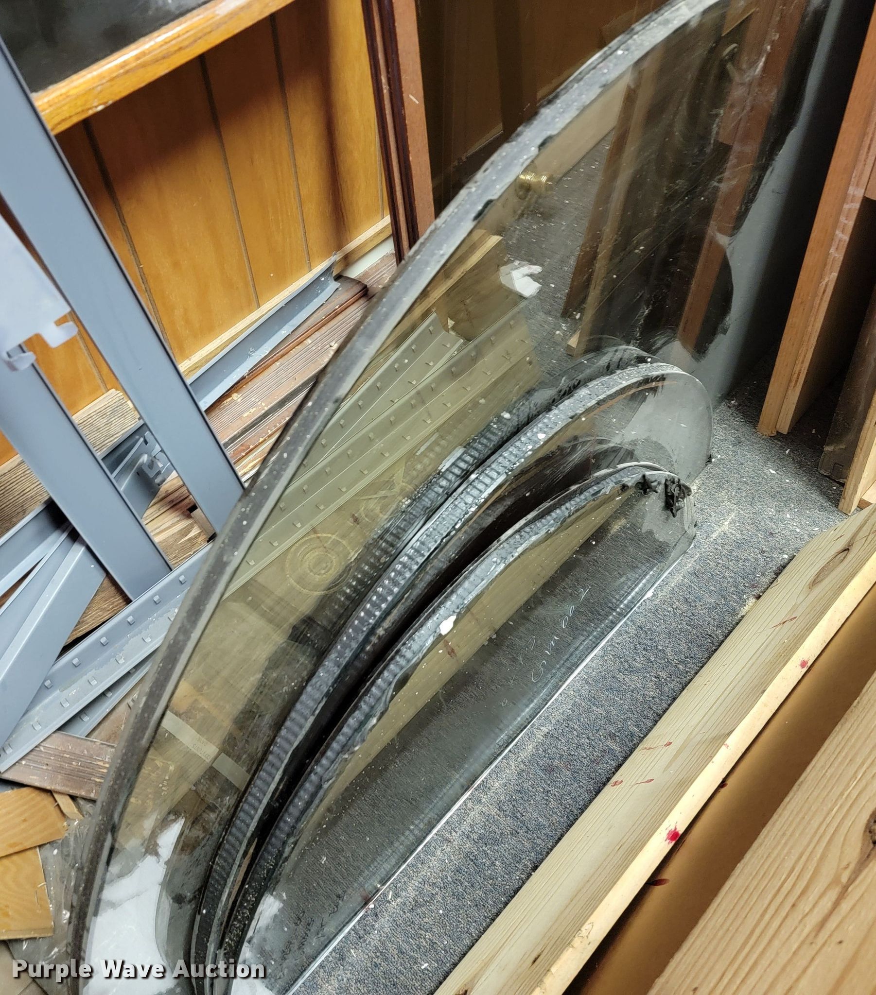 Purple Wave is selling a used Building Materials in Missouri. This item is a (7) half circle window panes with the following: (3) 62 3/16" x 29 7/8", (2) 32" x 16", (2) 38" x 19"