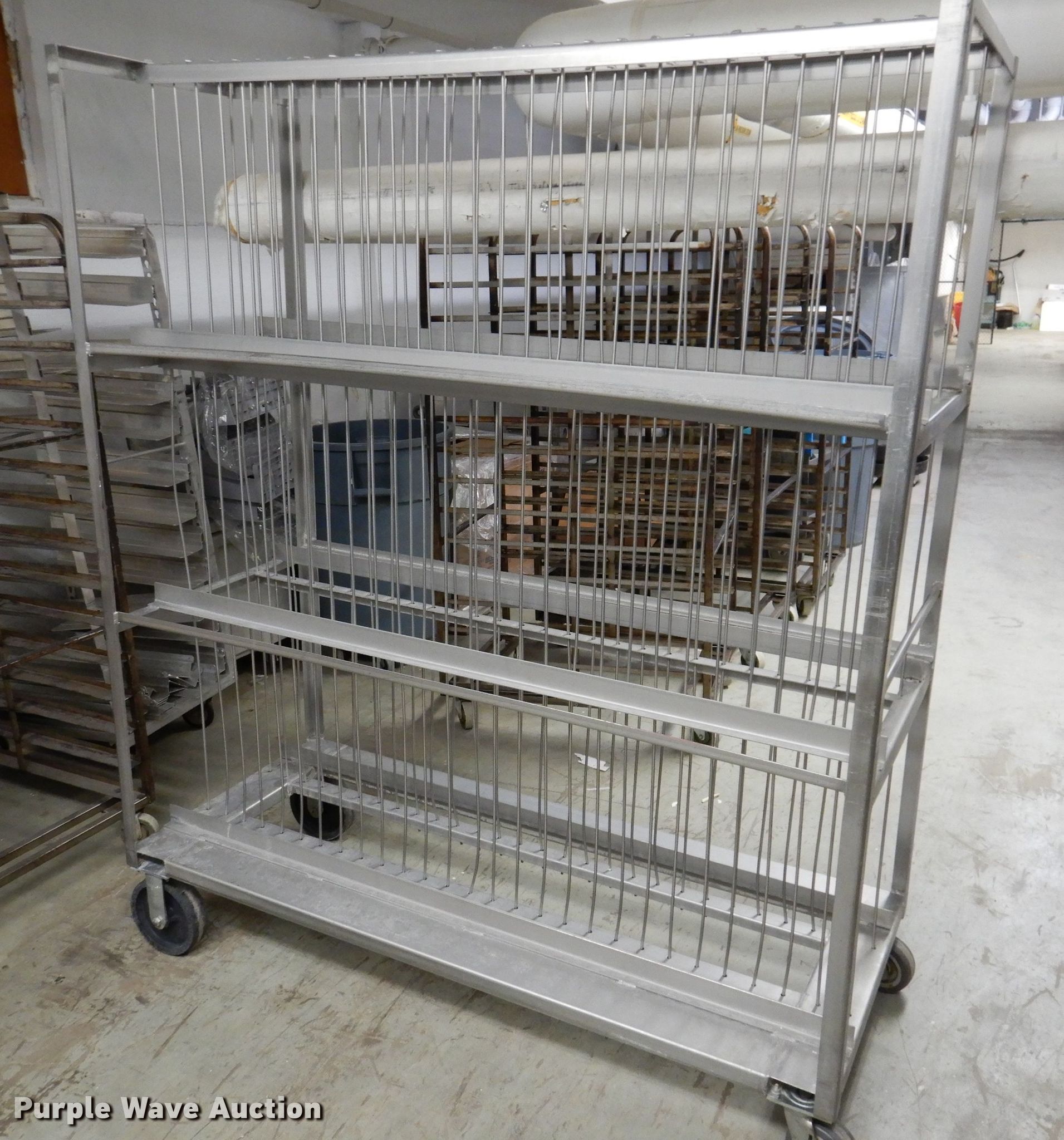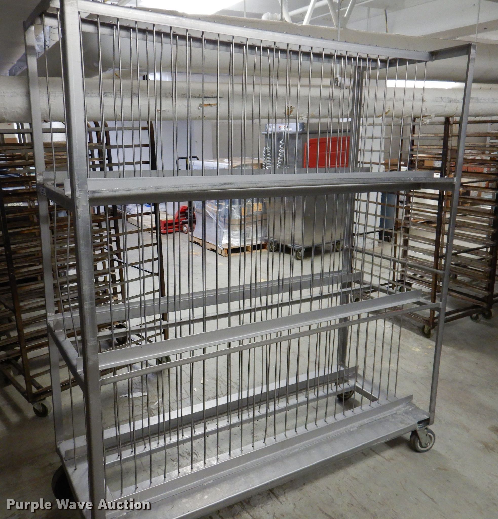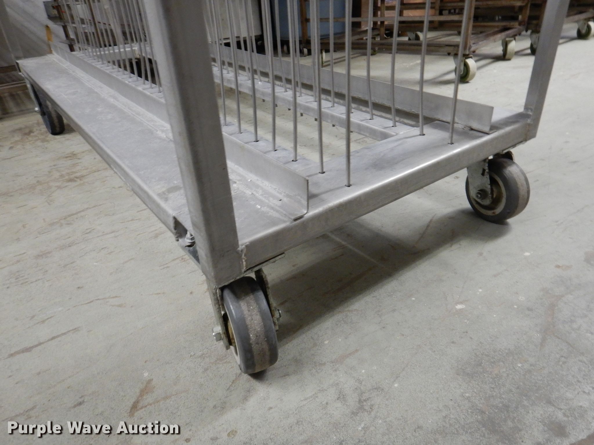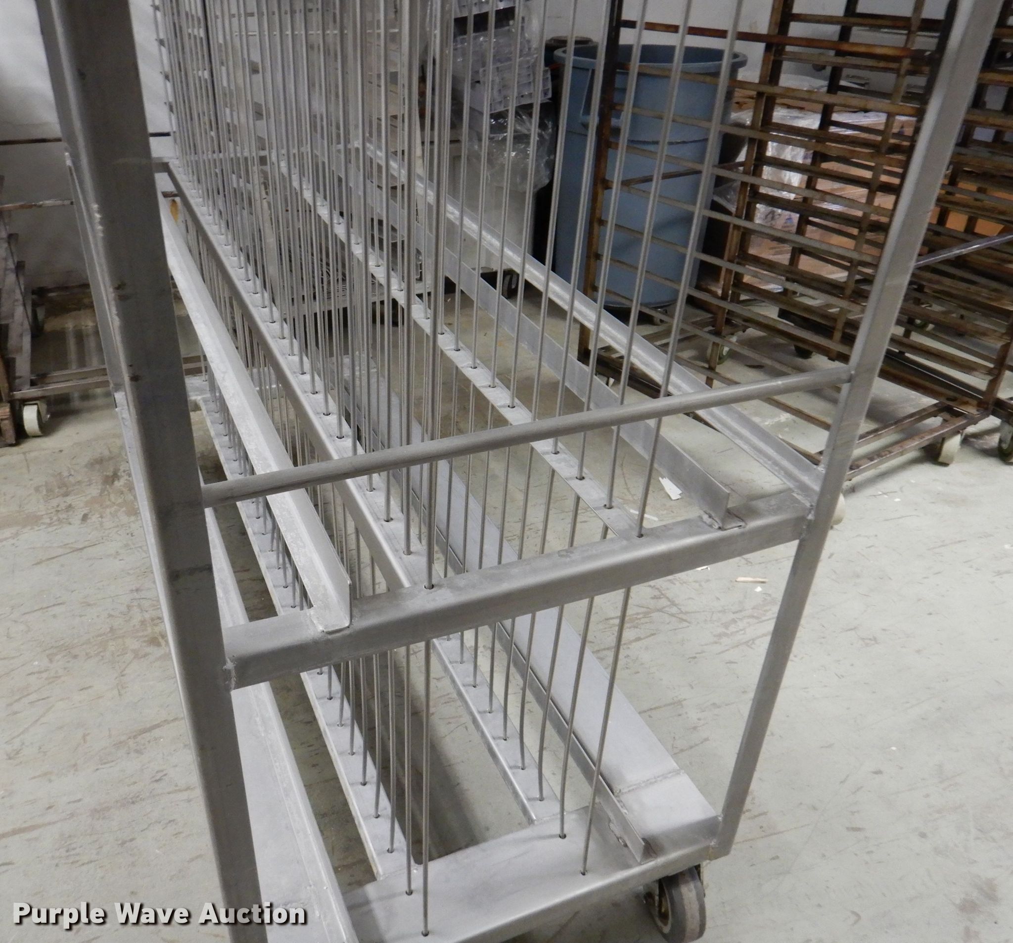 Purple Wave is selling a used Restaurant Equip. in Iowa. This item is a Restaurant equipment with the following: Lunch tray cart rack, 27" x 65" x 79"H, (81) tray slots, (2) tray rollers, 21" x 84" x 36"H, (2) rollers bent, Furniture dollies not included