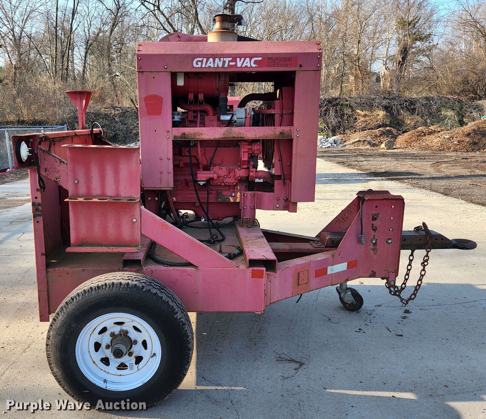 2007 Giant-vac TM6600JDTB-HW leaf vacuum. Overall: 11' L x 72" W , John Deere 4045 Cylinders: 4, Fuel type: Diesel, Hitch: Pintle, Tires: 7.00-15, Parts removed, Non-operational unit. City of Ladue MO. Ladue, MO 63124