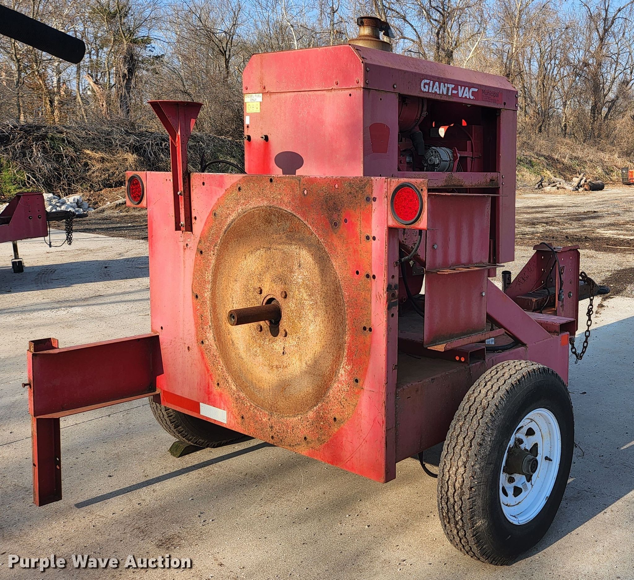 Purple Wave is selling a used Lawn and Garden in Missouri. This item is a 2007 Giant-vac TM6600JDTB-HW leaf vacuum with the following: Overall: 11' L x 72" W, John Deere 4045, Cylinders: 4, Fuel type: Diesel, Hitch: Pintle, Tires: 7.00-15, Parts removed, Non-operational unit