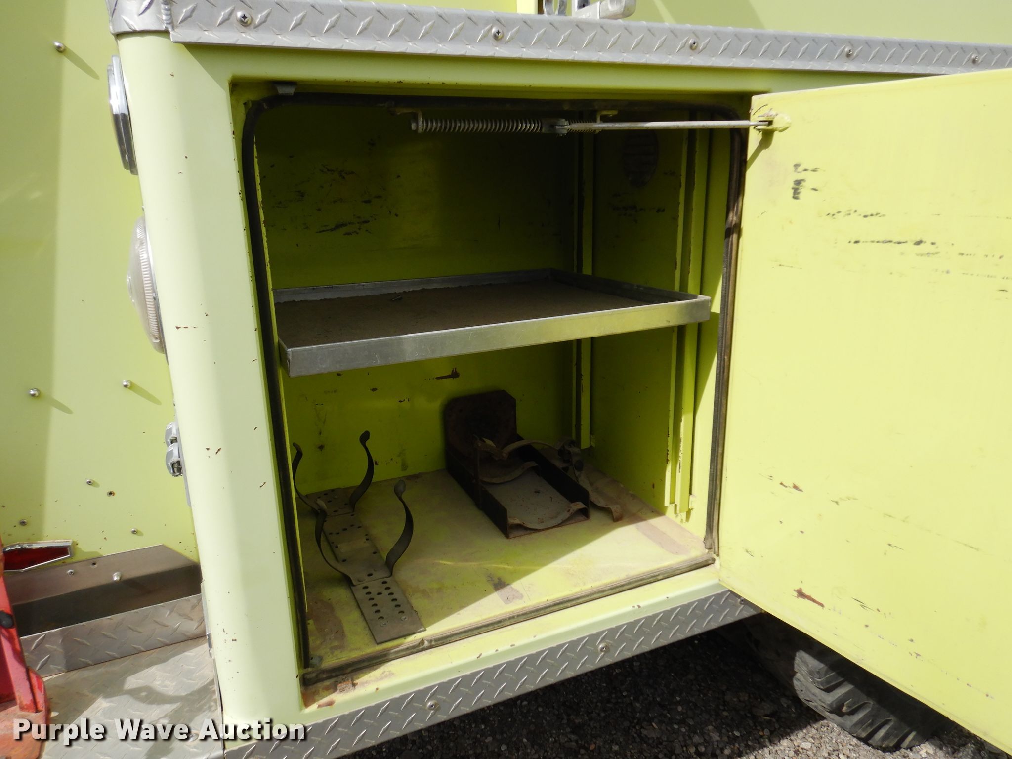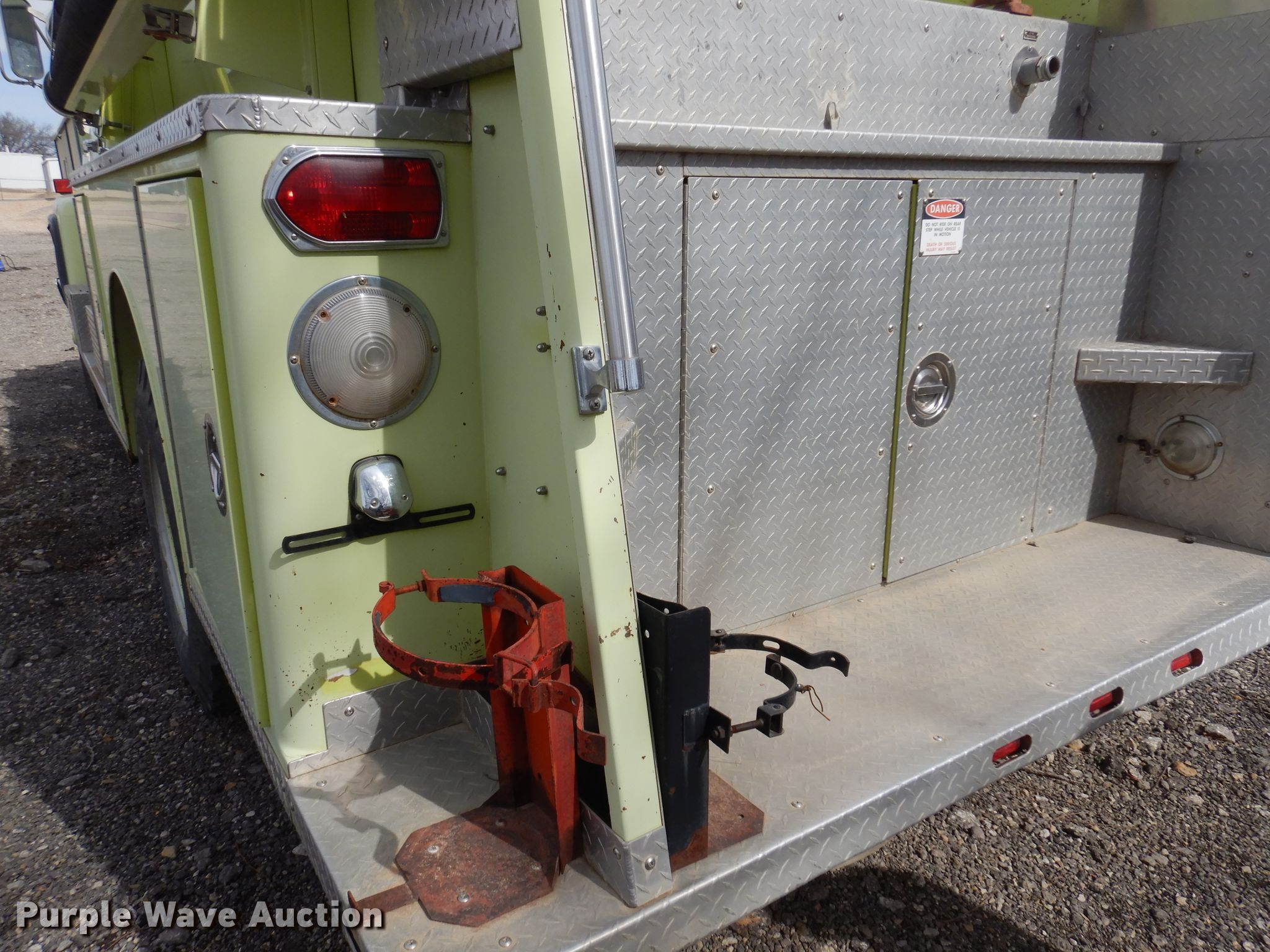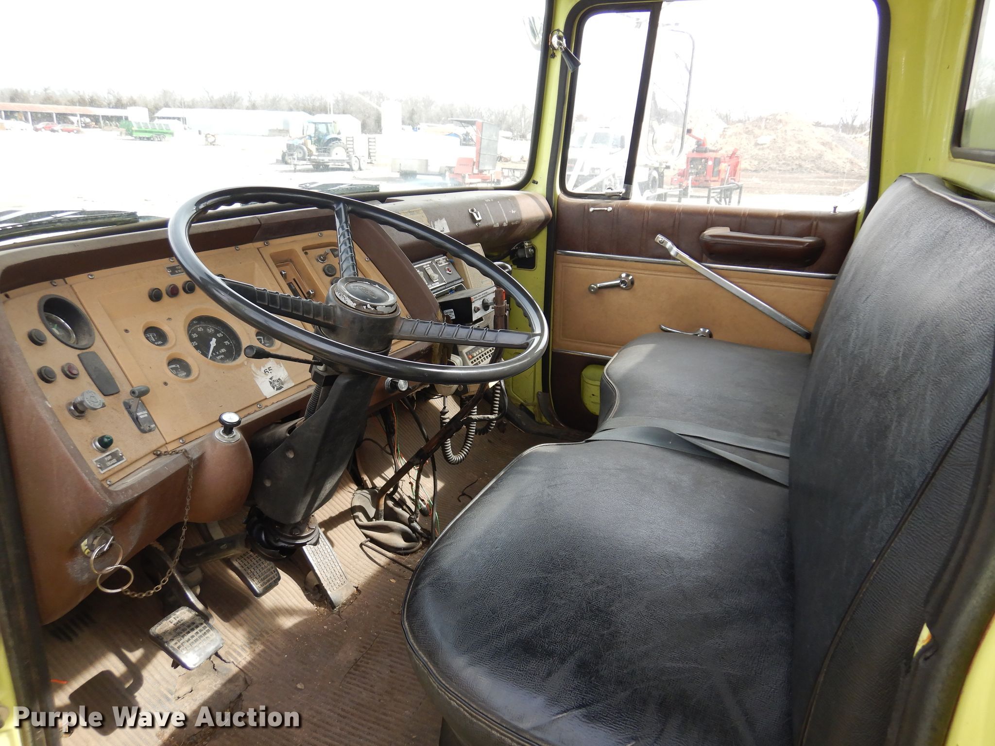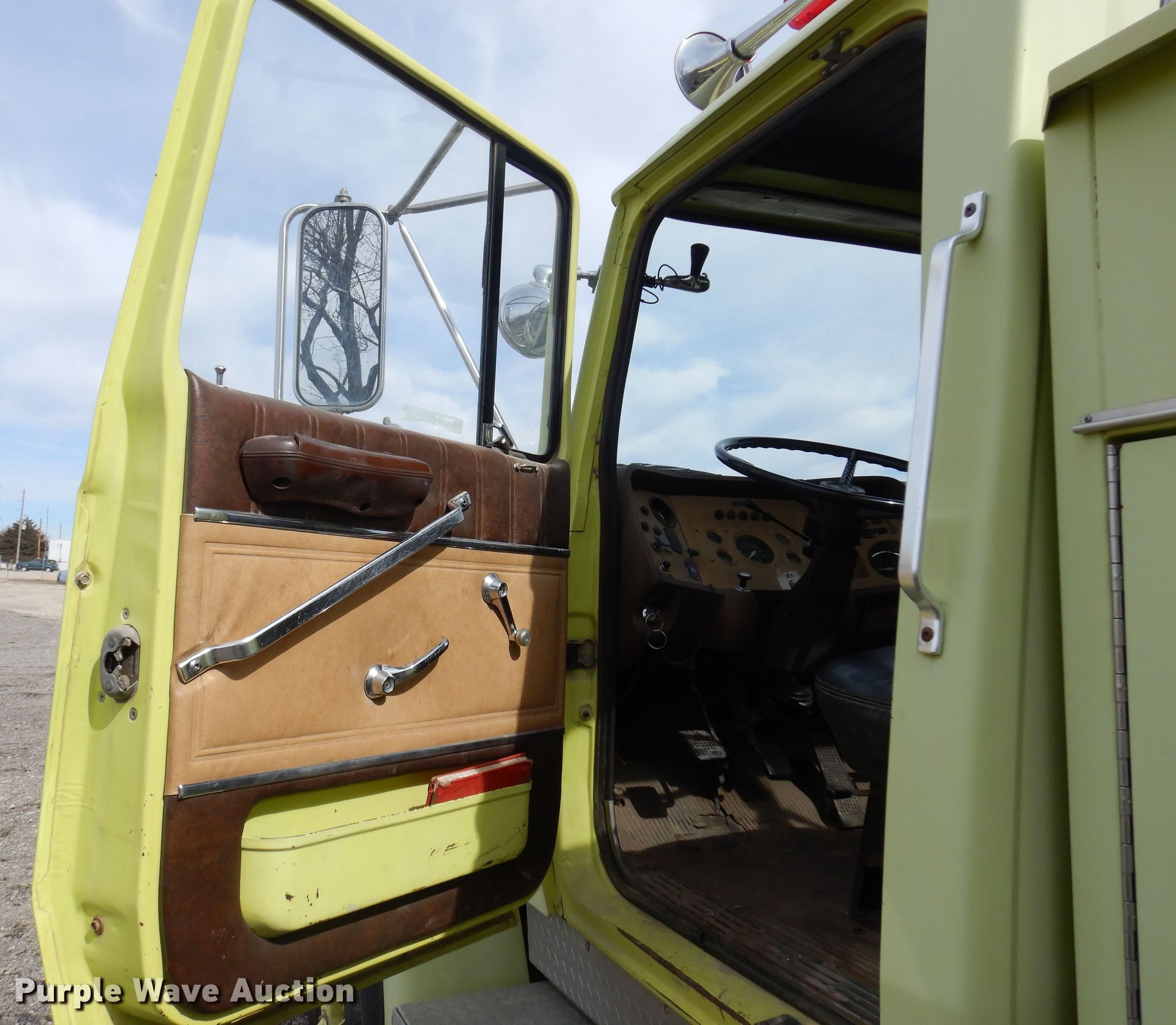 1982 Ford L8000 pumper fire truck. Miles: 44,686 on odometer, VIN: 1FDYK80U8CVA13466. Engine Caterpillar 3208, Cylinders: 8, Fuel type: Diesel. Transmission Manual, Speed: 5. Chassis Axles: Single, Suspension: Spring, Brakes: Hydraulic. Interior Heat. Operational Fire truck body Tank capacity: 600 gallons, PA/ siren controls, 2.5" hose, (2) 5" suction hoses, (2) 1.5" hoses. Tires Size: 11.00-20. Notes Water pump removed. Kansas title. Greenwood County Sheriff's Office. Eureka, KS 67045