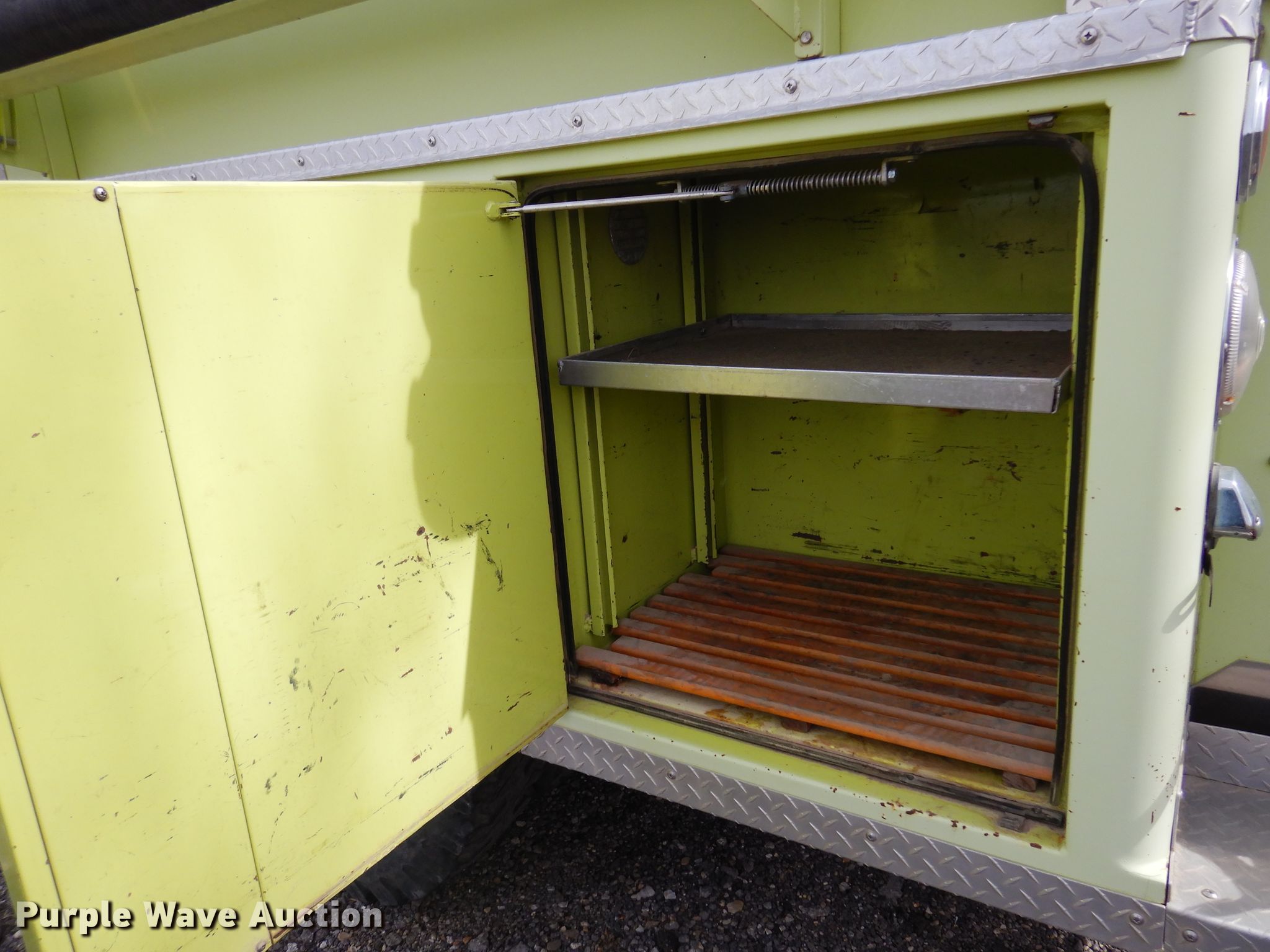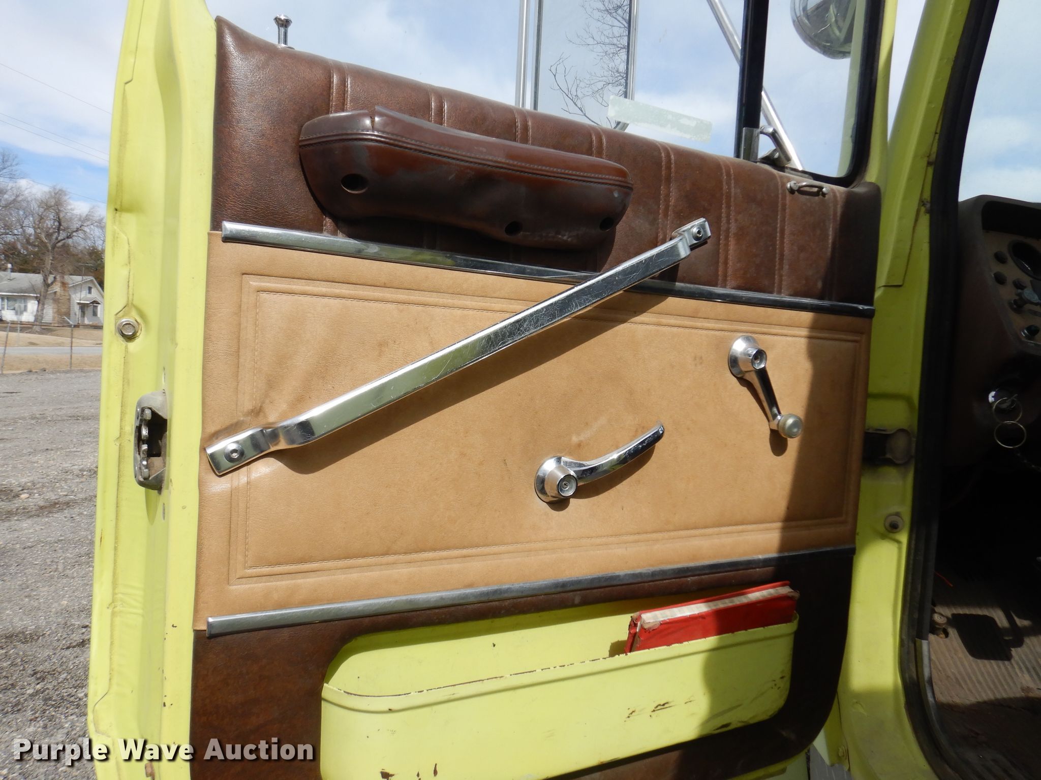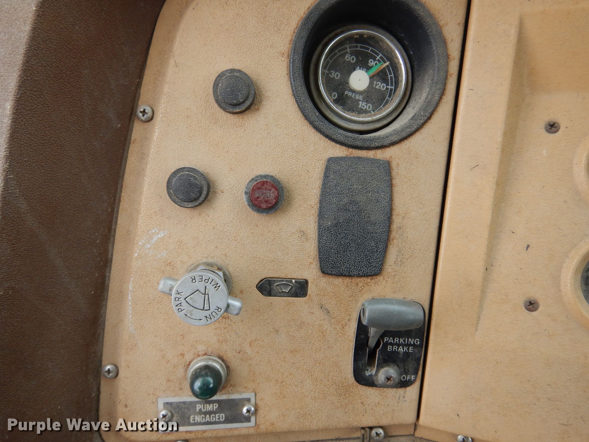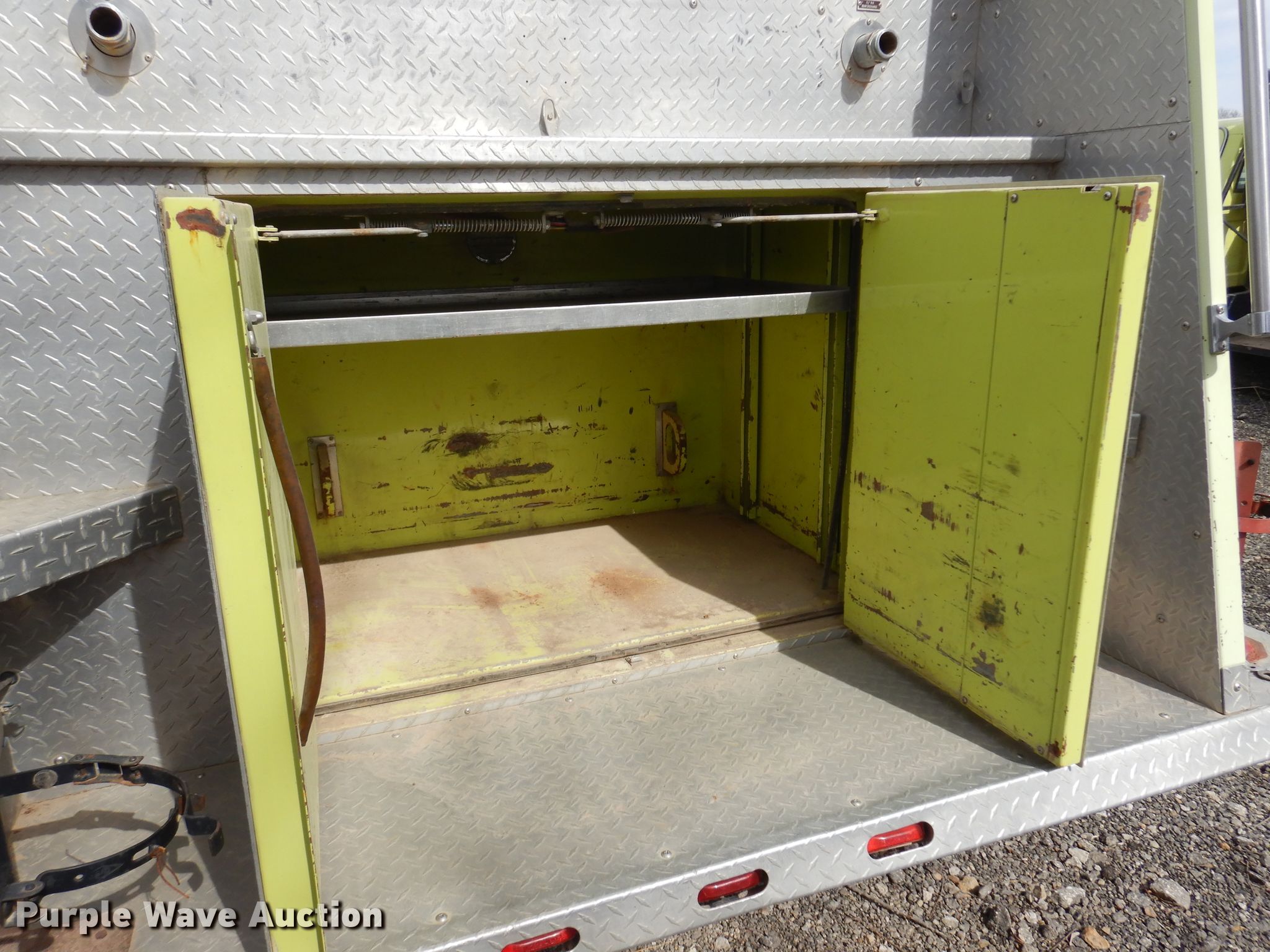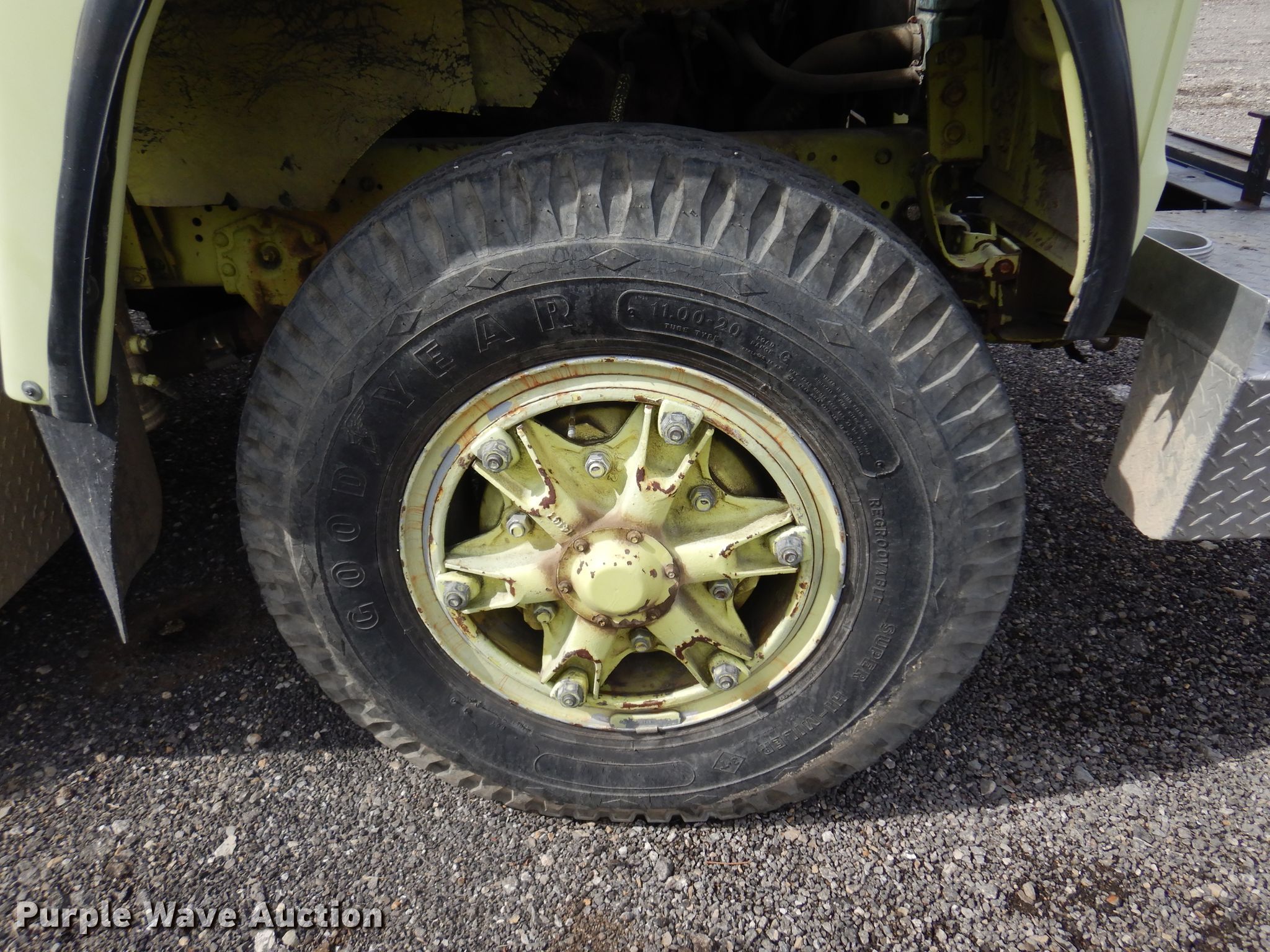 1982 Ford L8000 pumper fire truck. Miles: 44,686 on odometer, VIN: 1FDYK80U8CVA13466. Engine Caterpillar 3208, Cylinders: 8, Fuel type: Diesel. Transmission Manual, Speed: 5. Chassis Axles: Single, Suspension: Spring, Brakes: Hydraulic. Interior Heat. Operational Fire truck body Tank capacity: 600 gallons, PA/ siren controls, 2.5" hose, (2) 5" suction hoses, (2) 1.5" hoses. Tires Size: 11.00-20. Notes Water pump removed. Kansas title. Greenwood County Sheriff's Office. Eureka, KS 67045