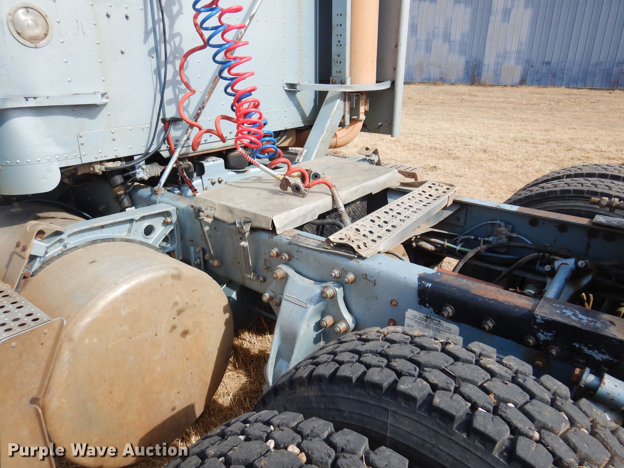 1996 Freightliner FLD120 semi truck. Miles: 810,032 on odometer, VIN: 1FUYDXYB8TH772895. Engine Caterpillar 3406, Displacement: 14.6L, Cylinders: 6, Fuel type: Diesel. Transmission Rockwell, Manual, Speed: 9. Chassis Axles: Tandem, Suspension: Air, Brakes: Air, GVWR: 53,880 lbs. Interior AC, Heat. Operational Fifth wheel type: Fixed, Fuel tank: Dual. Tires Size: 295/75R22.5. Kansas title. Title distribution may be delayed up to 30 days from verification of funds. Brothers Dairy Retirement. Burden, KS 67019