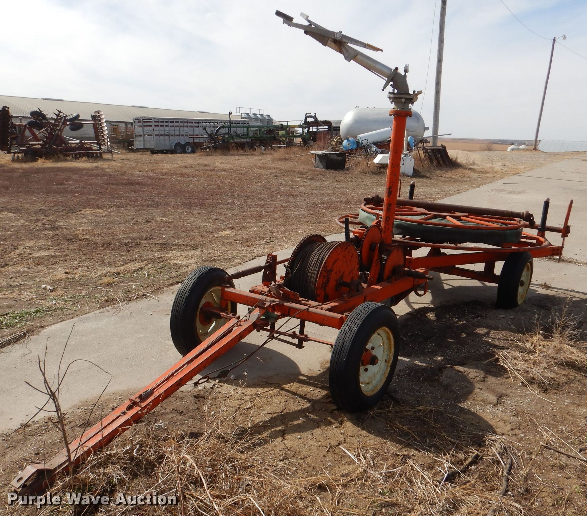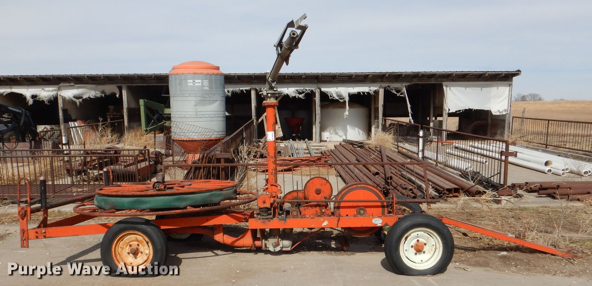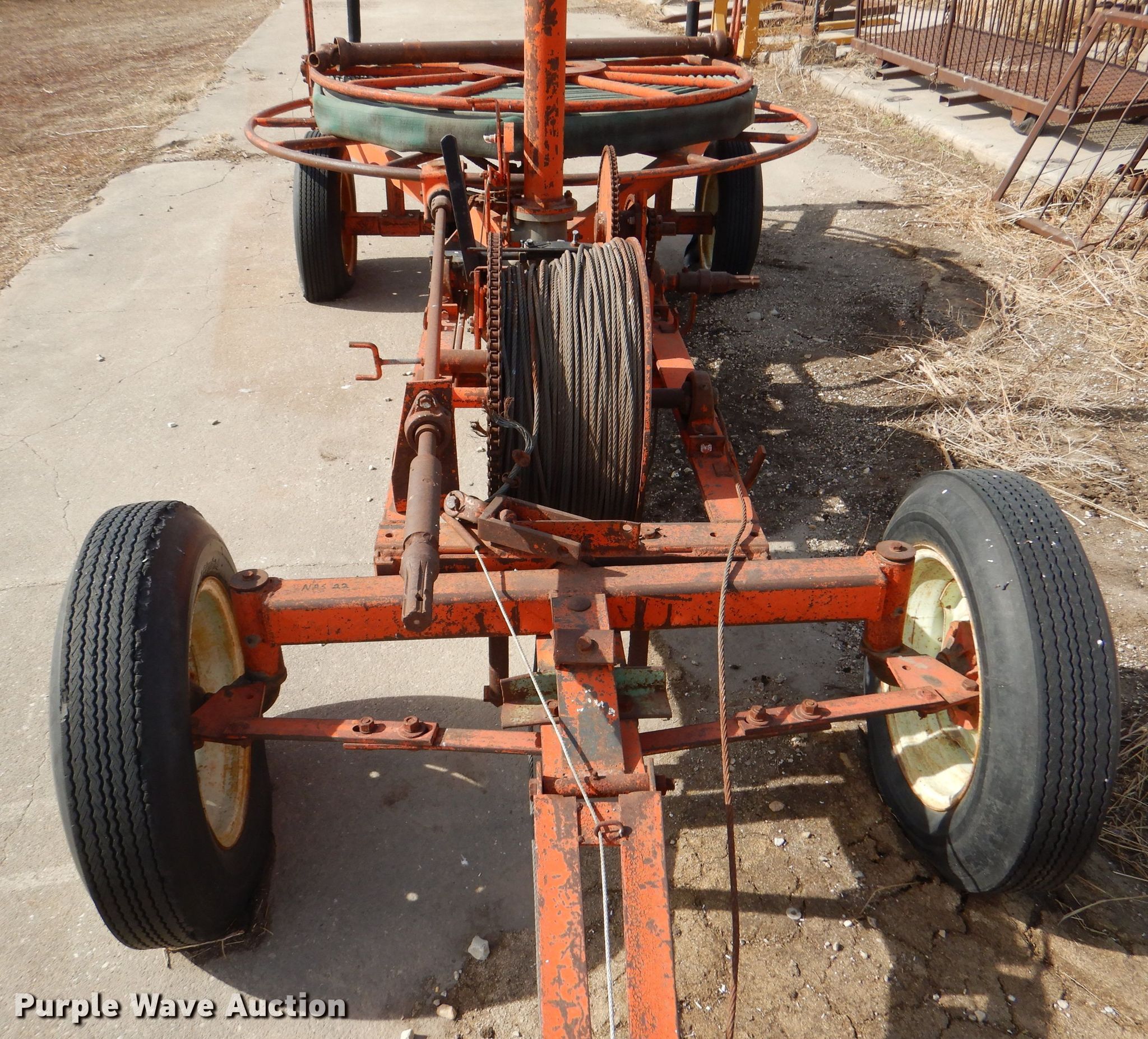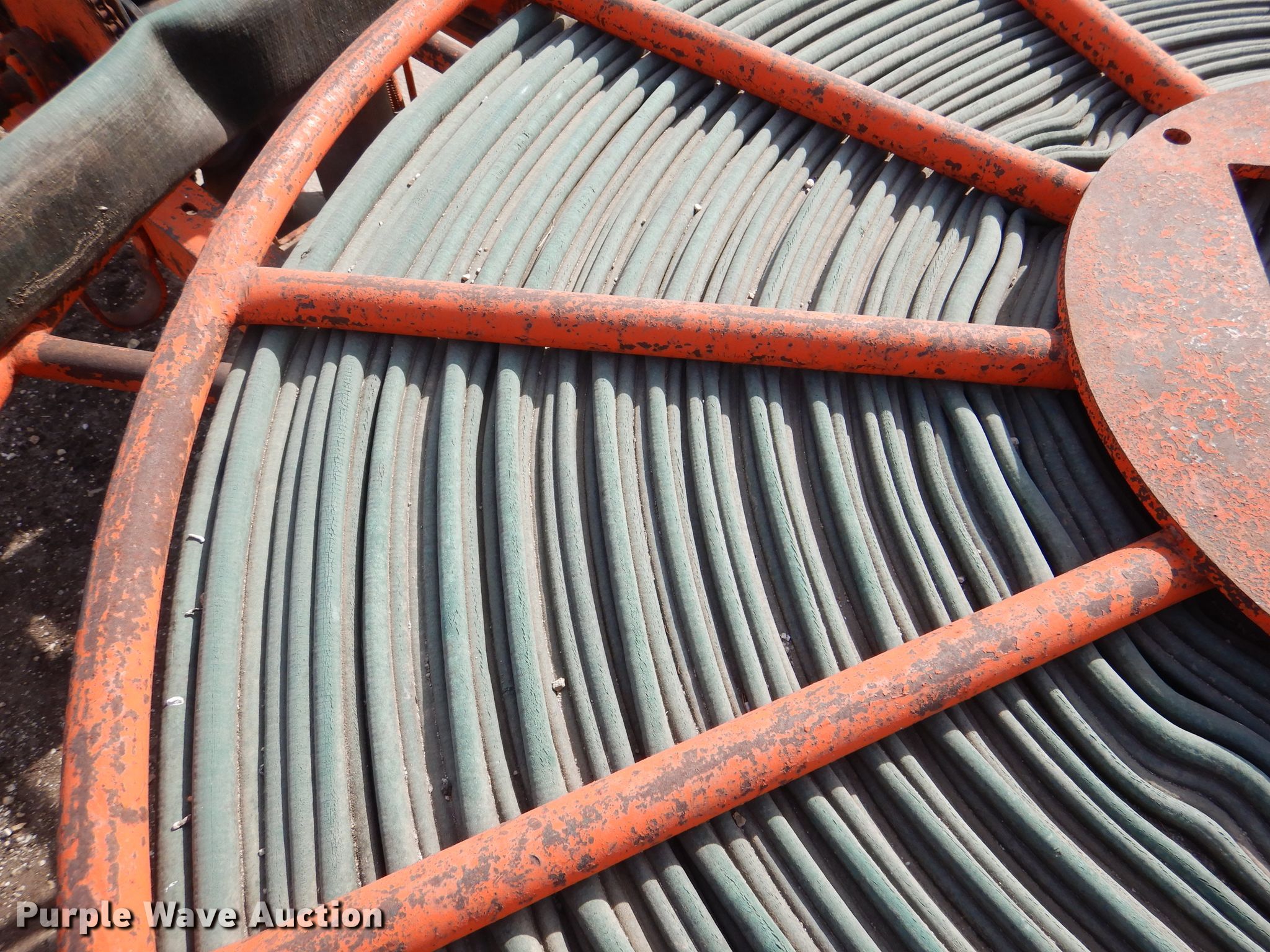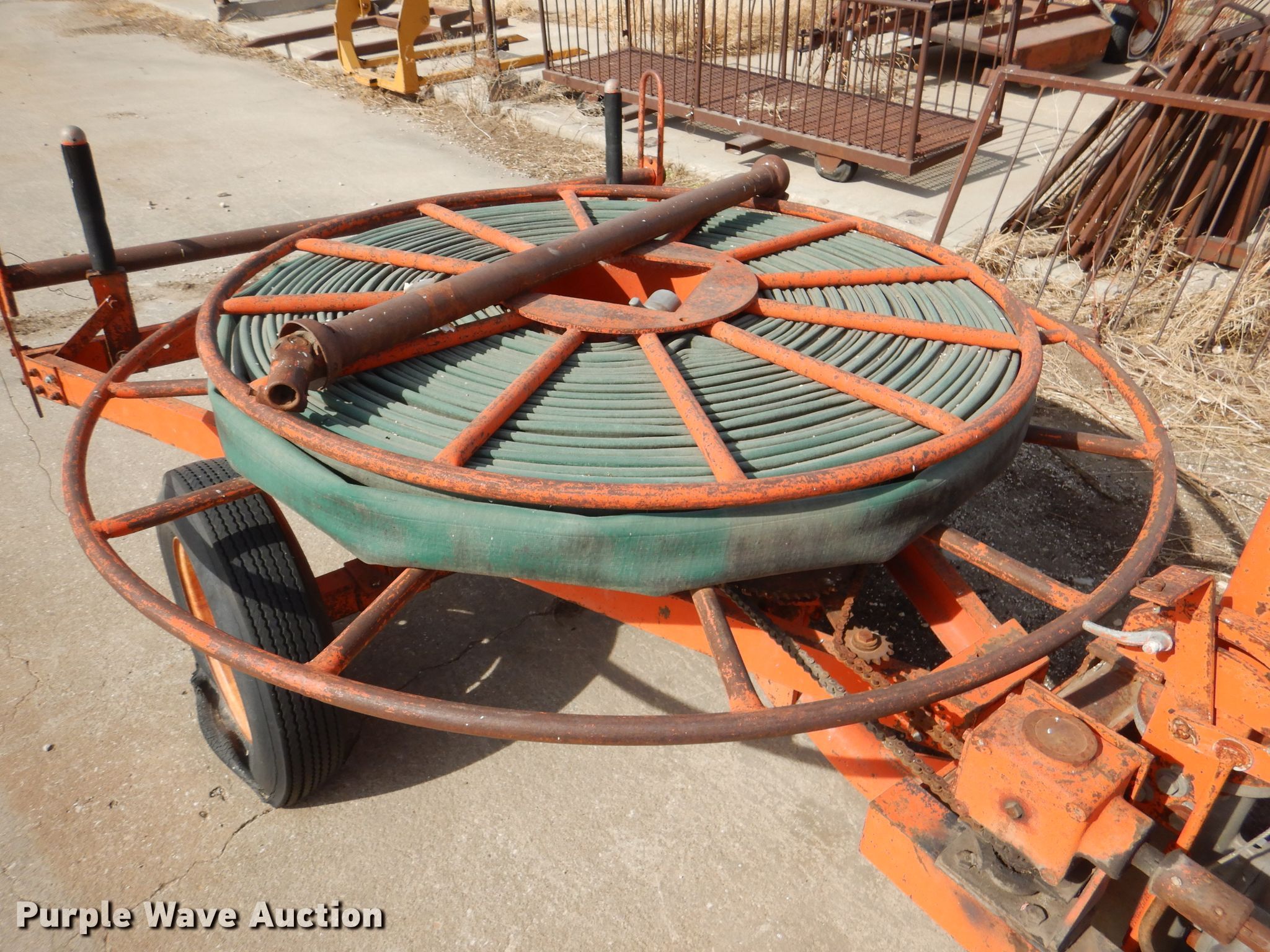 Purple Wave is selling a used Irrigation Equip. Attach. in Kansas. This item is a Ag Rain T-300 sprinkler with the following: Serial: 0103, Big Gun P200 sprinkler, Reel diameter 7', Hose: Approx. 600' x 3" diameter, 540 PTO, Tires: 6.70-15, Additional hose, Approx. 600' x 4" diameter