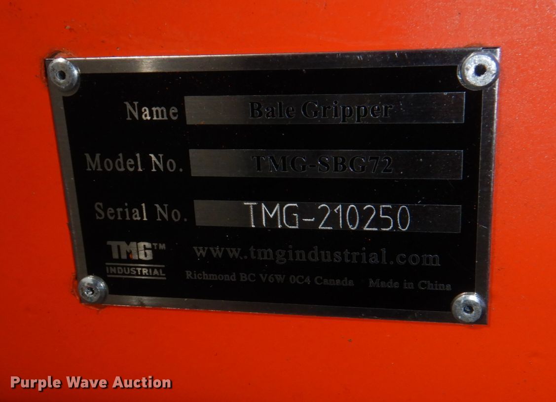 Purple Wave is selling a used Skid Steer Attach. in Nebraska. This item is a TMG Industrial TMG-SBG72 skid steer bale gripper with the following: 72" x 35" capacity, Unused, Serial: TMG-210250