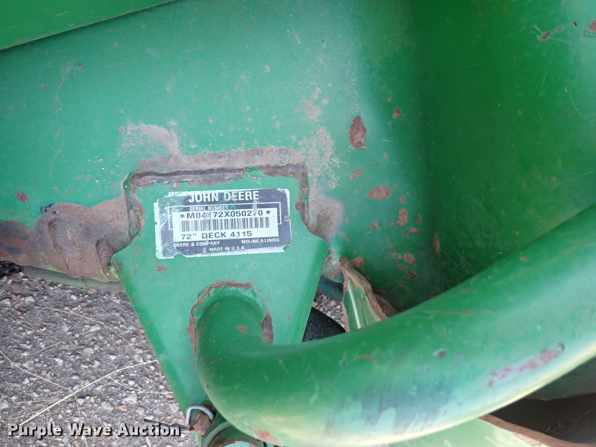 2009 John Deere 2520 MFWD tractor. Hours: 1,248 on meter, Serial: LV2520H506209, KDOT ID: 395-5039. Engine Cylinders: 3, Fuel type: Diesel. Transmission Hydrostatic. Operational PTO: 540, Three point, Mower deck Width: 72". Tires Front: 23x8.50-12, Rear: 14-17.5. Notes Hour meter replaced at 714 hours, Dead battery, Engine issues, overheated, Radiator neck melted, no anti-freeze in radiator, Non-operational unit. Kansas Department of Transportation - Hutchinson. 500 N. Hendricks. Hutchinson, KS 67501