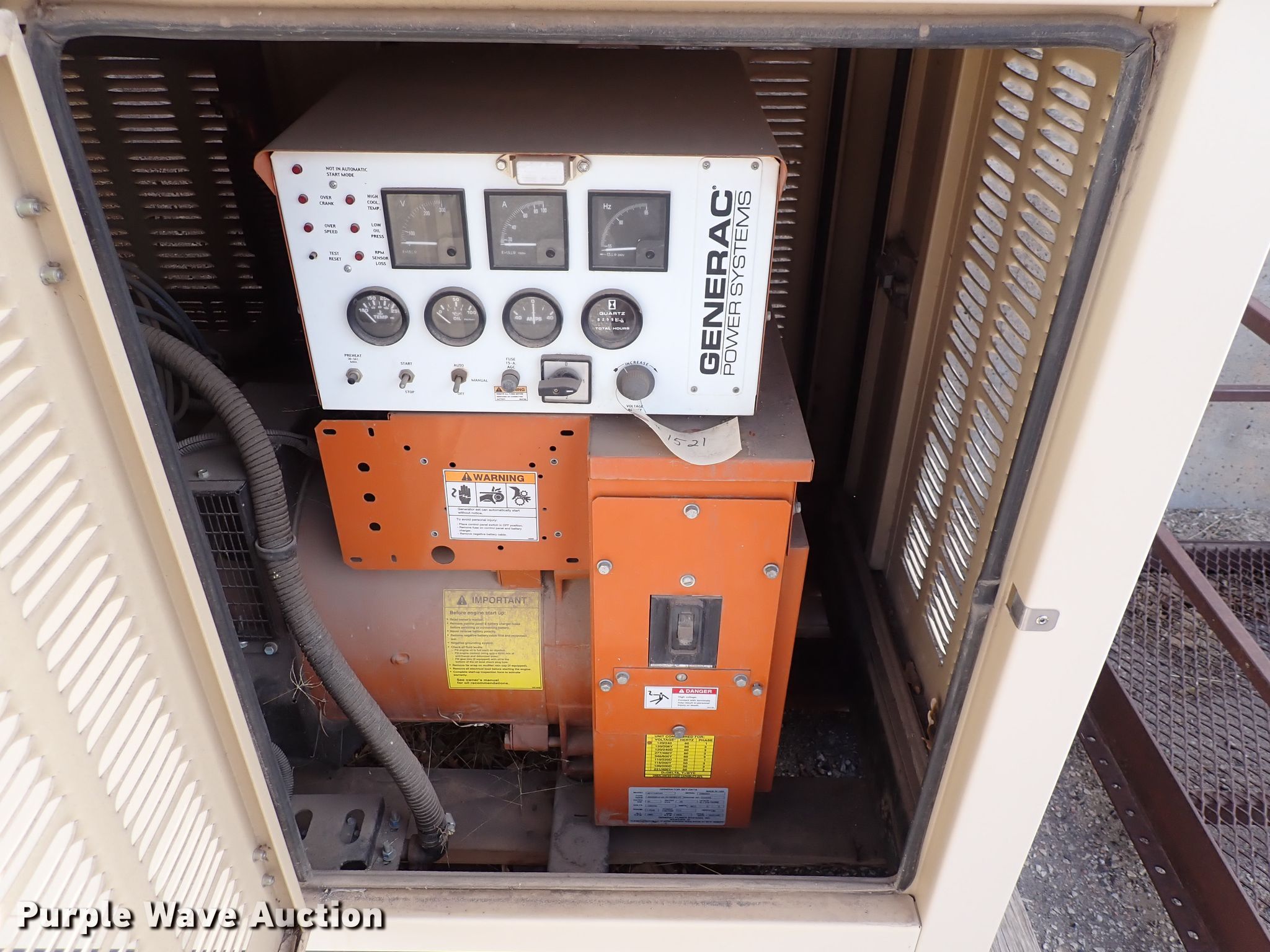 Purple Wave is selling a used Generator Set in Kansas. This item is a Generac 6217130100 generator with the following: Hours: 259, Serial: 2086655, KDOT ID: 1521