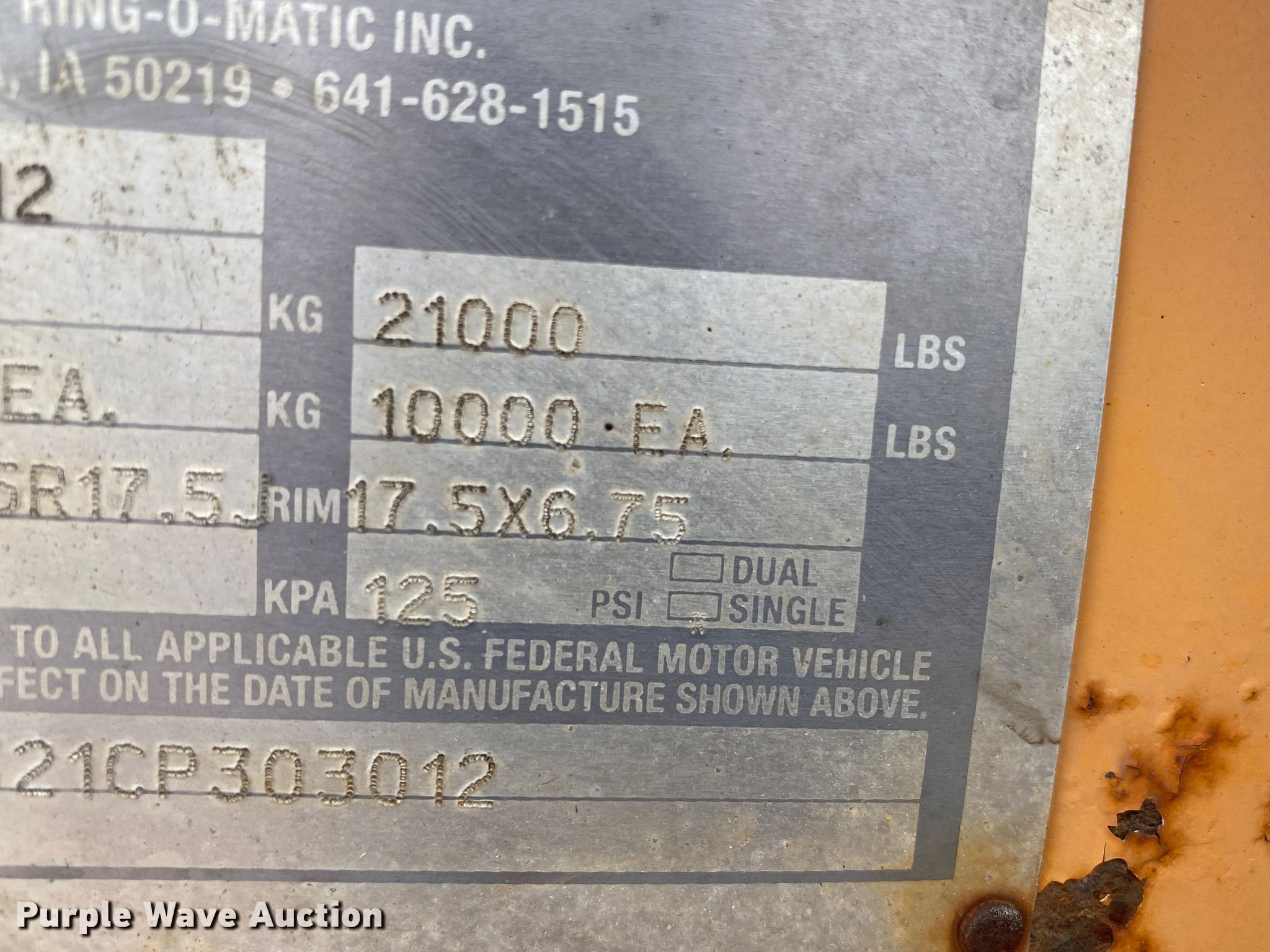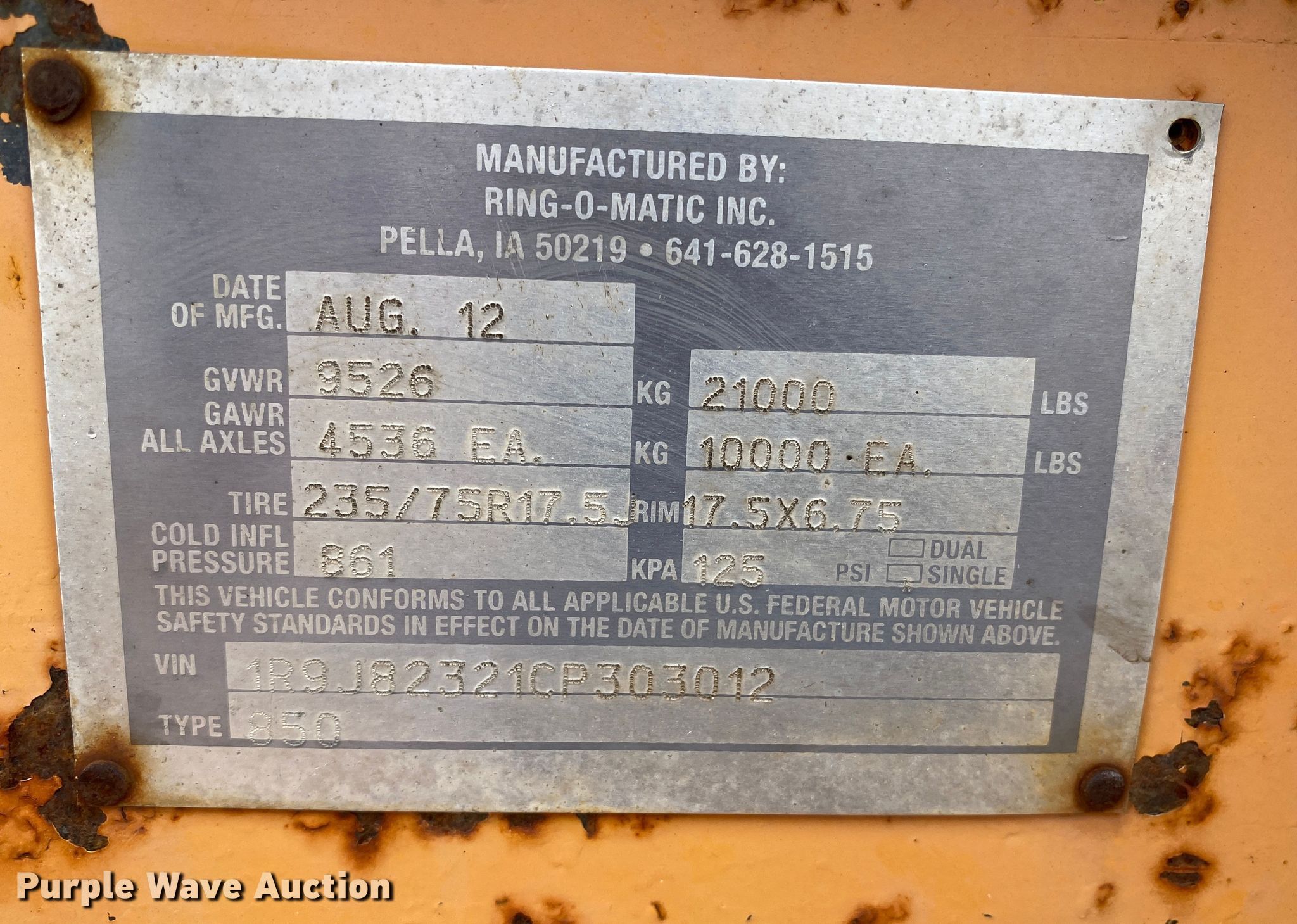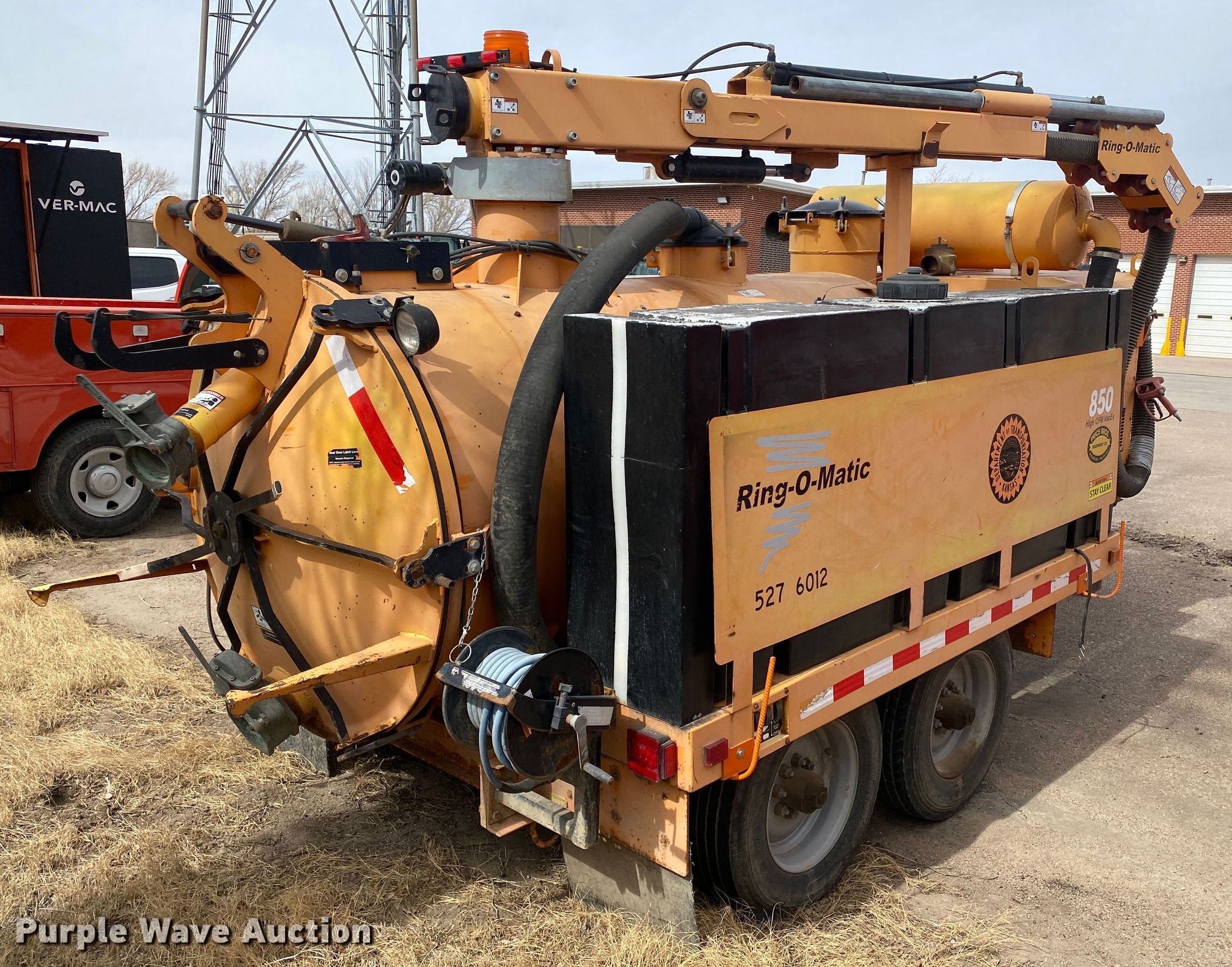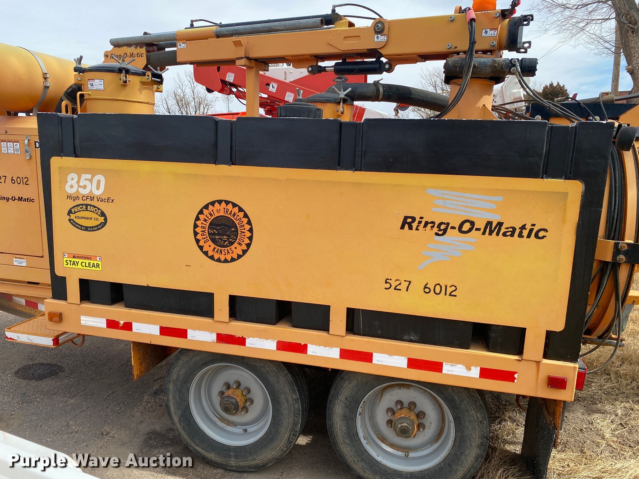 Purple Wave is selling a used Vacuum Excavator in Kansas. This item is a 2012 Ring-o-matic 850 vacuum excavator with the following: Hours: 611 on meter, VIN: 1R9J82321CP303012, KDOT ID: 527-6012