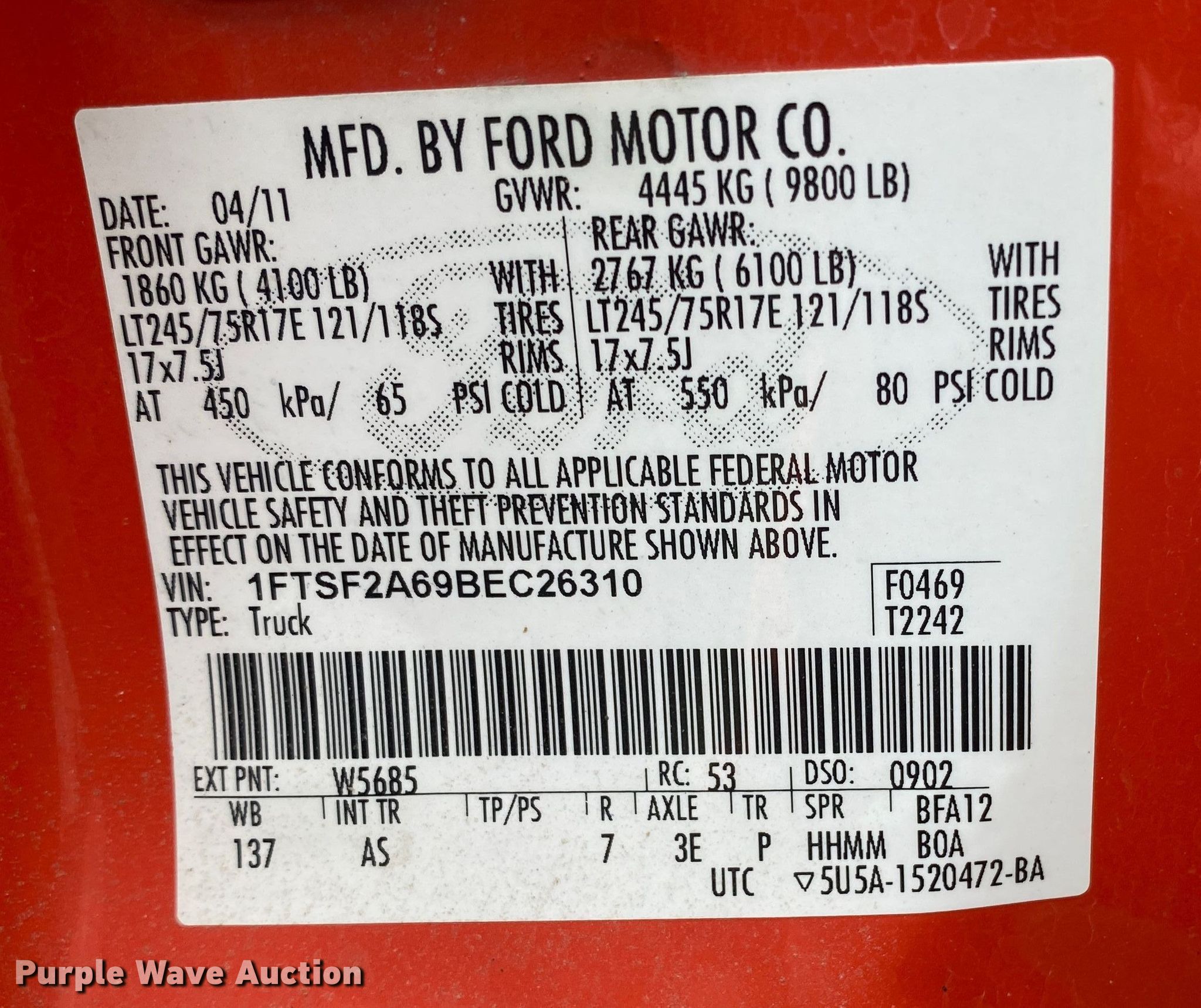 - VIN: 1FTSF2A69BEC26310