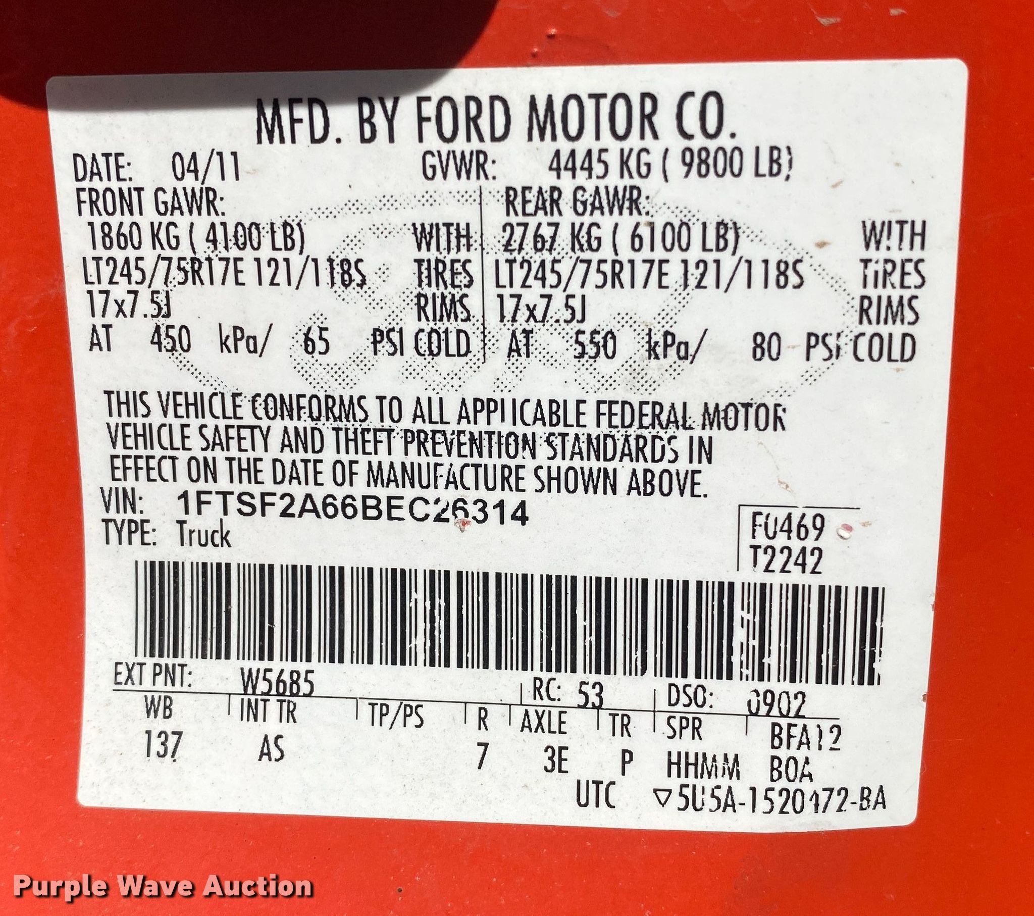Purple Wave is selling a used 3/4 or 1 Ton Pickup or Van in Kansas. This item is a 2011 Ford F250 Super Duty pickup truck with the following: Miles: 224,312 on odometer, VIN: 1FTSF2A66BEC26314, KDOT ID: 113-6041