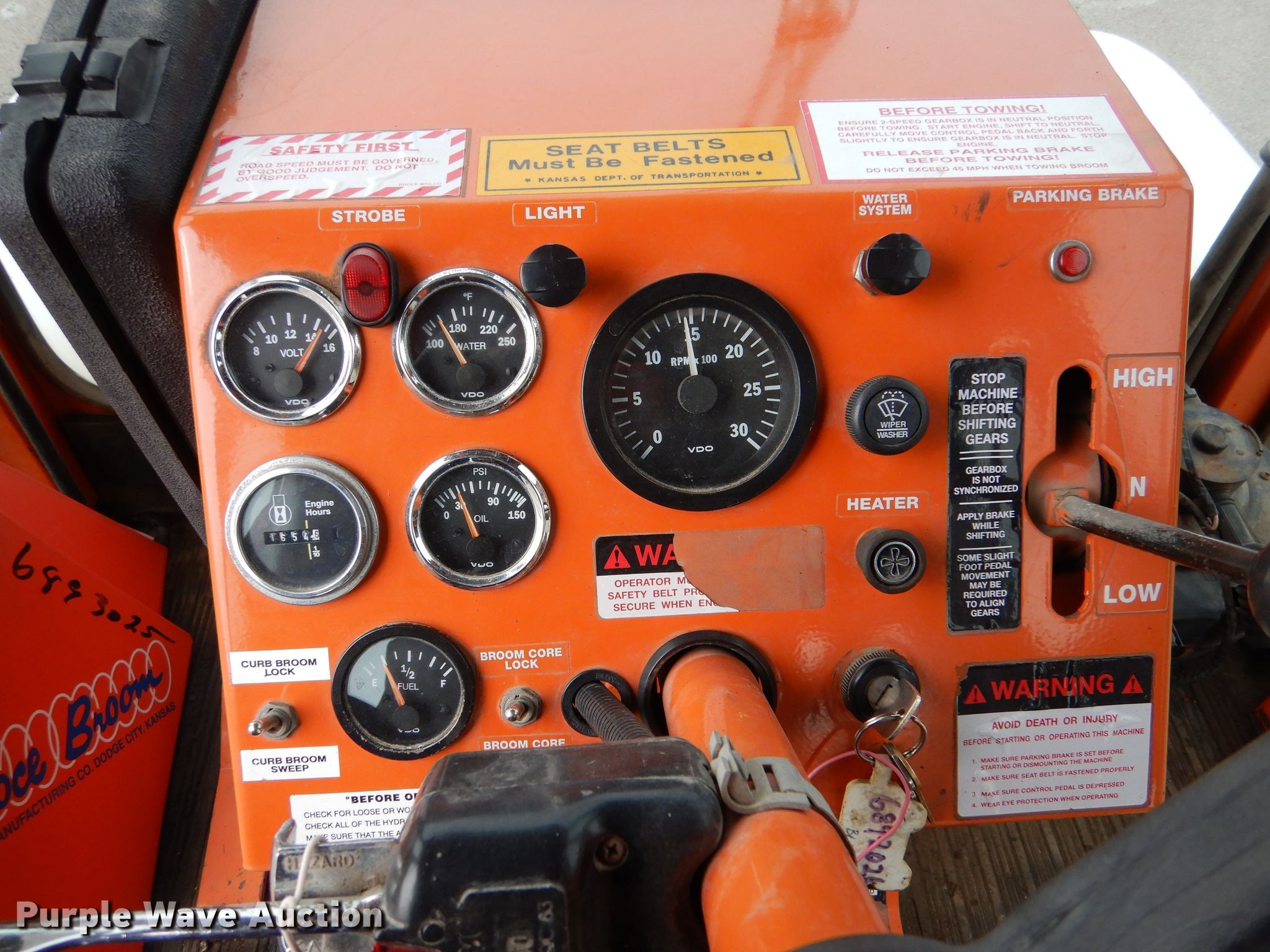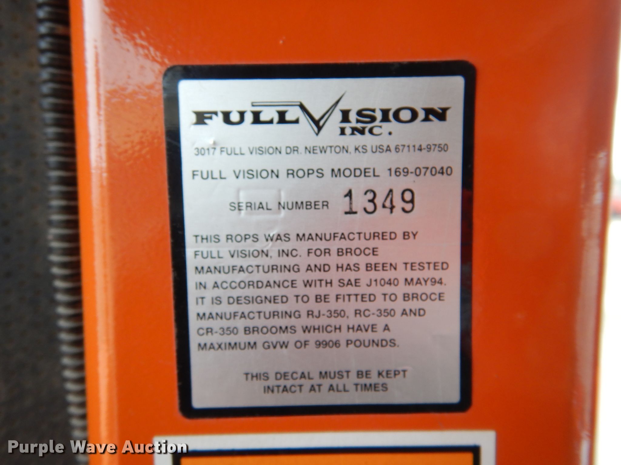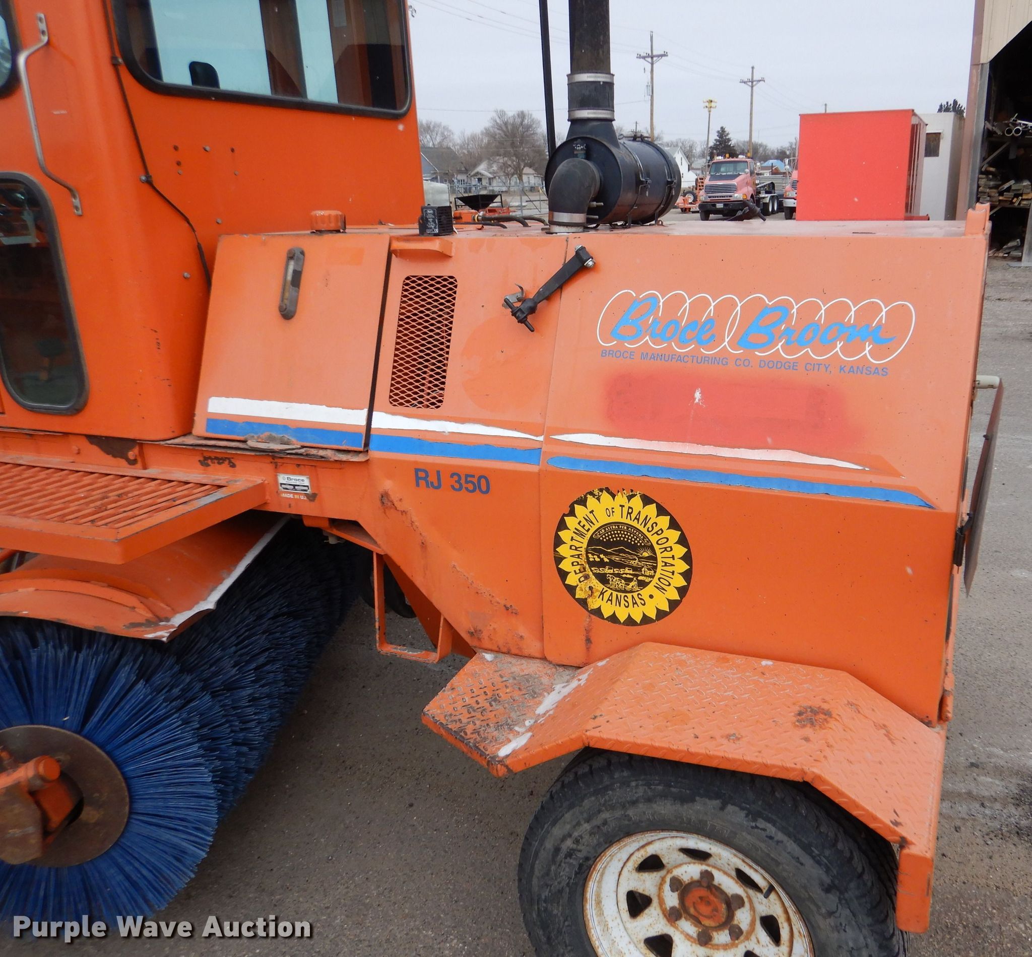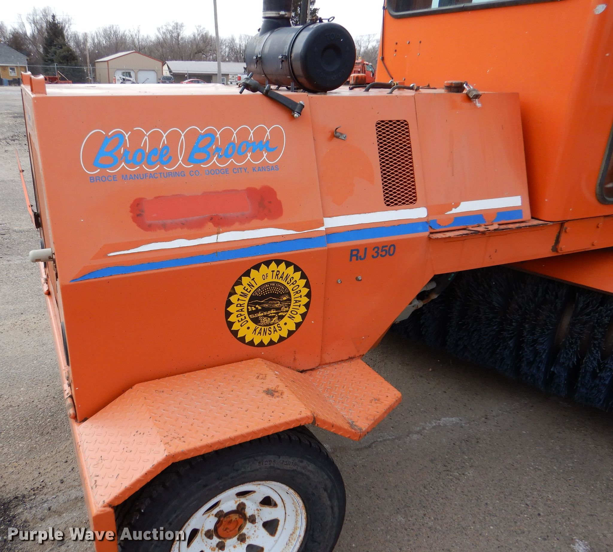 2006 Broce RJ-350 broom. Hours: 1,654 on meter, Serial: 405158, KDOT ID: 689-2026. Engine John Deere 4045DF270B, Displacement: 4.5L, Cylinders: 4, Fuel type: Diesel. Transmission Hydrostatic, Two speed travel. Chassis Brakes: Hydraulic. Operators station EROPS AC, Heat. Operational Broom Width: 96", Front blade Width: 90", Water spray system, Sweeper bed Right gutter broom Diameter: 24".. Tires Size: 225/75R16. Notes Non-operational AC. Kansas Department of Transportation - Norton. 312 S 2nd Ave. Norton, KS 67654