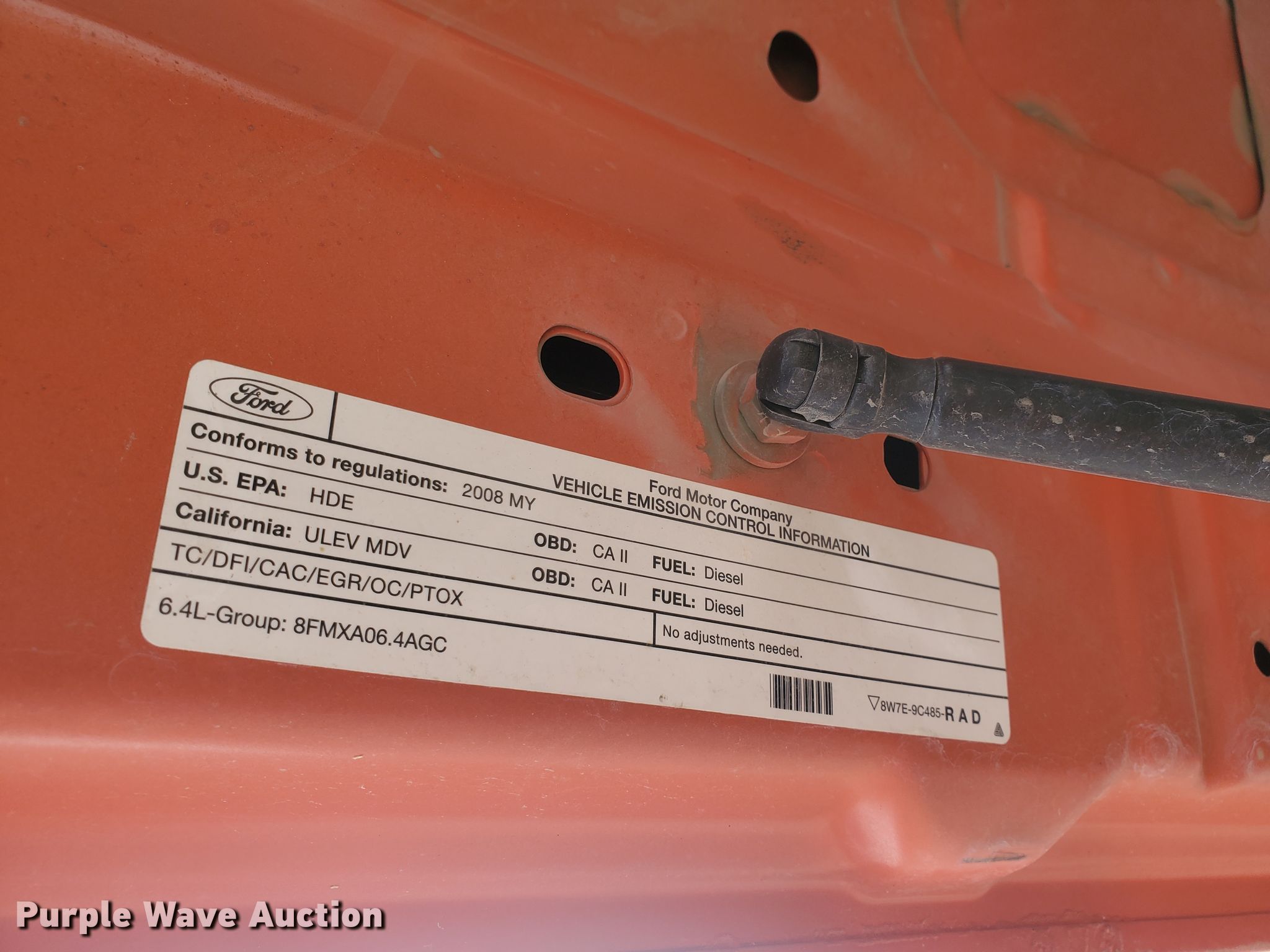 2008 Ford F250 Super Duty XL pickup truck. Miles: 226,514 on odometer, VIN: 1FTSF20R58EA17022, KDOT ID: 113-3047. Engine Displacement: 6.4L V8 OHV 32V, Cylinders: 8, Fuel type: Diesel. Transmission Automatic. Interior AC, Heat, Cruise control. Operational Auxiliary fuel tank 100 gallon capacity. Tires Size: 245/75R17. Notes Dash warning indicator: Check engine, ABS. Kansas title. Titles will be distributed after confirmation of payment and removal. Kansas Department of Transportation - Norton. 312 S 2nd Ave. Norton, KS 67654
