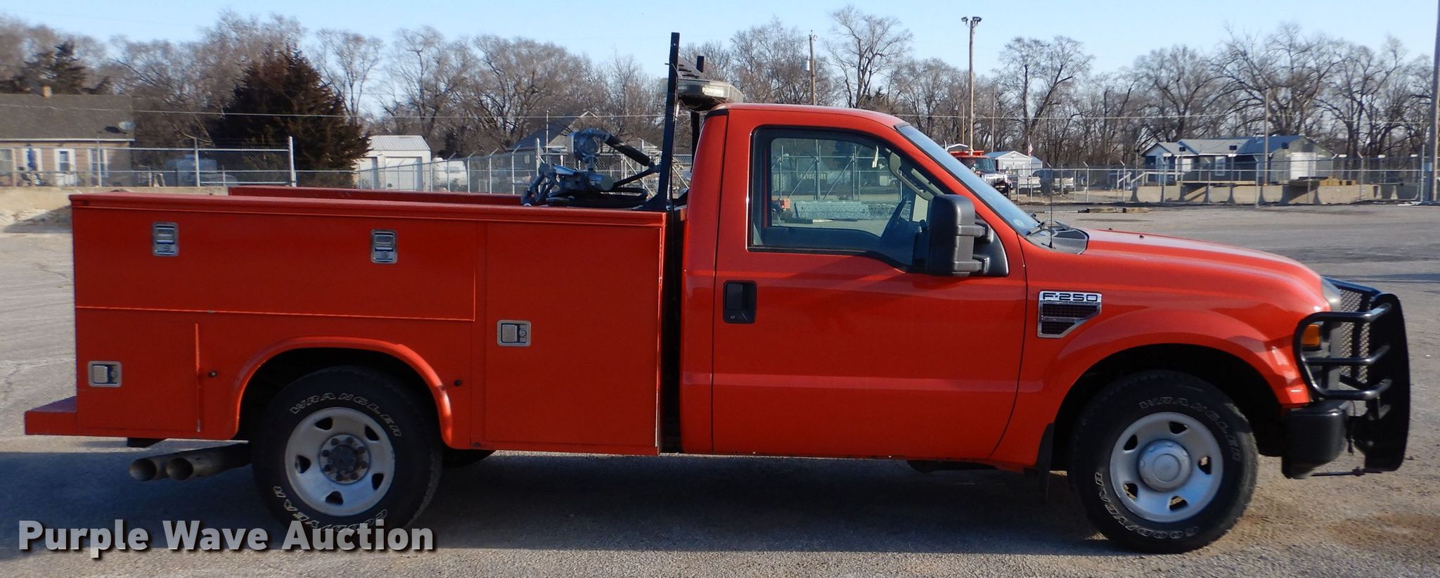 This 2008 Ford F250 Super Duty XL utility bed pickup truck will sell to the highest bidder regardless of price.