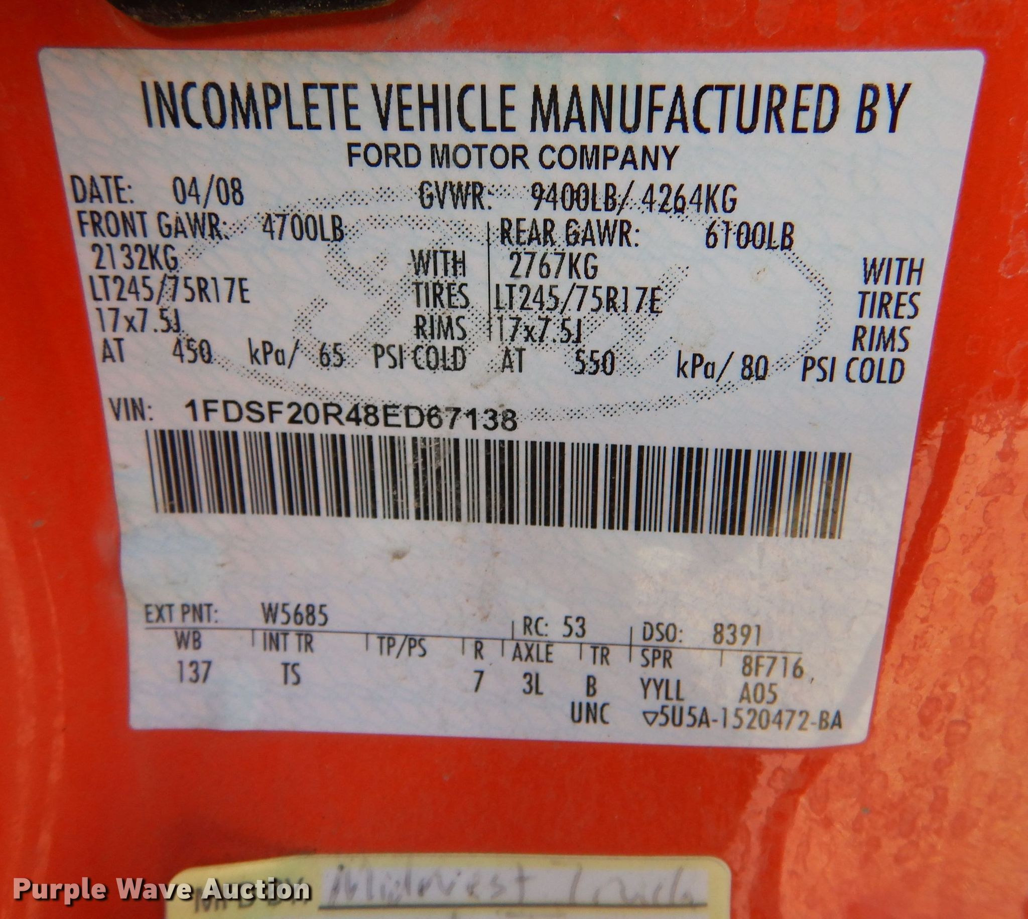 - VIN: 1FDSF20R48ED67138