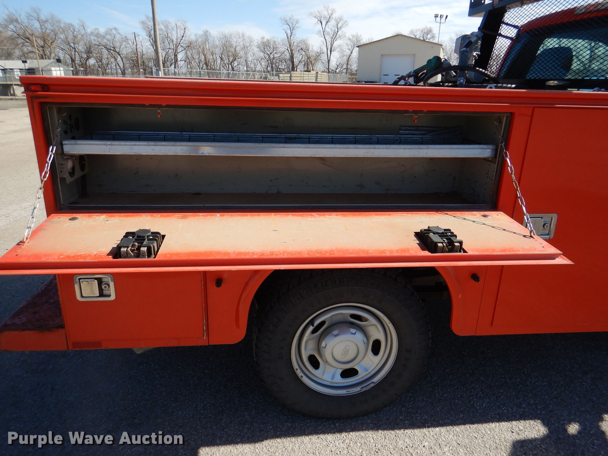2011 Ford F250 Super Duty XL utility bed pickup truck. Miles: 209,687 on odometer, VIN: 1FDSF2A66BEC26325, KDOT ID: 113-2021. Engine Displacement: 6.2L V8 OHV 16V, Cylinders: 8, Fuel type: Gas. Transmission Automatic. Interior AC, Heat, Cruise control. Operational Utility bed Knapheide 796J1, 8' L x 78" W, Weatherguard auxiliary fuel tank GPI MD130 fuel meter, GPI pump. Tires Size: 245/75R17. Notes Dead battery, Rust hole in bed, Auxiliary fuel tank leaks. Kansas title. Titles will be distributed after confirmation of payment and removal. Kansas Department of Transportation - Salina. 1006 North 3rd. Salina, KS 67401