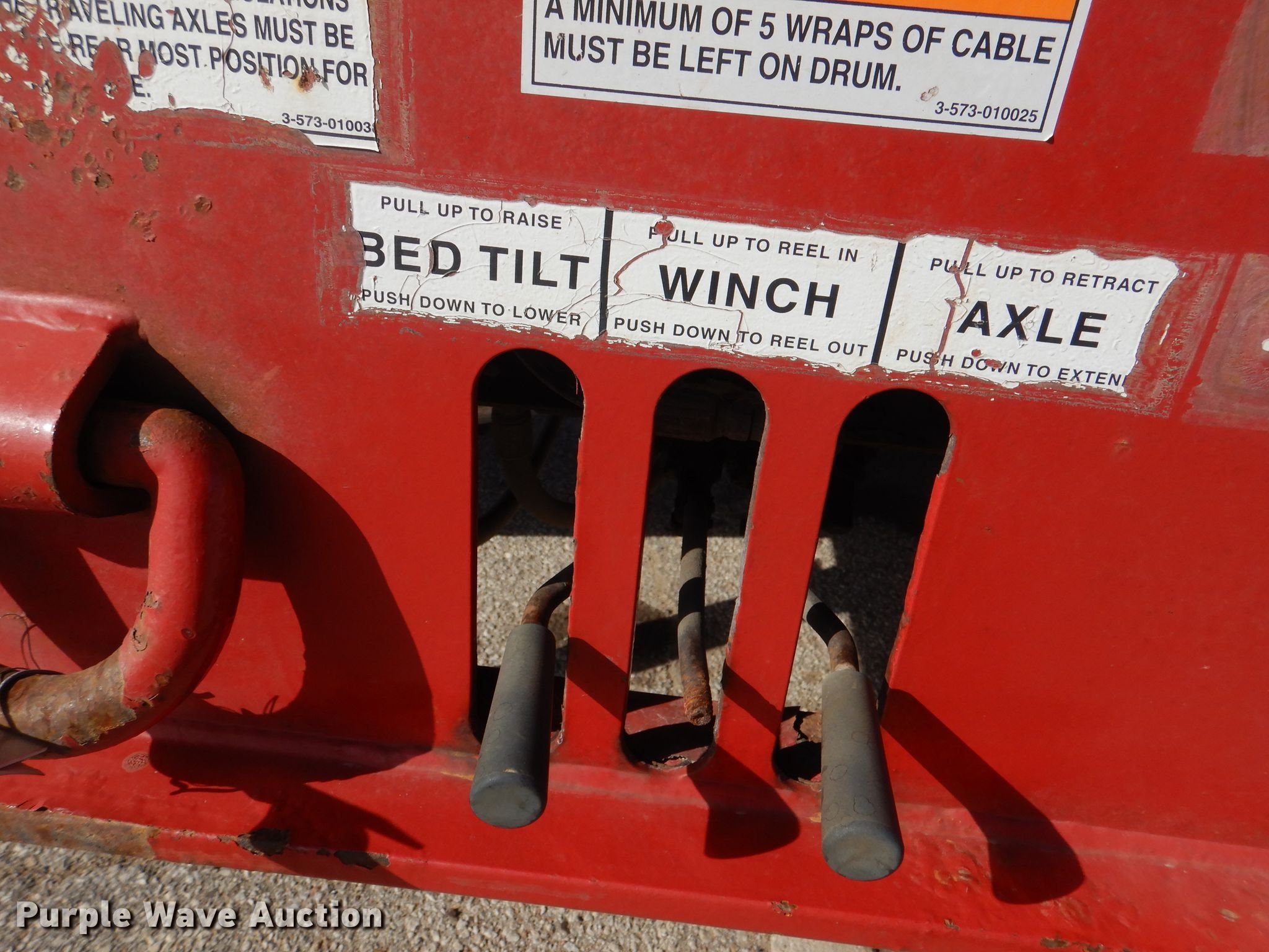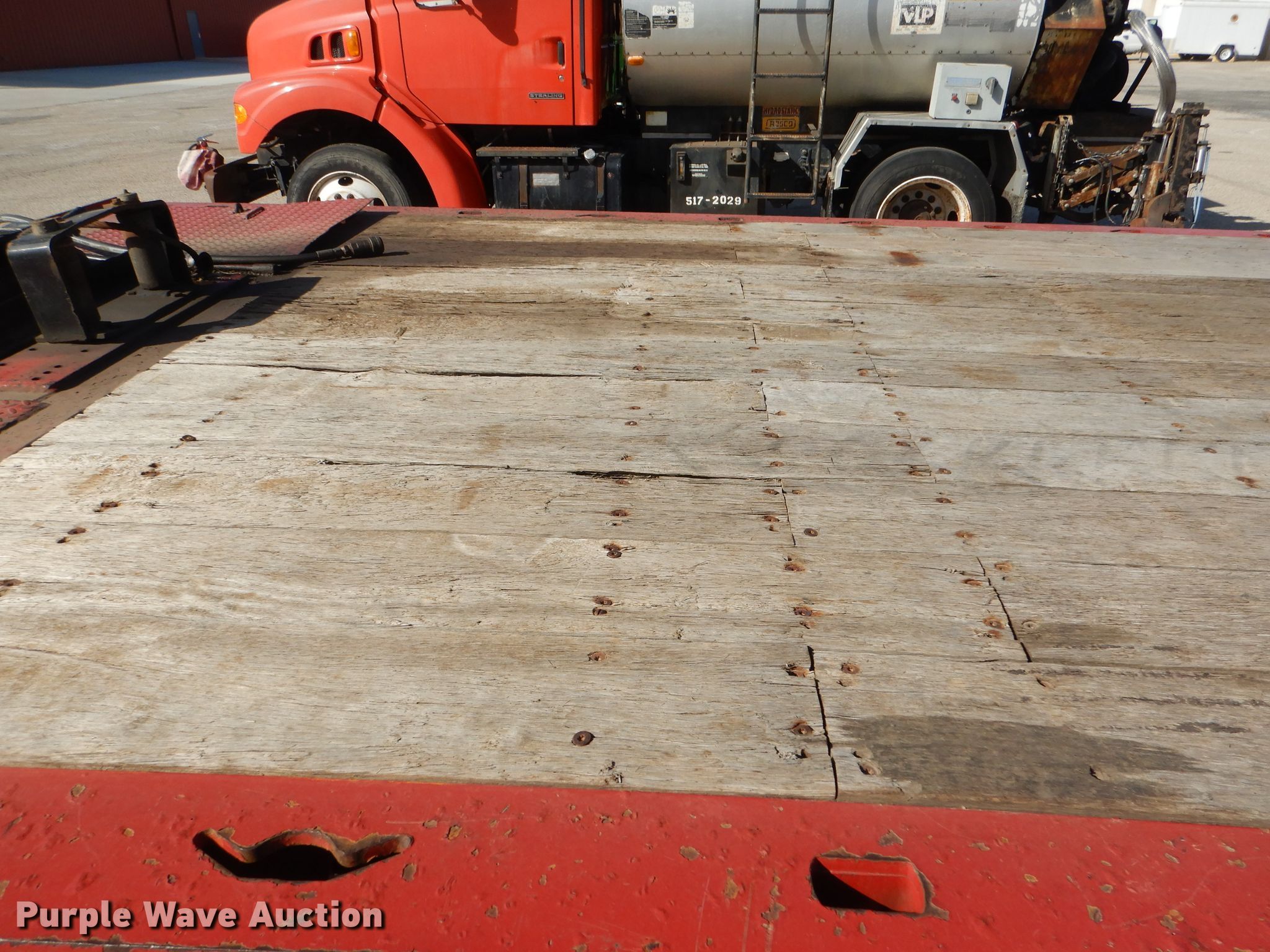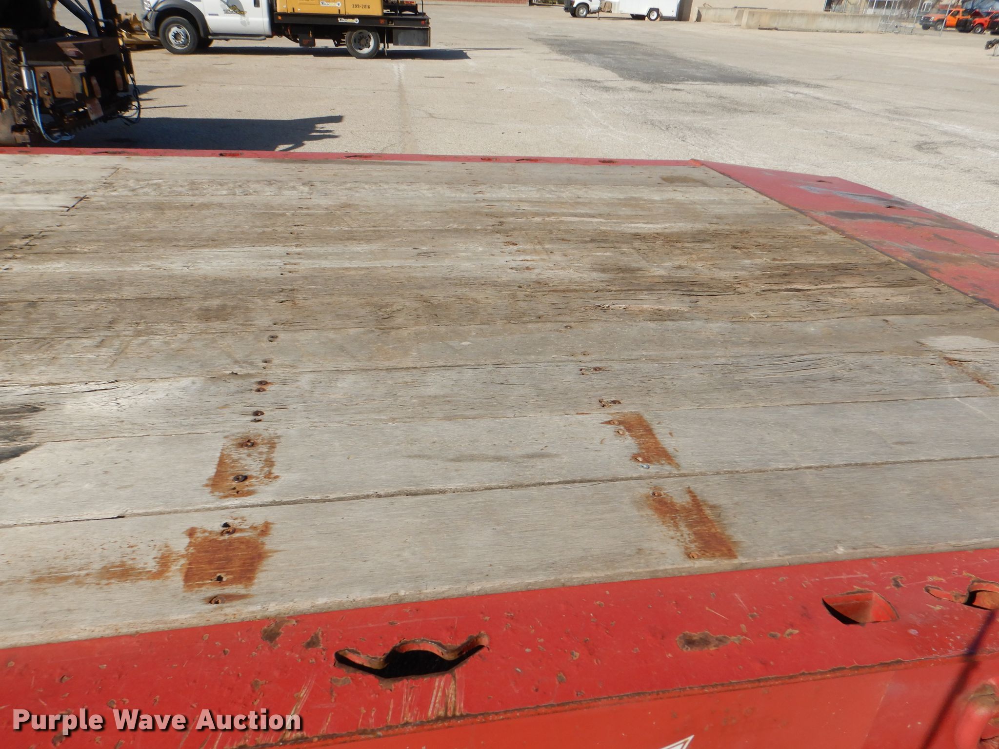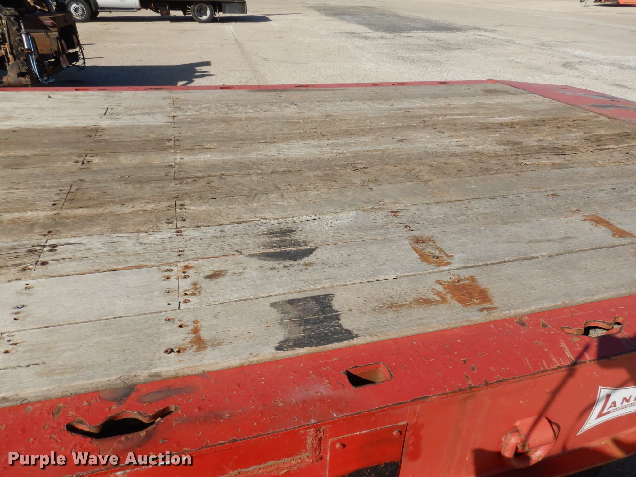 2008 Landoll 345D tilt deck equipment trailer. VIN: 1LH345JH781D16862, KDOT ID: 777-2057. Dimensions Overall: 38' L x 102" W, Deck: 31' L x 102" W. Operational Deck type: Wood, Winch Dayton, Capacity: 12,000 lbs, Hydraulic controls: Manual. Chassis Hitch: Pintle, Landing gear: Dual, Suspension: Spring, Brakes: Air, Axles: Tandem, GVWR: 50,000 lbs, GAWR: 17,640 lbs. Tires Steel wheels, Size: 10R17.5. Notes Rust hole in frame, (2) knobs broken, Non-operational unit. Kansas title. Titles will be distributed after confirmation of payment and removal. Kansas Department of Transportation - Salina. 1006 North 3rd. Salina, KS 67401
