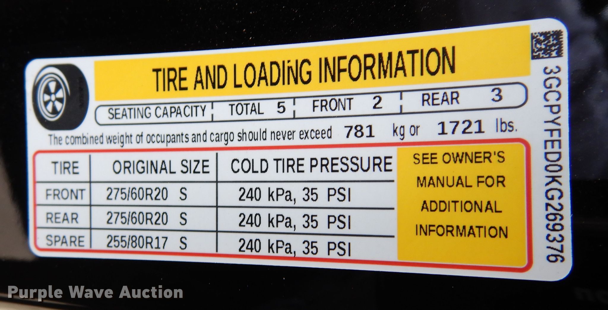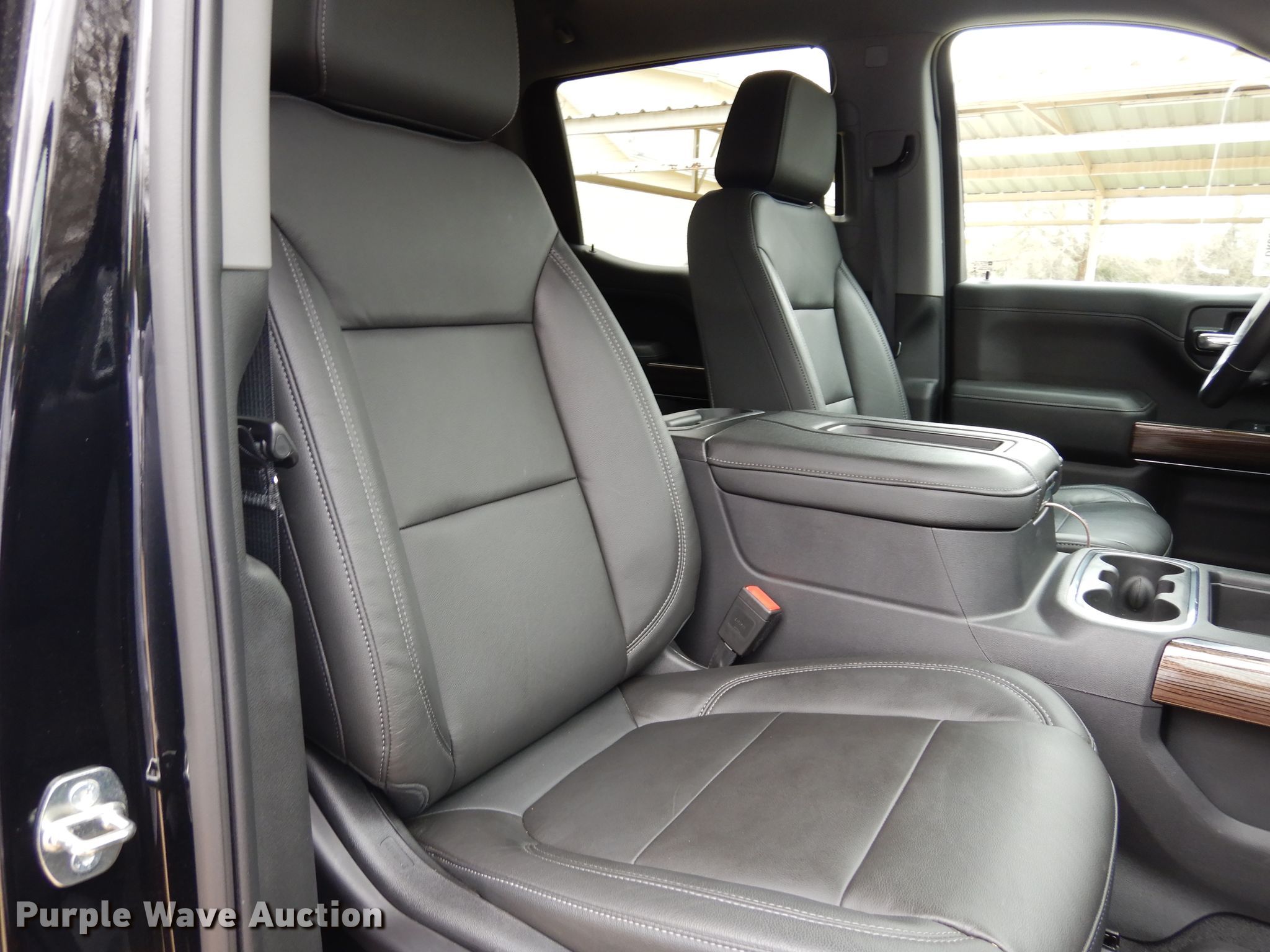 2019 Chevrolet Silverado 1500 Crew Cab pickup truck. Miles: 21,515 on odometer, Hours: 570 on meter, VIN: 3GCPYFED0KG269376. Engine Displacement: 5.3L V8 OHV 16V, Cylinders: 8, Fuel type: Gas. Transmission Automatic, Four wheel drive. Interior AC, Heat, Seat: Heated, Power driver, Heated mirrors, Power windows, Power locks, Cruise control, Backup camera. Tires Size: 275/60R20. Notes Windshield chipped or cracked. Texas title. Tinuum Services, LLC. Bremond, TX 76629