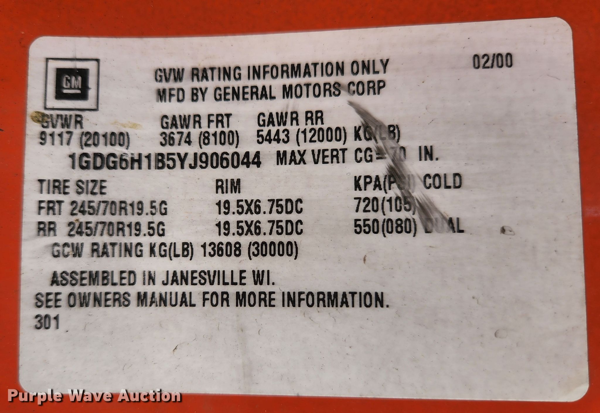 - VIN: 1GDG6H1B5YJ906044