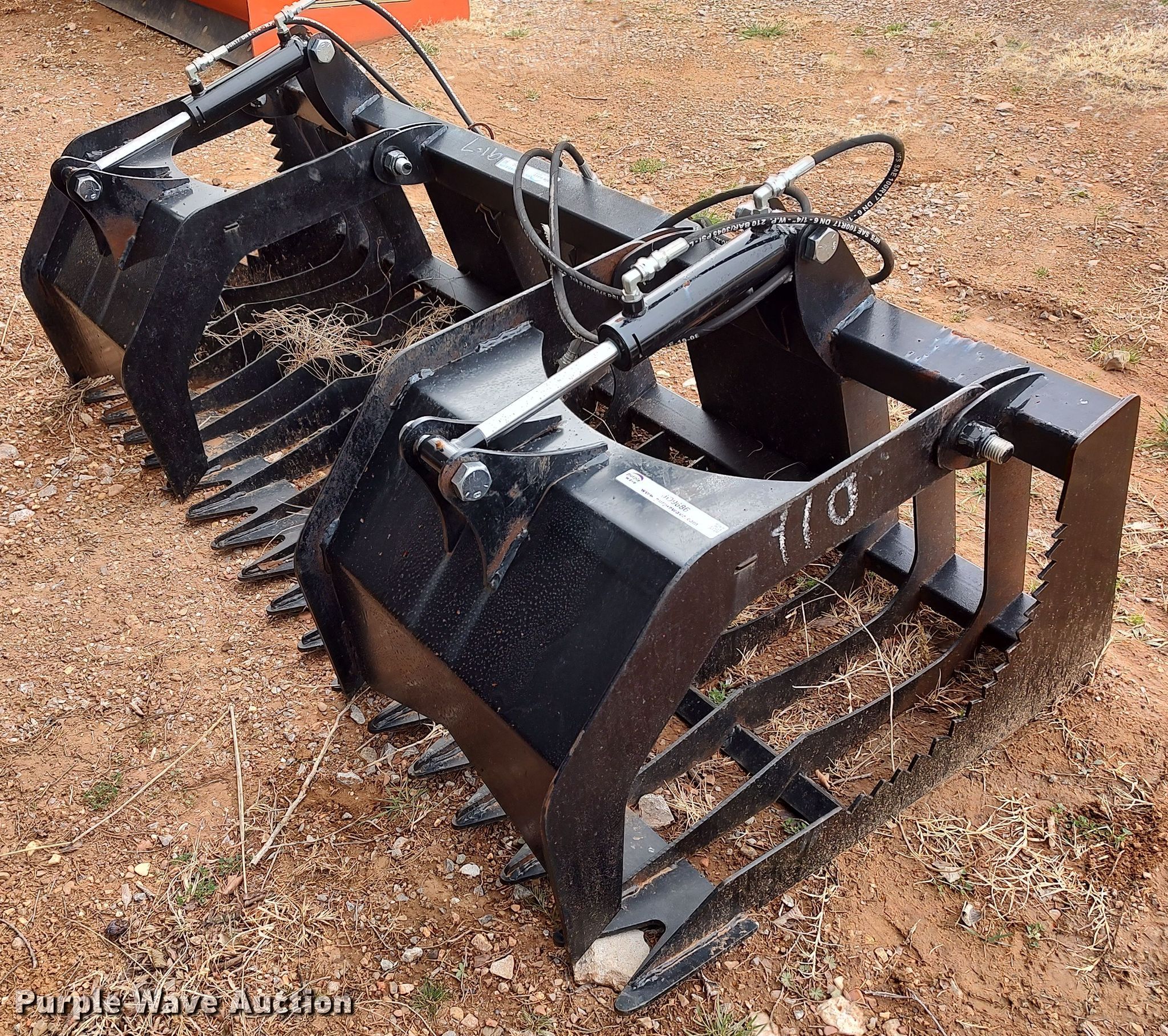 Purple Wave is selling a used Skid Steer Attach. in Oklahoma. This item is a 78" W skid steer grapple bucket with the following: Unused