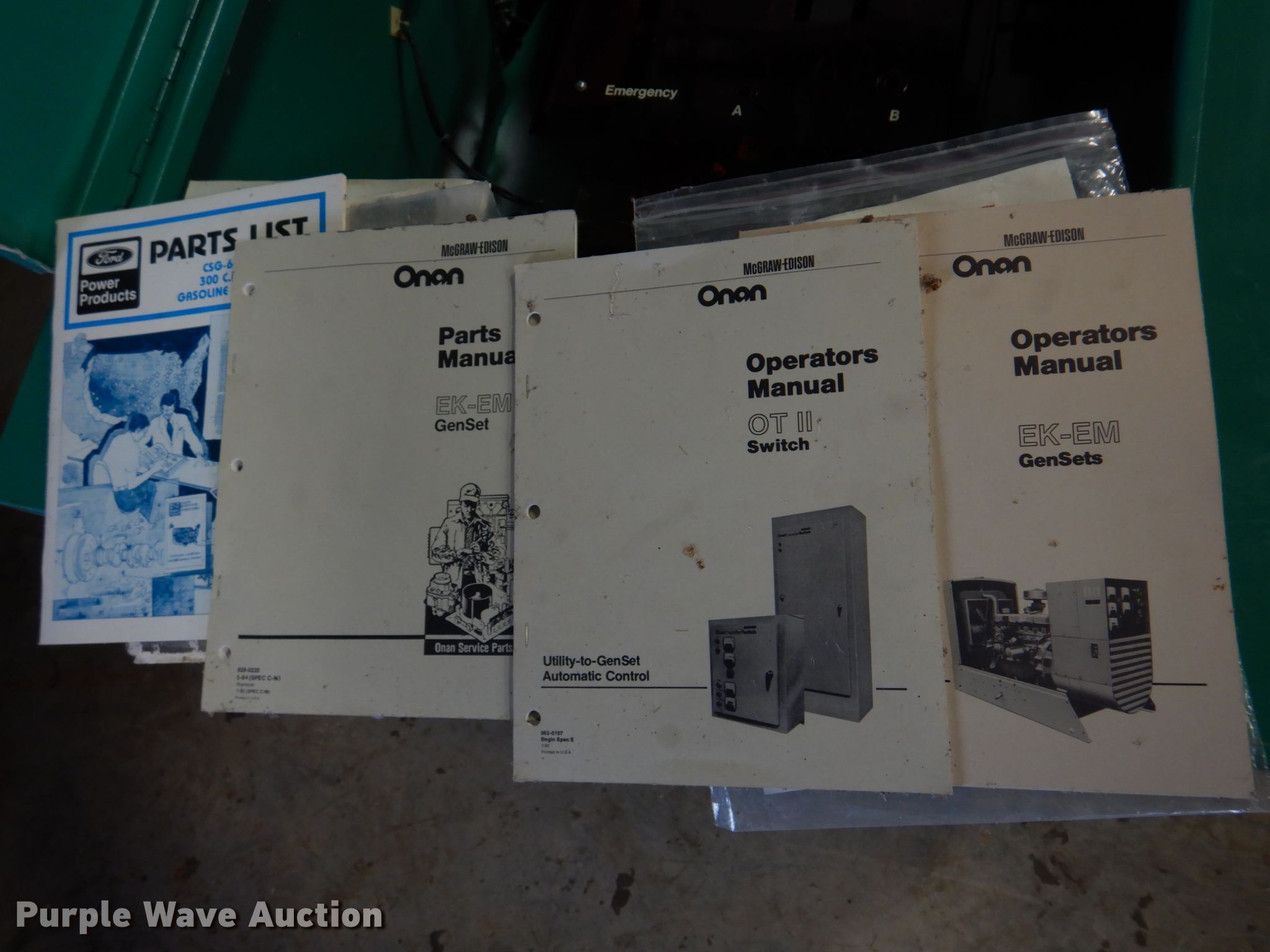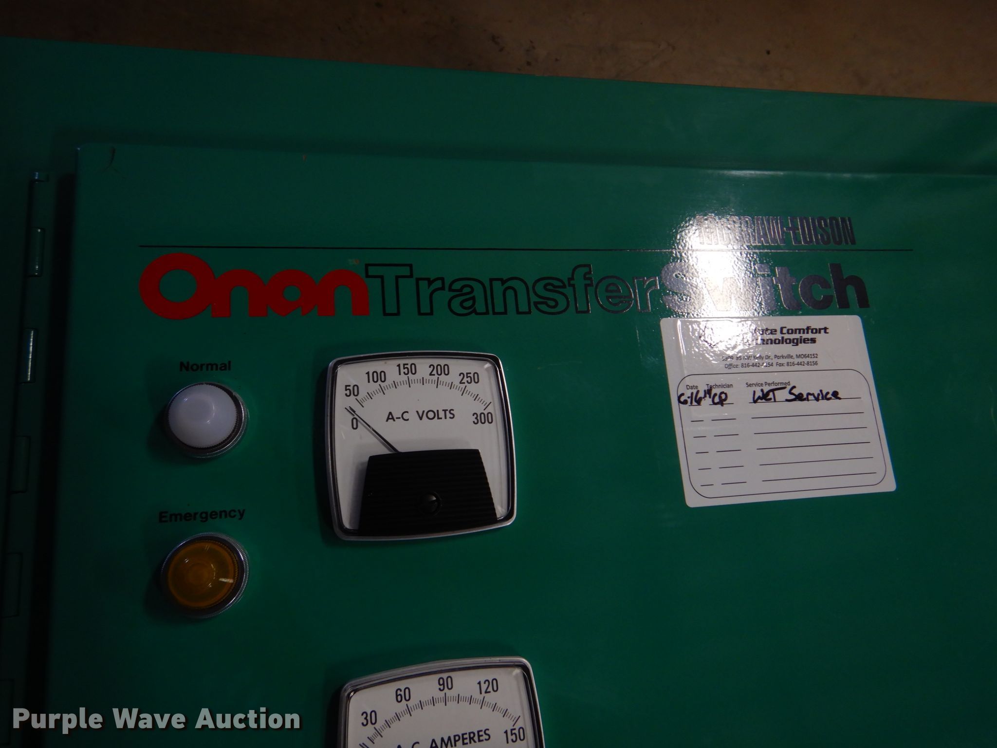 Onan 30 GenSet generator. Hours: 1,749 on meter, Serial: H840724011. Engine Ford, Cylinders: 6, Fuel type: LPG. Operational Generator Onan 30.0EK-15R/27238N, kVA: 37.5, kW: 30, Phase: Single, Three, Electric start. Onan OTACA150-3U/3103E transfer switch Hours: 1,748 on meter Serial: H840724095, 120/240V, Single phase, 60 Hz. Notes No battery, Unknown operating condition. GRM Networks. 1001 Kentucky St. Princeton, MO 64673