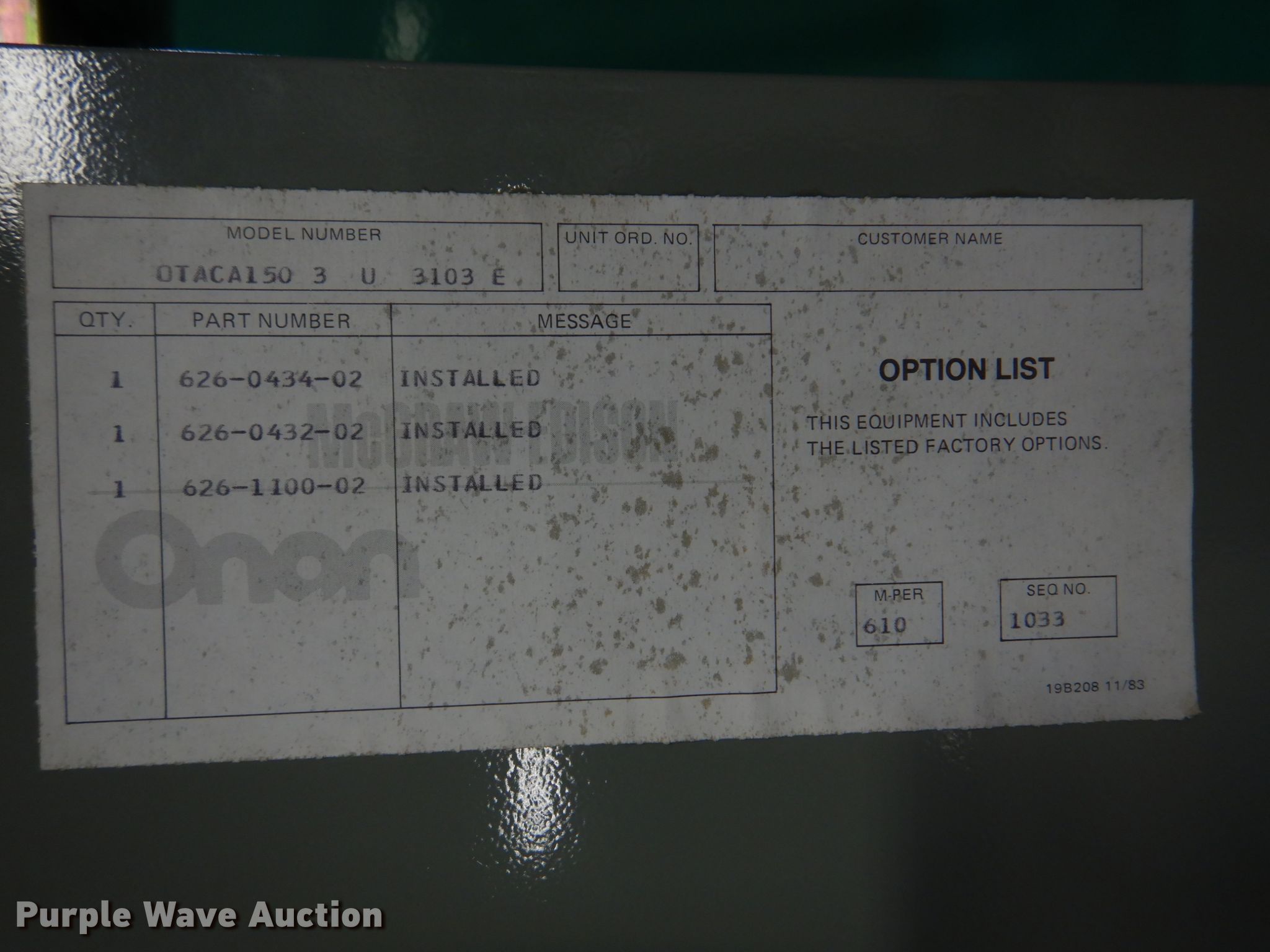 Onan 30 GenSet generator | SOLD! April 07 Construction Equipment Auction