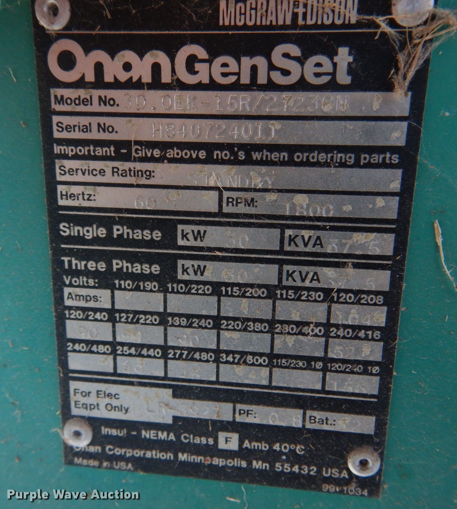 This Onan 30 GenSet generator will sell to the highest bidder regardless of price.