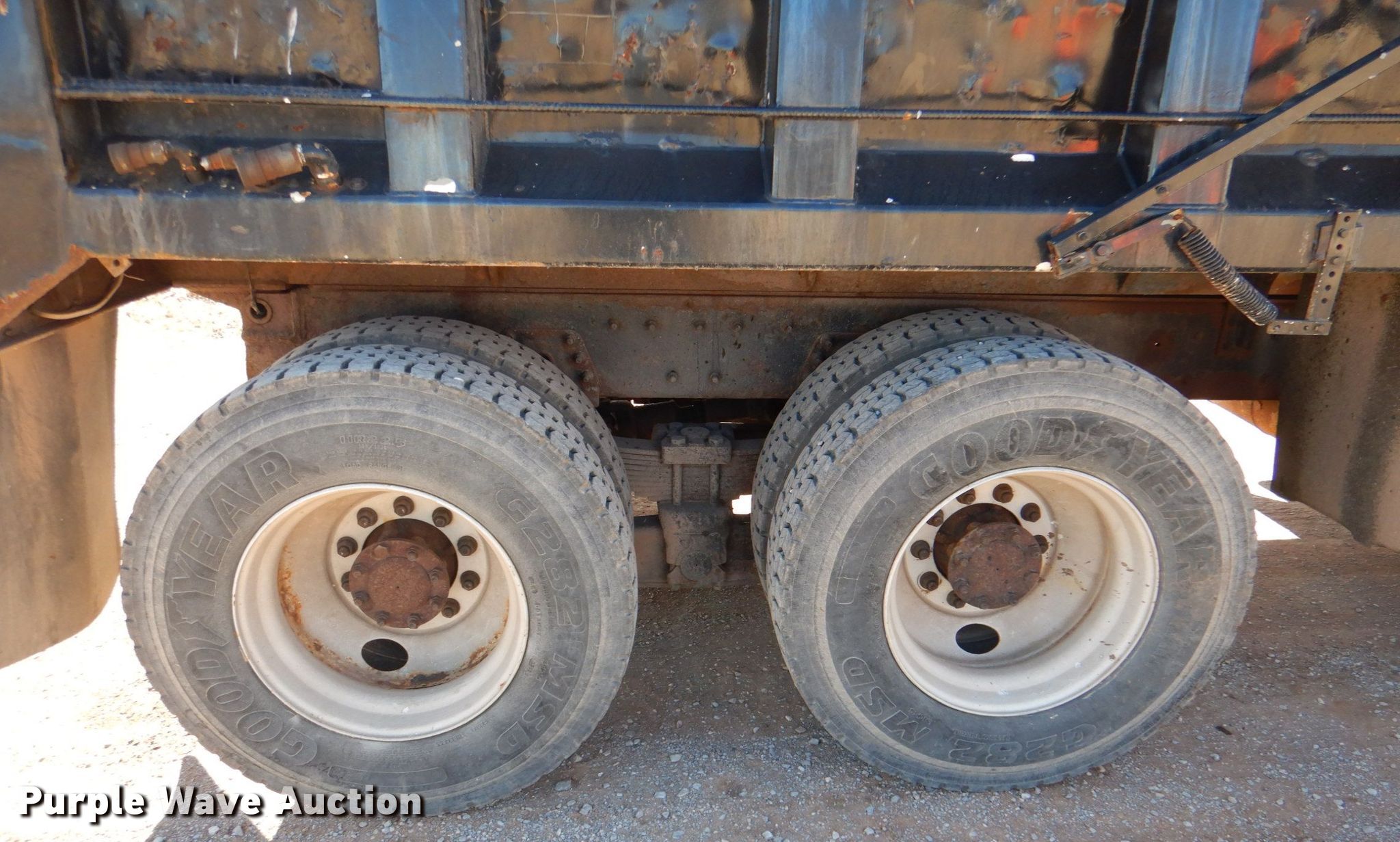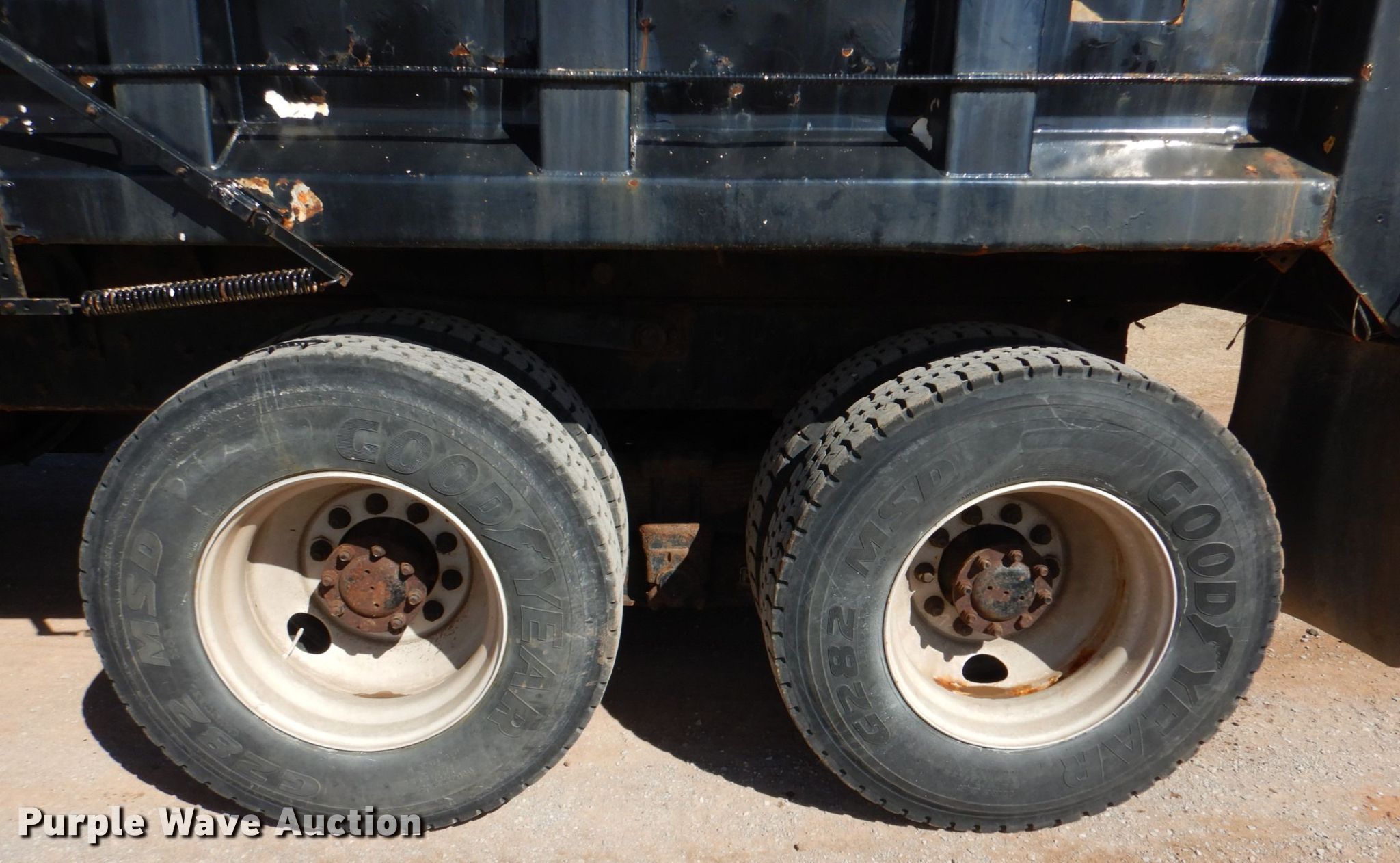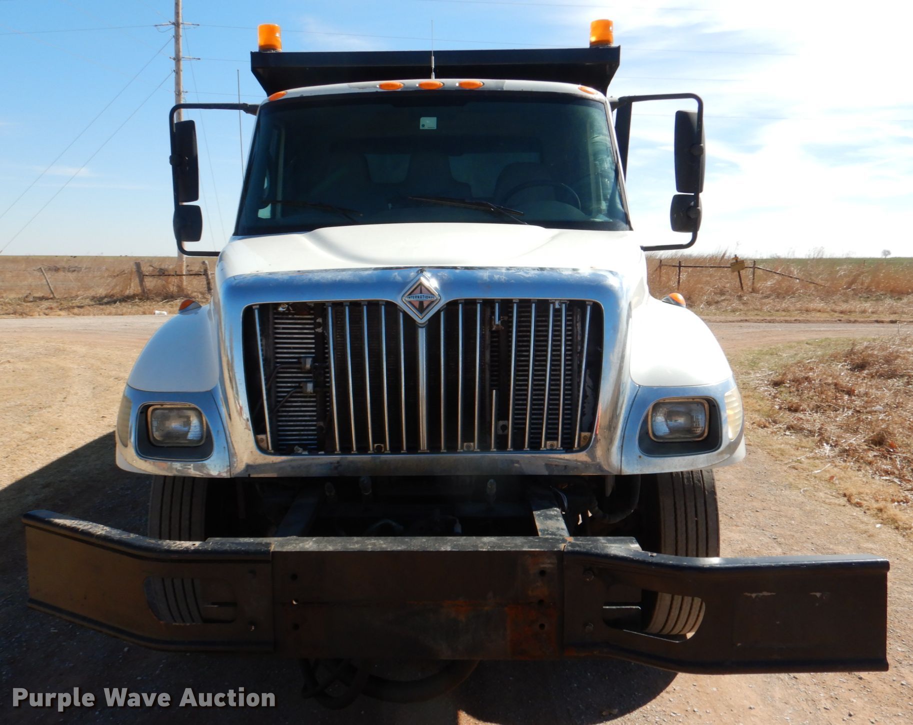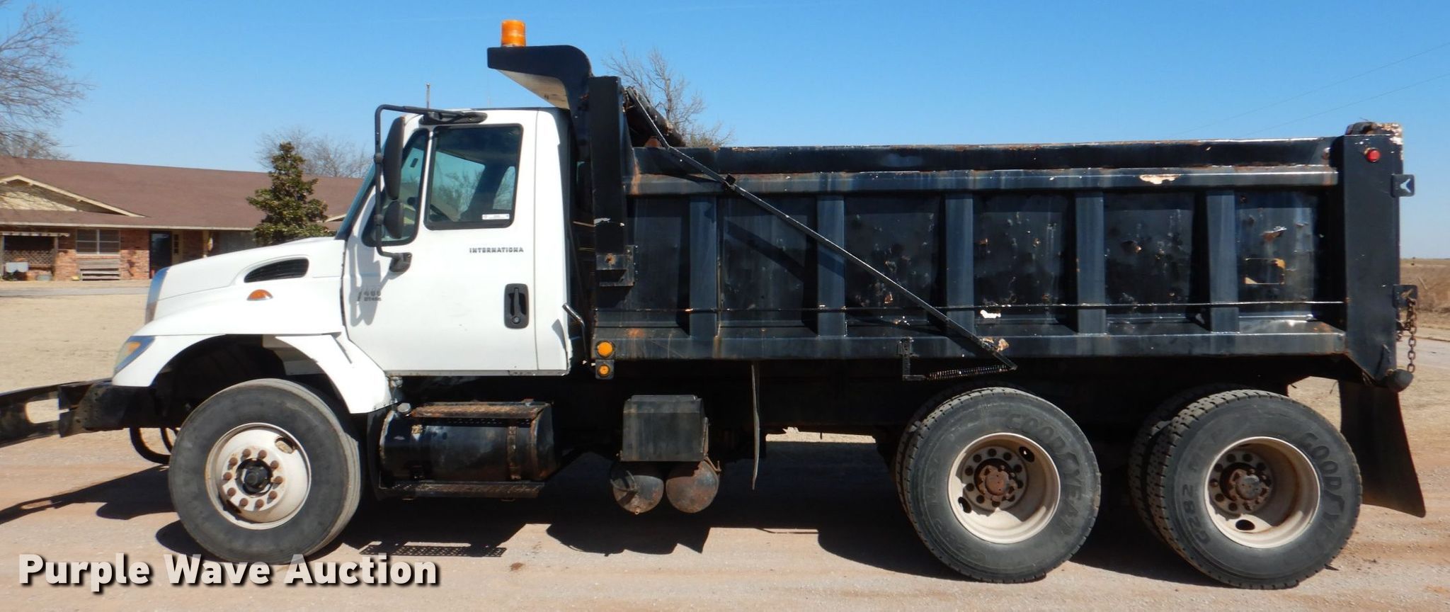 2005 International 7400 dump truck. Miles: 98,316 on odometer, Hours: 5,866 on meter, VIN: 1HTWGAAR15J038186. Engine International DT466, Displacement: 7.6L, Cylinders: 6, Fuel type: Diesel. Transmission Automatic. Chassis Axles: Tandem, Suspension: Spring over walking beam, Brakes: Air, PTO, Front mount PTO. Interior AC, Heat. Operational Dump bed 14' L x 8' W, Side height: 40", Side board height: 6", Bed type: Steel, Roll tarp, Ram: Single , End gate: Manual. Tires Size: 11R22.5. Notes Dash warning indicator: Check engine, ABS. Oklahoma title. 4E Farms. 186969 NS 2590 Rd. Hastings, OK 73548