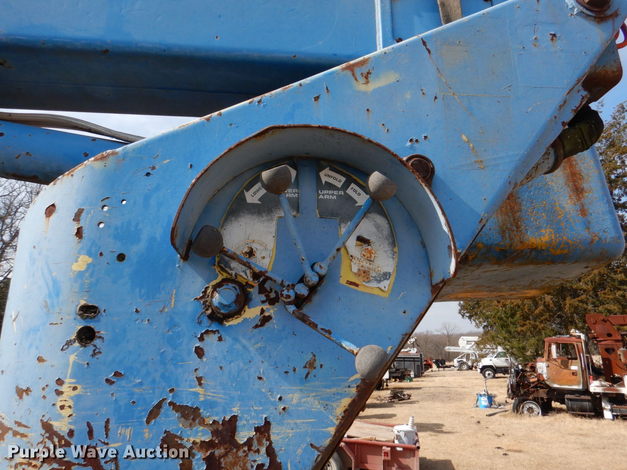 Flextrac Nodwell FN20 track carrier with bucket. Hours: 612 on meter, VIN: 741020058. Engine Cylinders: 6, Fuel type: Gas. Transmission Manual, Speed: 4. Operational Bed 9' L, Engine Kohler 16, Cylinders: 1, Fuel: Gas, Boom Articulating, Man basket, Maximum lift height: 47'. Tracks Width: 28". Notes Windshield chipped or cracked, Non-operational boom. RVG Powerline. Highway 48 and Highway 3. Tupelo, OK 74572