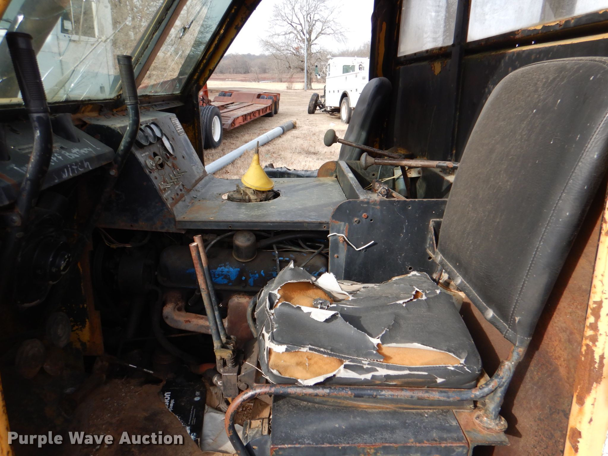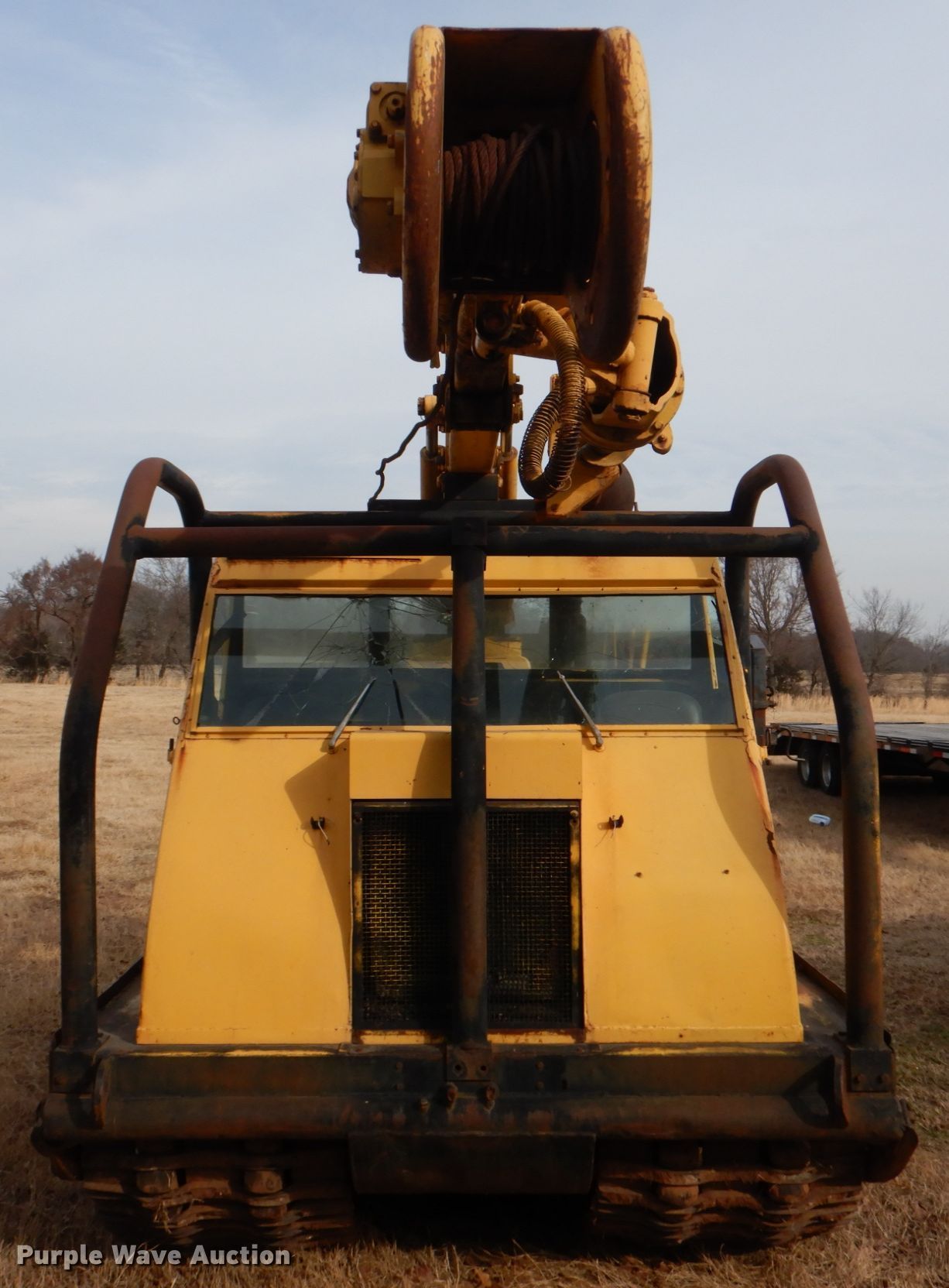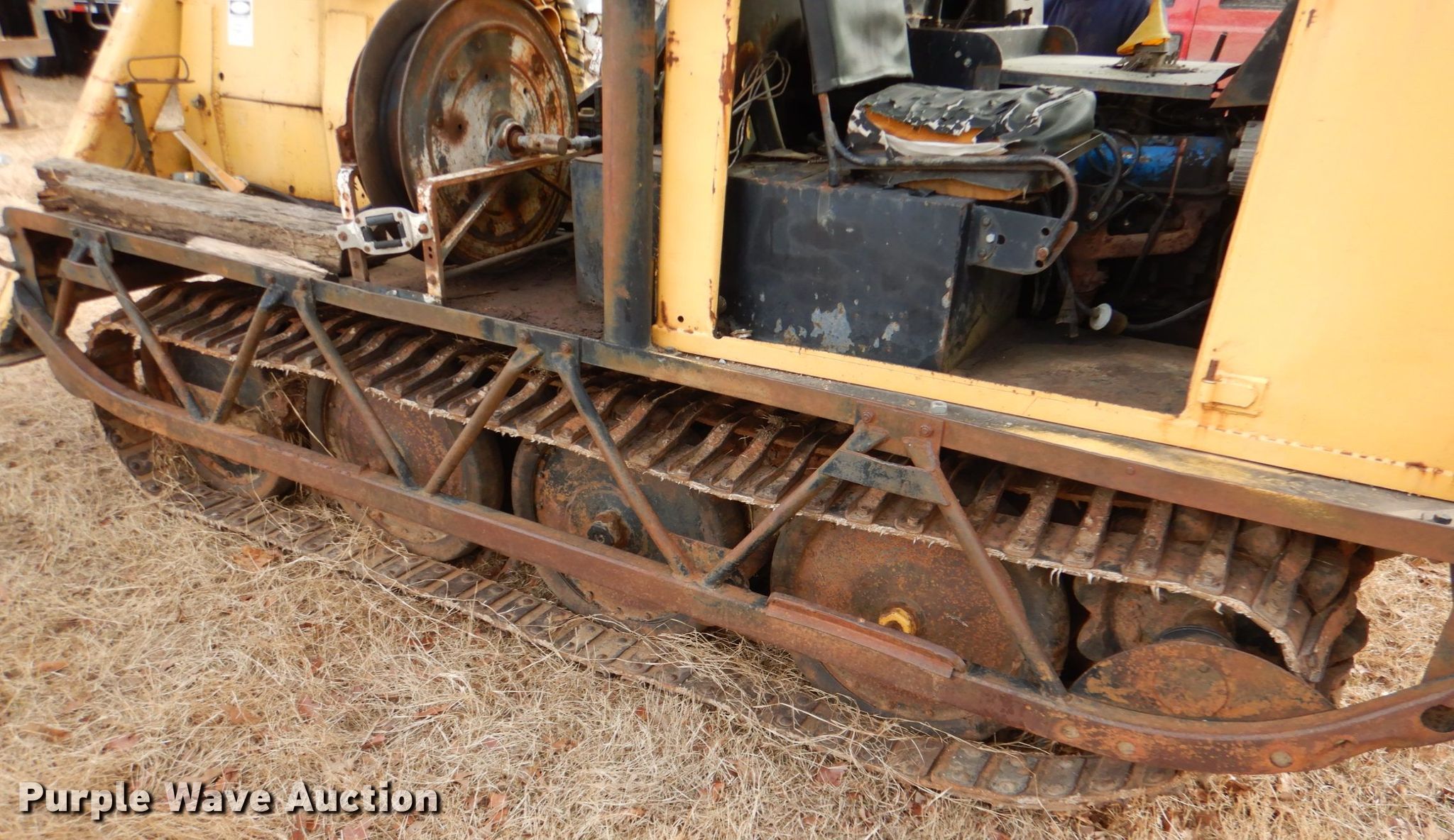 Bombardier MC74 track carrier with digger derrick. VIN: MC74-5268G. Engine Cylinders: 8, Fuel type: Gas. Transmission Manual. Operational Bed 12' 5" L x 7' W, Boom Boom controls Ground, Auger Diameter: 16".. Tracks Width: 28". Notes Windshield chipped or cracked, Non-operational boom. RVG Powerline. Highway 48 and Highway 3. Tupelo, OK 74572