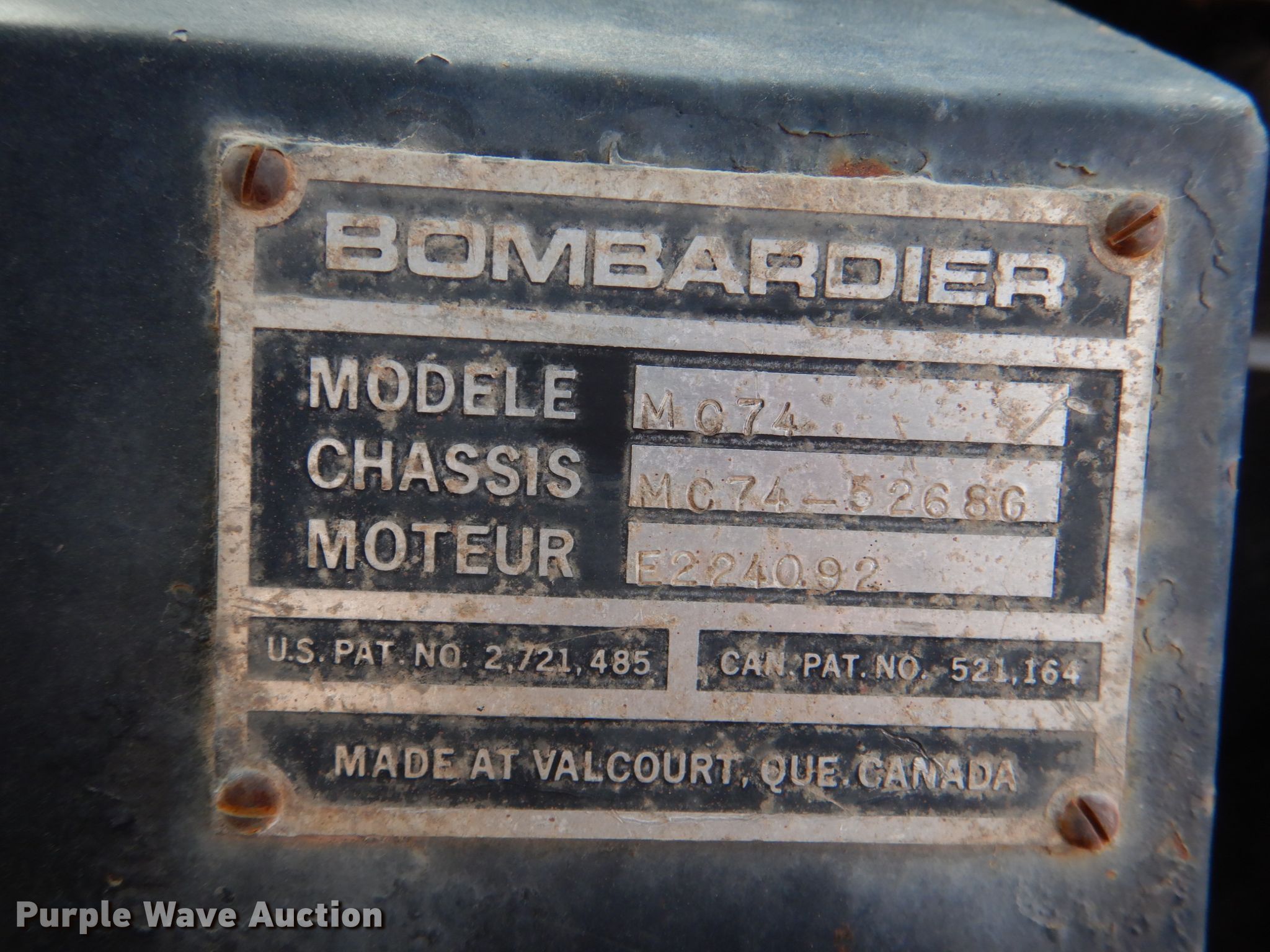 Purple Wave is selling a used Digger Derrick Truck in Oklahoma. This item is a Bombardier MC74 track carrier with digger derrick with the following: VIN: MC74-5268G