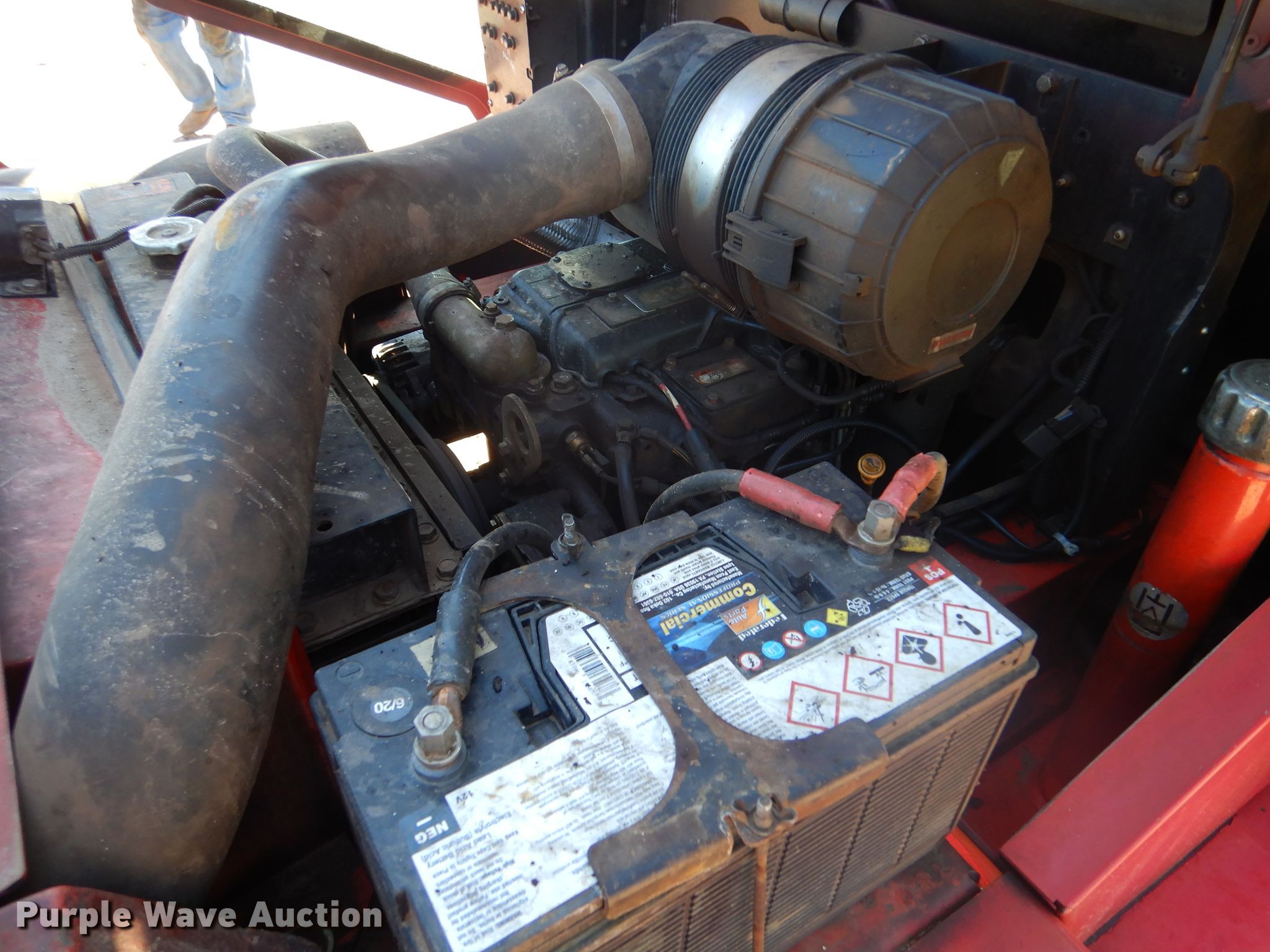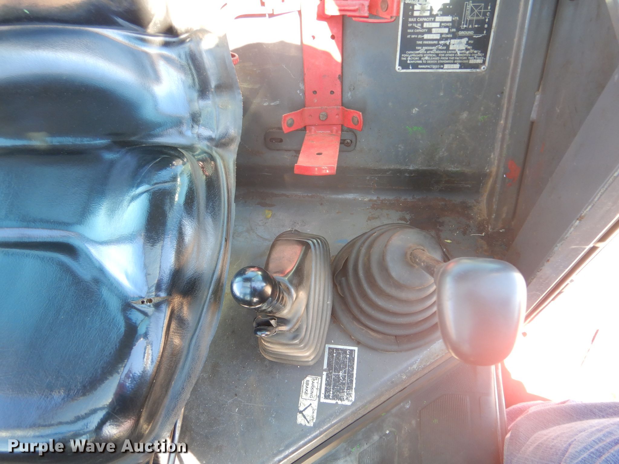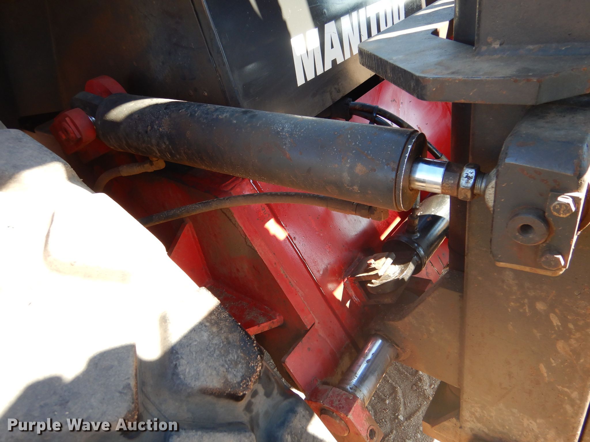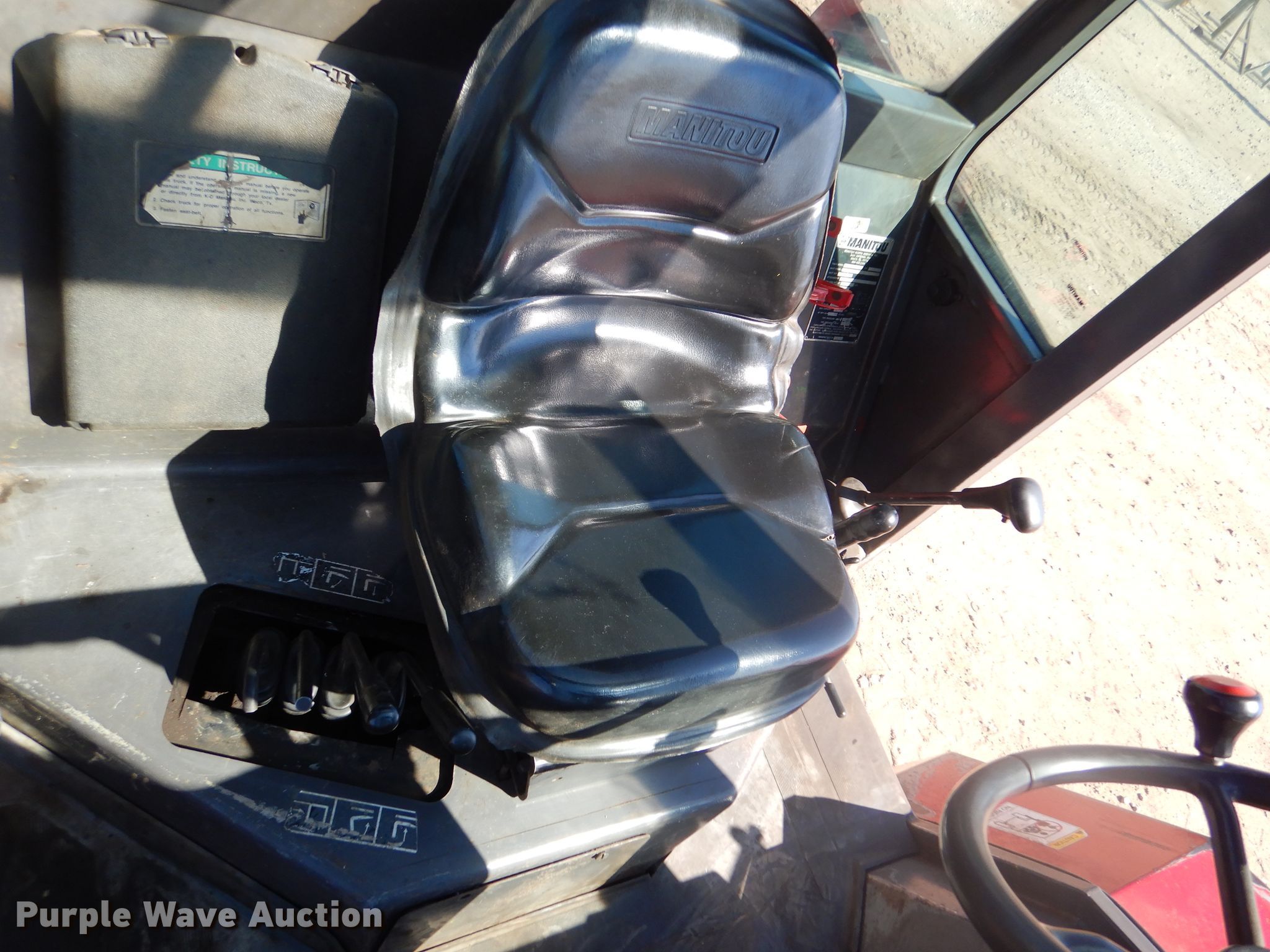 2007 Manitou M40-4 forklift. Hours: 16,484 on meter, Serial: 754599. Engine Perkins, Cylinders: 4, Fuel type: Diesel. Transmission Shuttle shift, 4F - 4R. Chassis Four wheel drive, Differential lock. Operators station EROPS Heat. Operational Maximum lift capacity: 8,000 lbs, Maximum lift height: 189", Mast stages: 3, Side shift, Mast tilt, Fork length: 70". Tires Front: 15.5R25, Rear: 12-16.5. Notes Glass cracked. Double F Pump & Supply. Great Bend, KS 67530