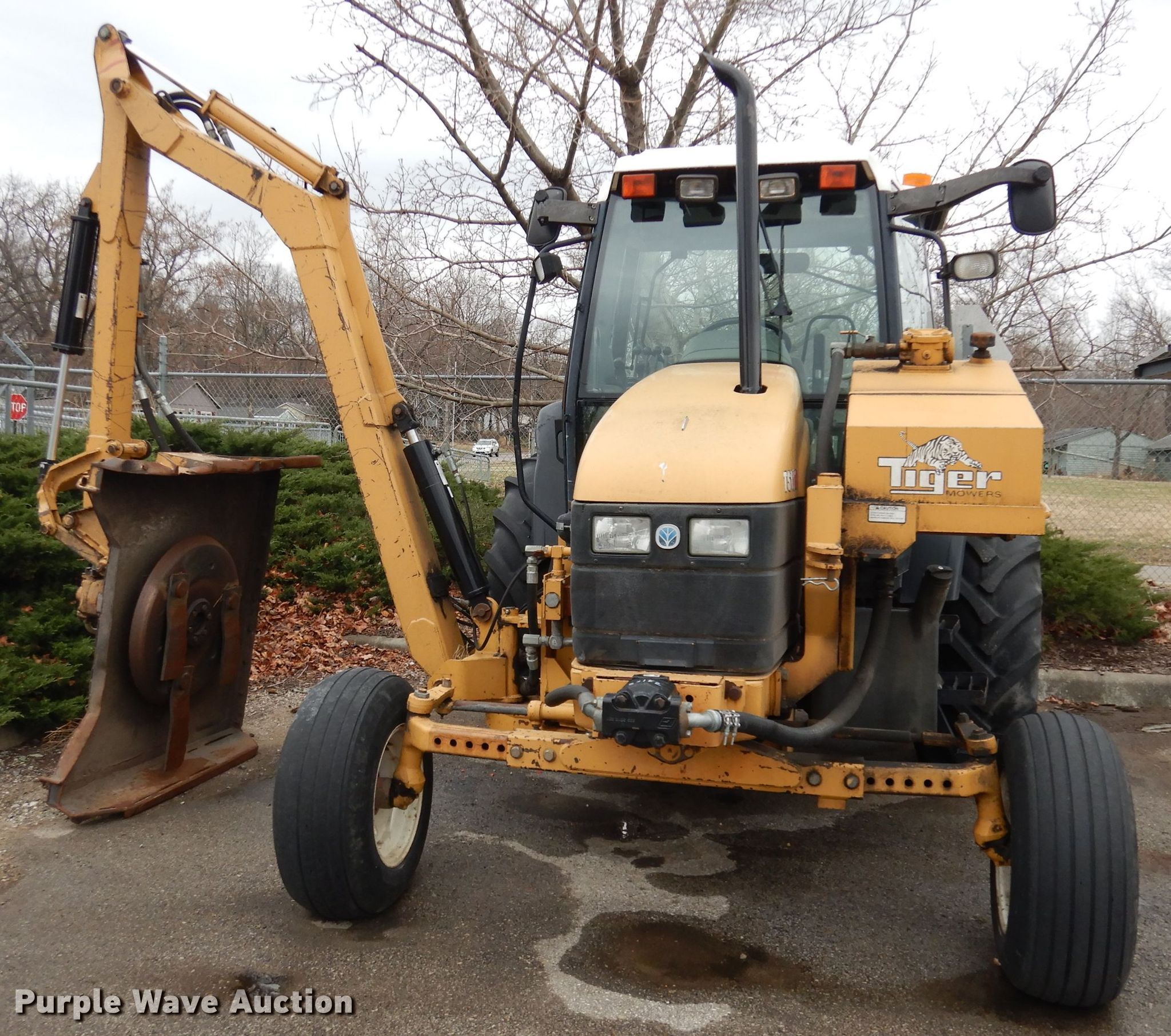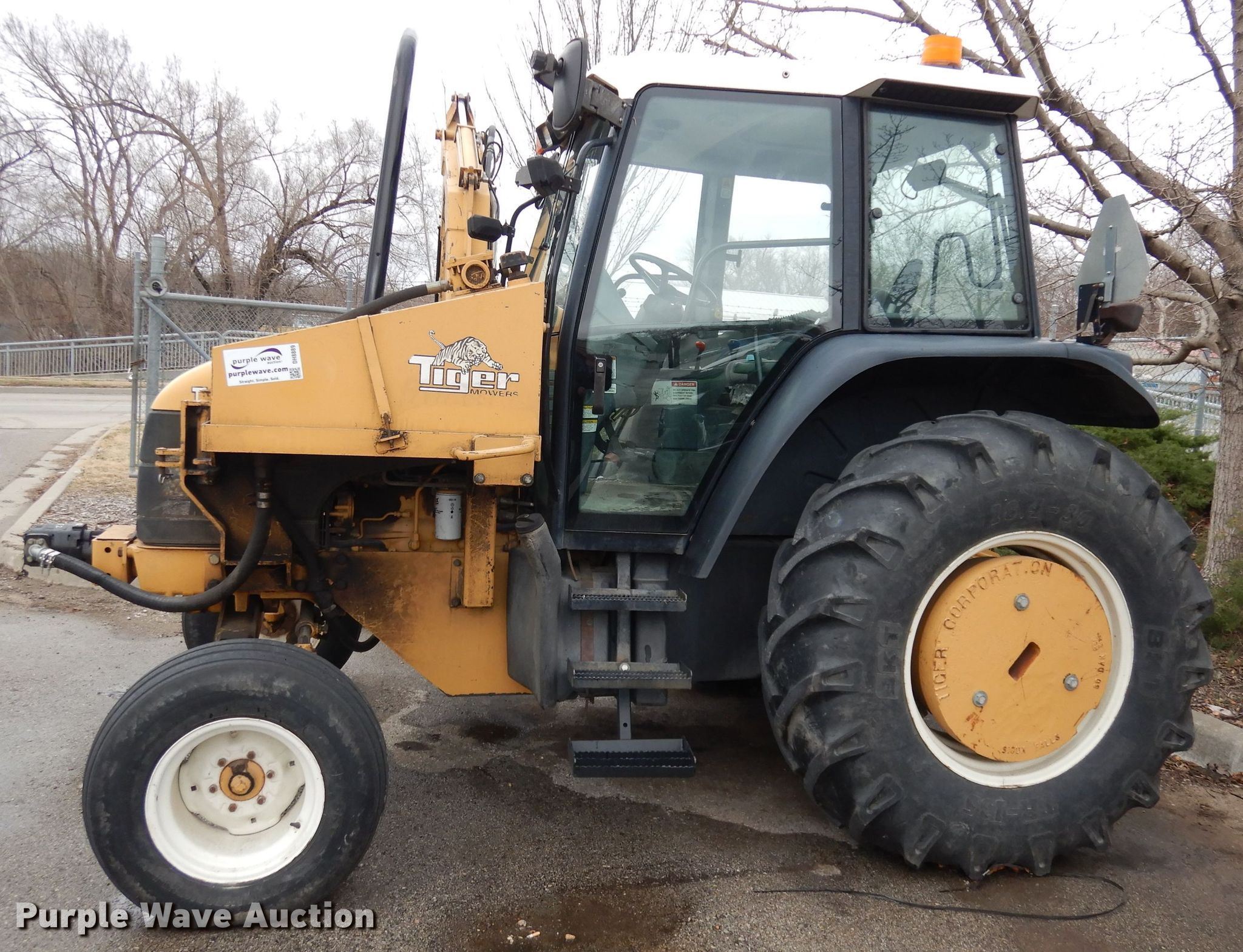 New Holland TS110 tractor. Hours: 3,280 on meter, Serial: 1173680B. Engine Cylinders: 4, Fuel type: Diesel. Transmission Powershift, 16F - 16R. Operators station AC, Heat. Features PTO: 540, Three point Top link, Seven pin outlet, ISOBUS outlet, Hydraulic remote sets Rear: 2, Side boom mower Tiger, Width: 54". Tires Front: 11L-16, Rear: 18.4-30. Notes Dead battery, Unknown operating condition. City of Lawrence. 1141 Haskell Ave. Lawrence, KS 66044