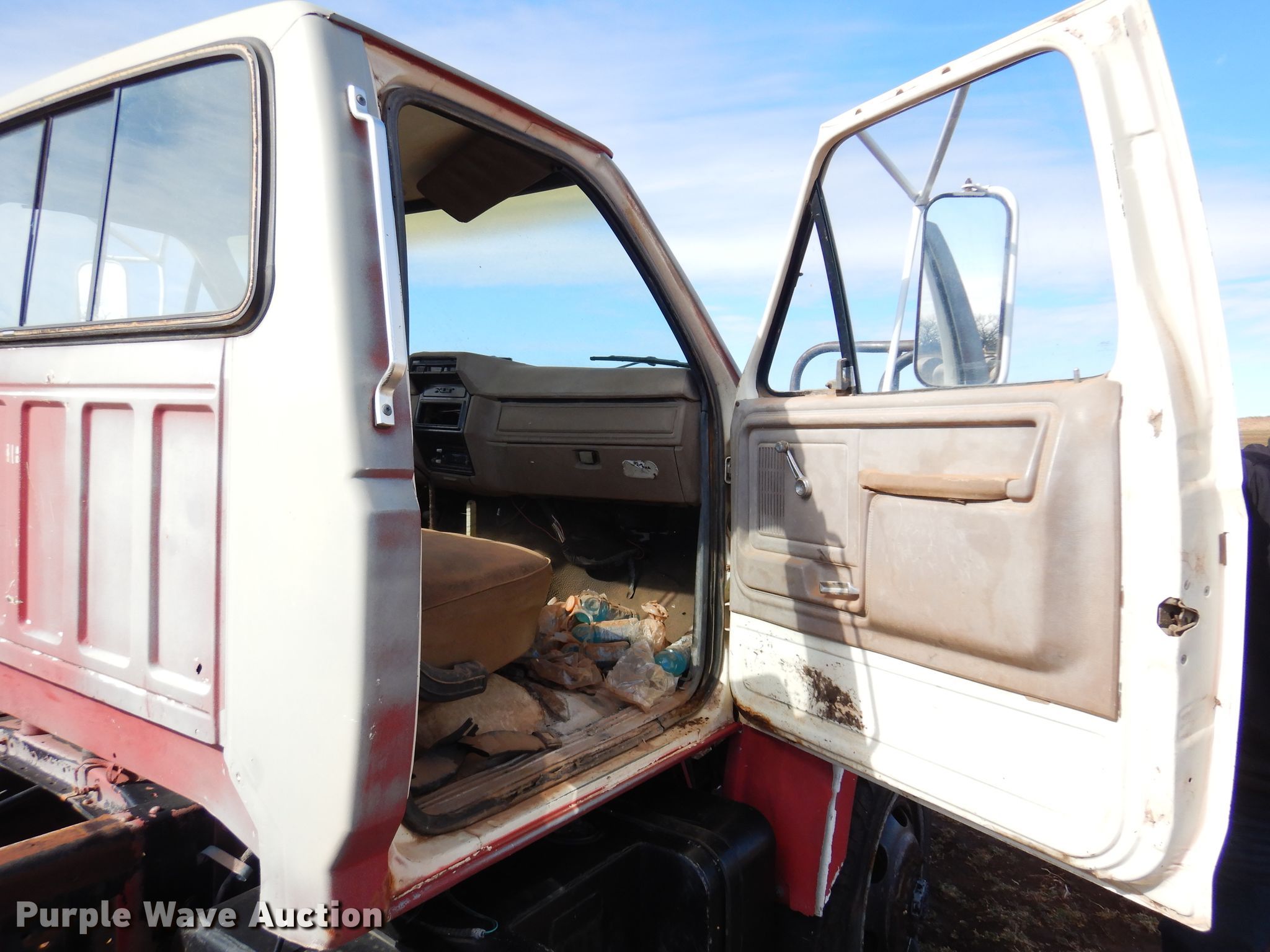 Purple Wave is selling a used Truck Chassis in Kansas. This item is a 1986 Ford F700 truck cab and chassis with the following: Miles: 77,368 on odometer, VIN: 1FDNF77H8GVA15878