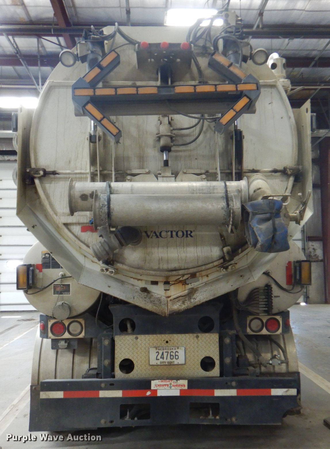 2005 Sterling L8500 sewer jetter truck. Miles: 42,108 on odometer, Hours: 7,554 on meter, VIN: 2FZHAWDAX5AN83472. Engine Caterpillar C9, Displacement: 8.8L, Cylinders: 6, Fuel type: Diesel. Transmission Automatic. Chassis Axles: Tandem, Suspension: Walking beam, Brakes: Air, PTO, GVWR: 60,000 lbs, Wheelbase: 270". Interior AC, Heat, Cruise control, Auxiliary controls. Features Tank bed Vactor 2100, Serial: 04-09V-9101, Capacity: 1,300 gallons, Rear outlet: 8", Vacuum pump Vactor 2112-J6, Serial: 04-09V-9101, (4) tanks Capacity: Approx. 1,500 gallons, Hose reel Front, Hydraulic, Diameter: 1", Telescopic boom Diameter: 8".. Tires Front: 425/65R22.5, Rear: 11R22.5. Notes Transmission fluid leak. Nebraska title. City of Lincoln Fleet Dept.. 901 W Bond St. Lincoln, NE 68521