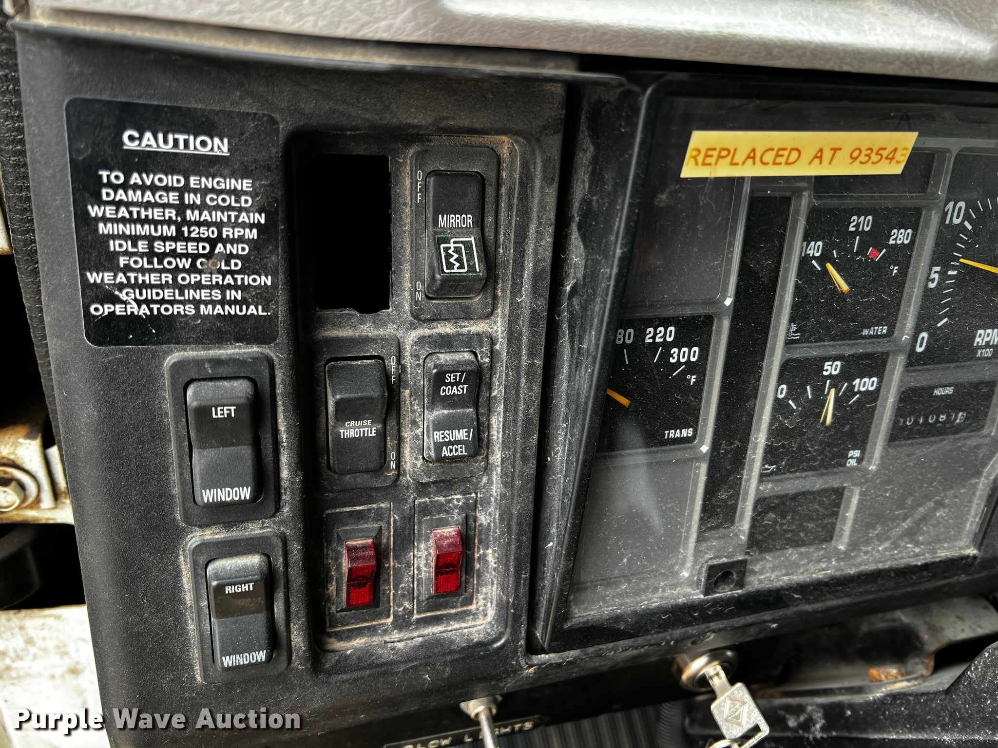 2001 International 4900 dump truck. Miles: 11,603 on odometer, Hours: 1,082 on meter, VIN: 1HTSHADR91H357568. Engine International 530, Displacement: 8.7L, Cylinders: 6, Fuel type: Diesel. Transmission Automatic. Chassis Axles: Tandem, Suspension: Spring over walking beam, Brakes: Air, Front mount PTO. Interior Heat. Operational Dump bed 12' L x 8' W, Side height: 43", Side board height: 6", Bed type: Steel, Roll tarp, Ram: Single , End gate: Air operated. Tires Size: 11R22.5. Notes Engine issues, water in oil. Kansas title. City of Parsons. 1000 N 21st St. Parsons, KS 67357