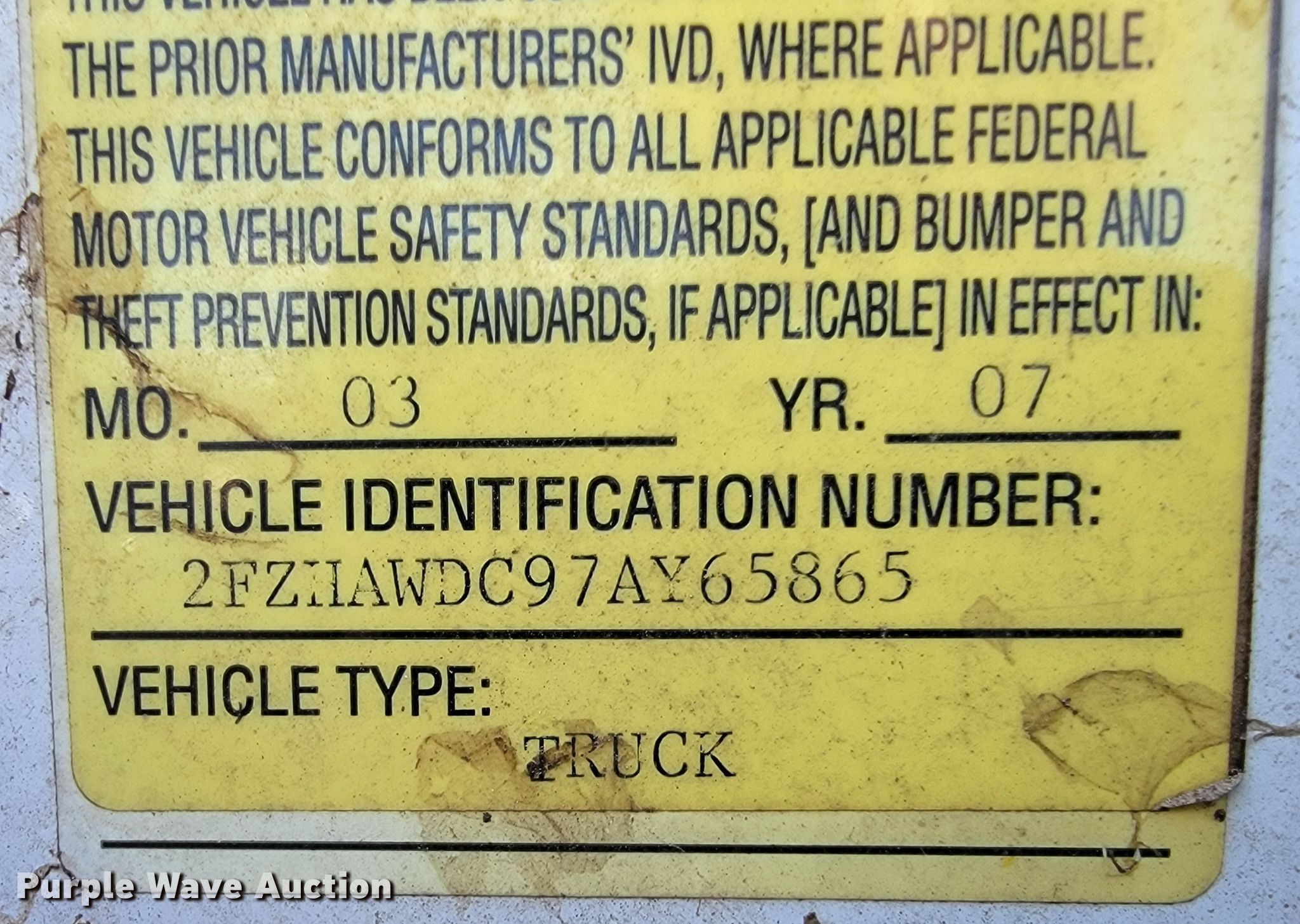 - VIN: 2FZHAWDC97AY65865