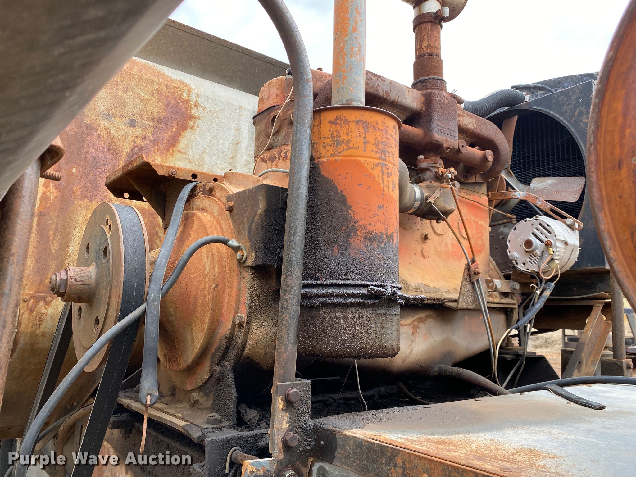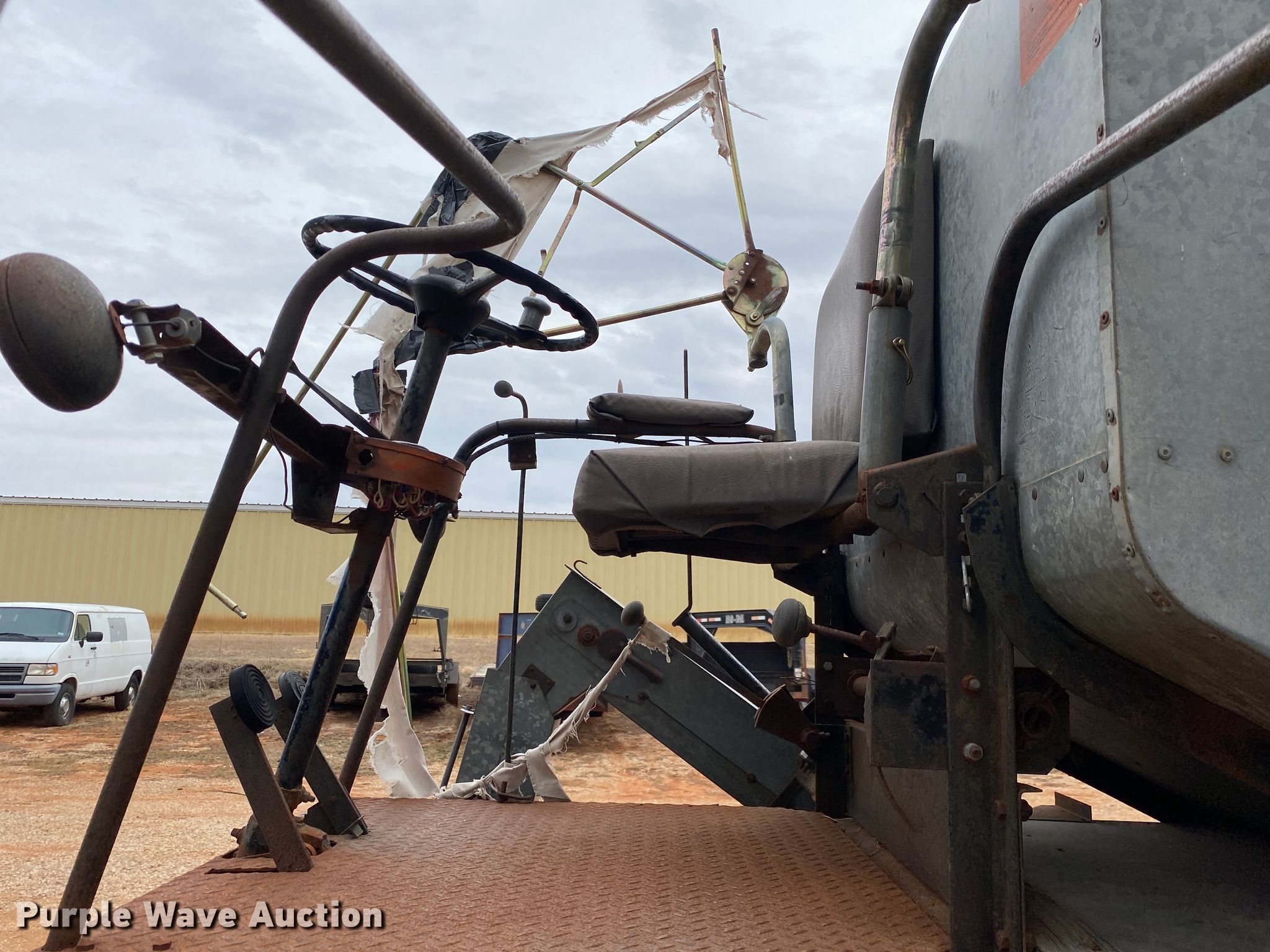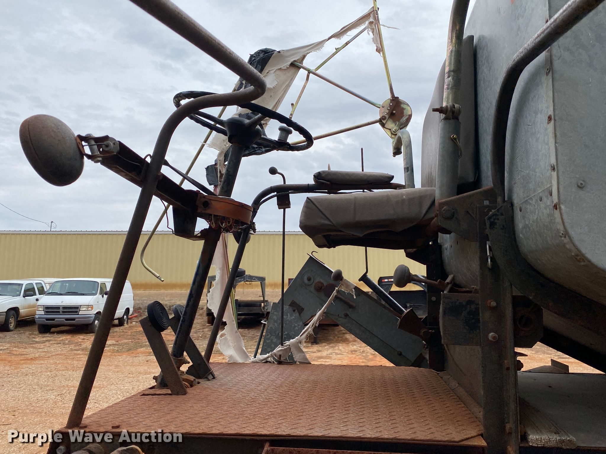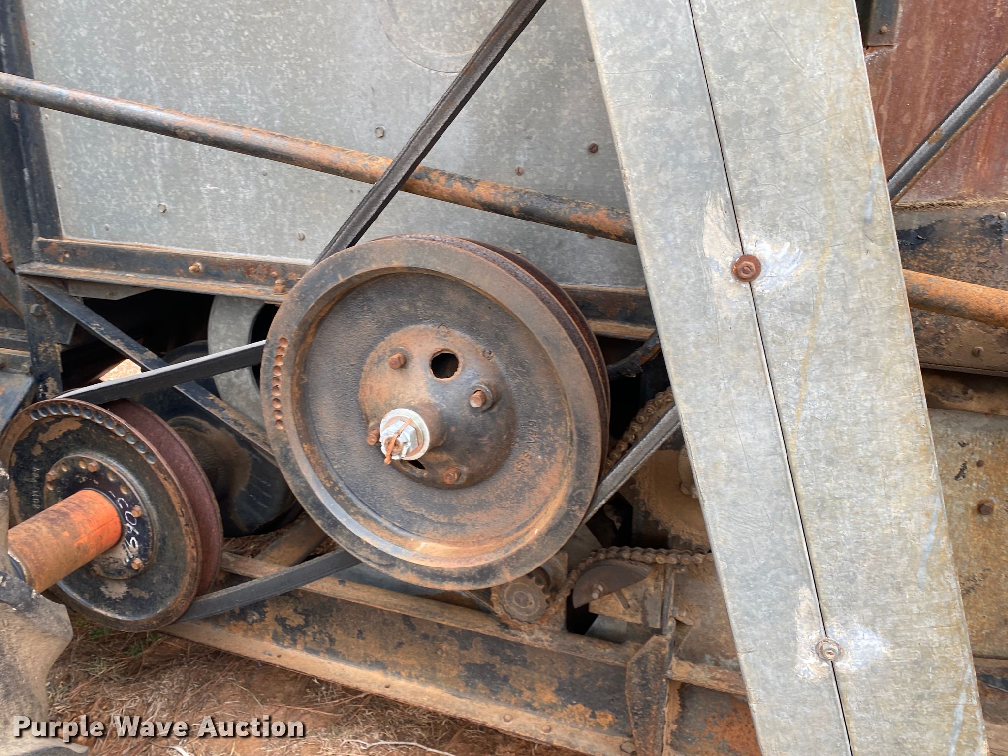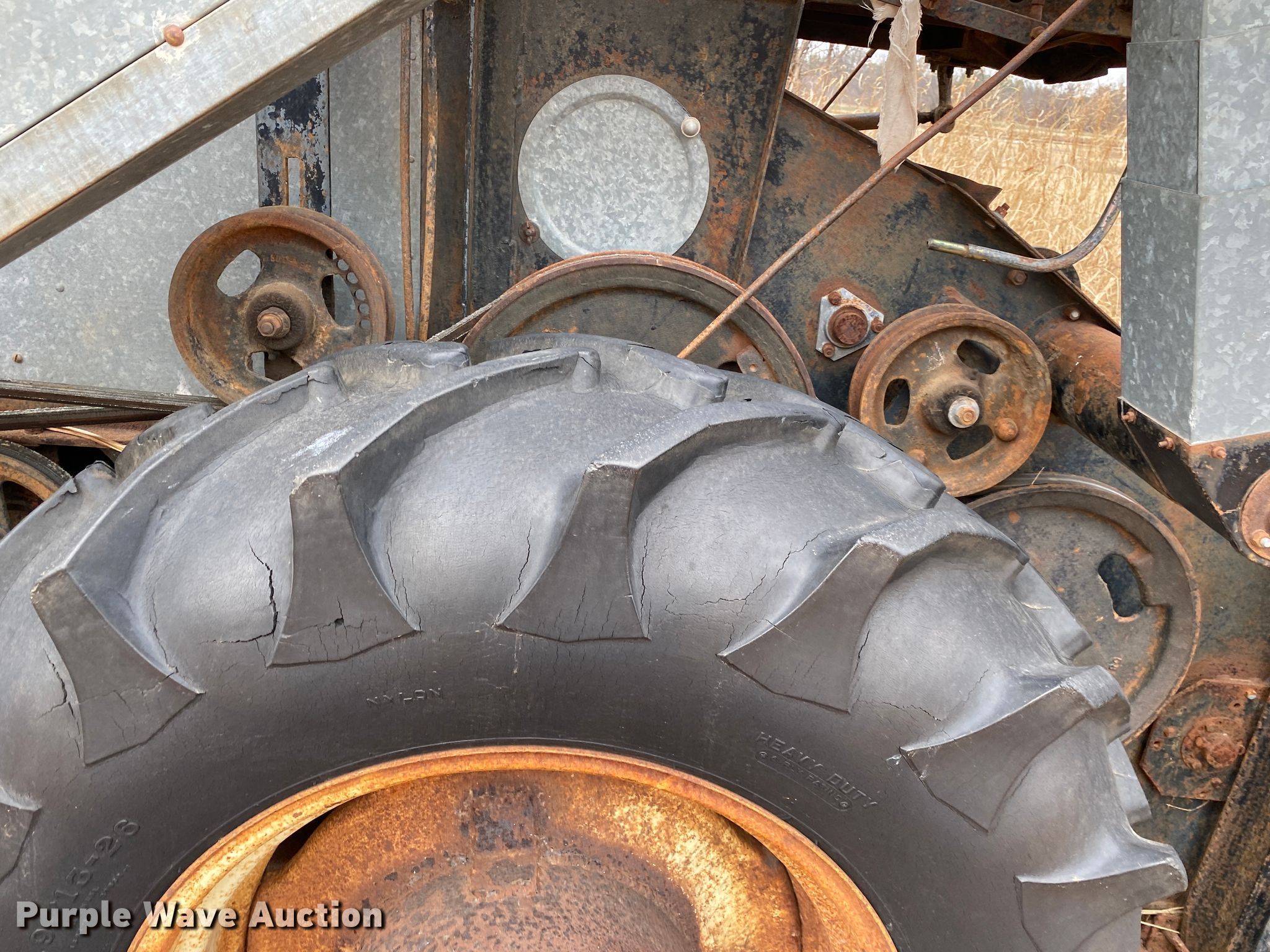 1959 Gleaner A combine. Serial: A19646, Sale# 2224-KP. Engine Fuel type: Gas. Transmission Manual, 4F - 2R. Operational Chaff spreader, Unloading auger length: 6', Platform head Rigid, Width: 65', Reel: Finger Hydraulic reel height control.. Tires Front: 14.9-26, Rear: 6.09-18. Notes Flat tires, Unknown operating condition. All aspects of disassembly, load-out, and removal are the sole responsibility of the purchaser. Purchaser must provide proof of a one million dollar liability insurance policy prior to removal. Oklahoma State University. 2902 W 6th Ave. Stillwater, OK 74074