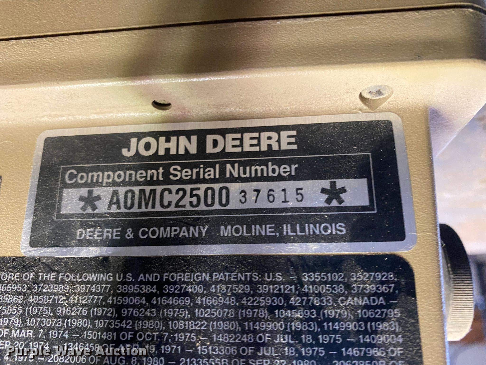 John Deere 7200 MaxEmerge 2 planter. Row units: 8, Row spacing: 30", Serial: 414HO7200E660660. Operational Seed delivery Individual seed hoppers, Row units Vacuum metering, Meter drive: Ground, Down pressure: Spring, Row cleaners, Disk openers: Double, Gauge wheels: Double, Closing system: Double Type: Rubber, Fertilizer/ insecticide Fertilizer Liquid capacity: 400 gallons, Electronics Monitor John Deere Computer Trak 250.. Pursuant to Kansas law, Purple Wave will not be collecting sales taxes on any of the purchases made in this business liquidation auction. David Voran Farms Retirement. Cimarron, KS 67835