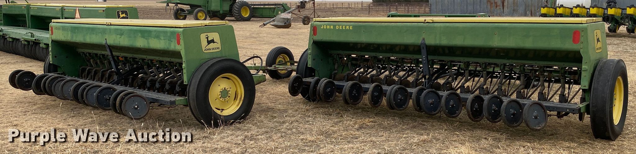 Purple Wave is selling a used Grain Drill or Seeder in Kansas. This item is a (2) John Deere 8300 grain drills with the following: Width: 26', Row units: 30, Row spacing: 10", Serial: 005774N, 004324N