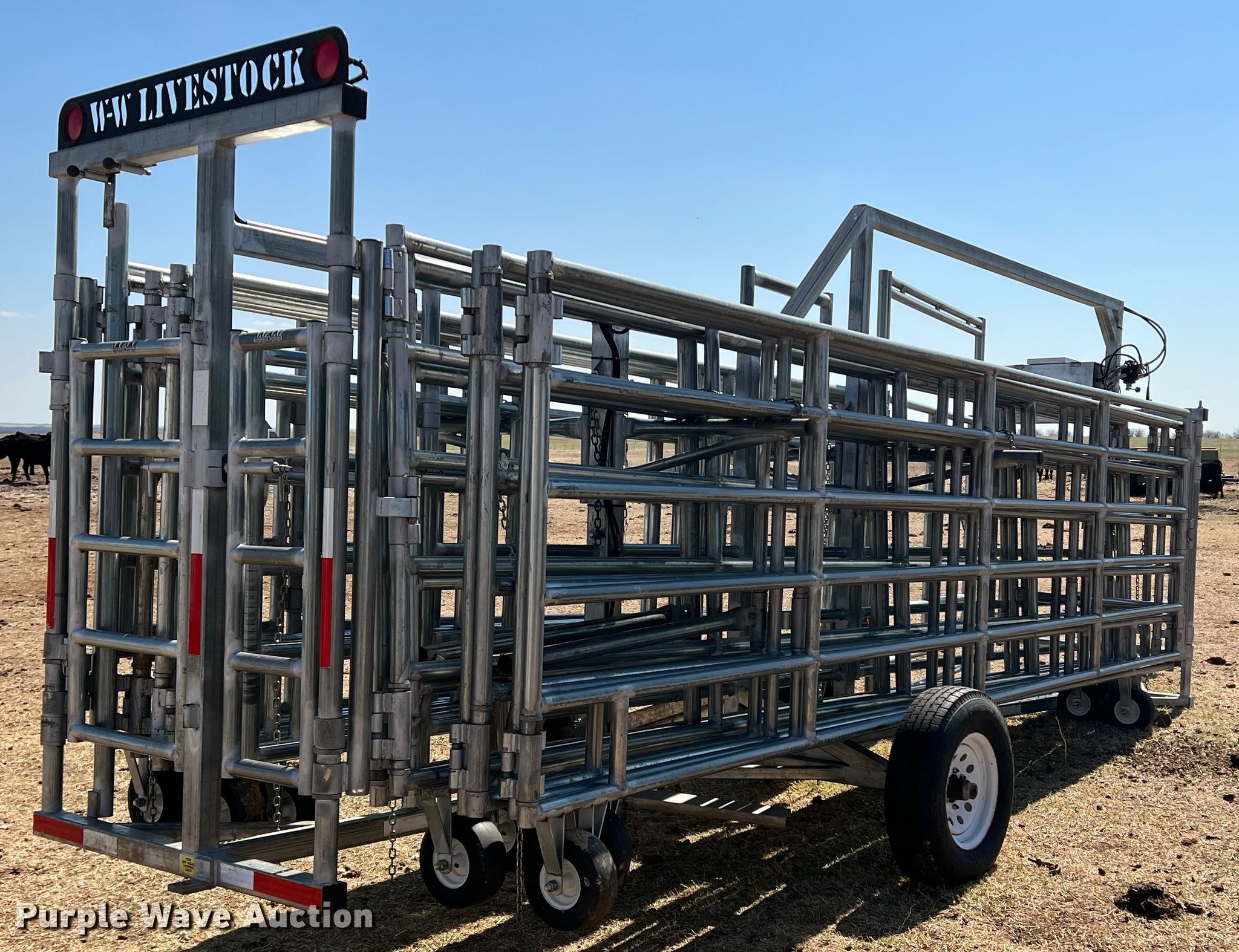 Purple Wave is selling a used Livestock Equip. in Oklahoma. This item is a WW corral with the following: Serial: LPC011055, Total length: 26', Panels, 20' W x 5' H, 163" W x 5' H, Hitch: 2" Ball, Tires: 235/80R16