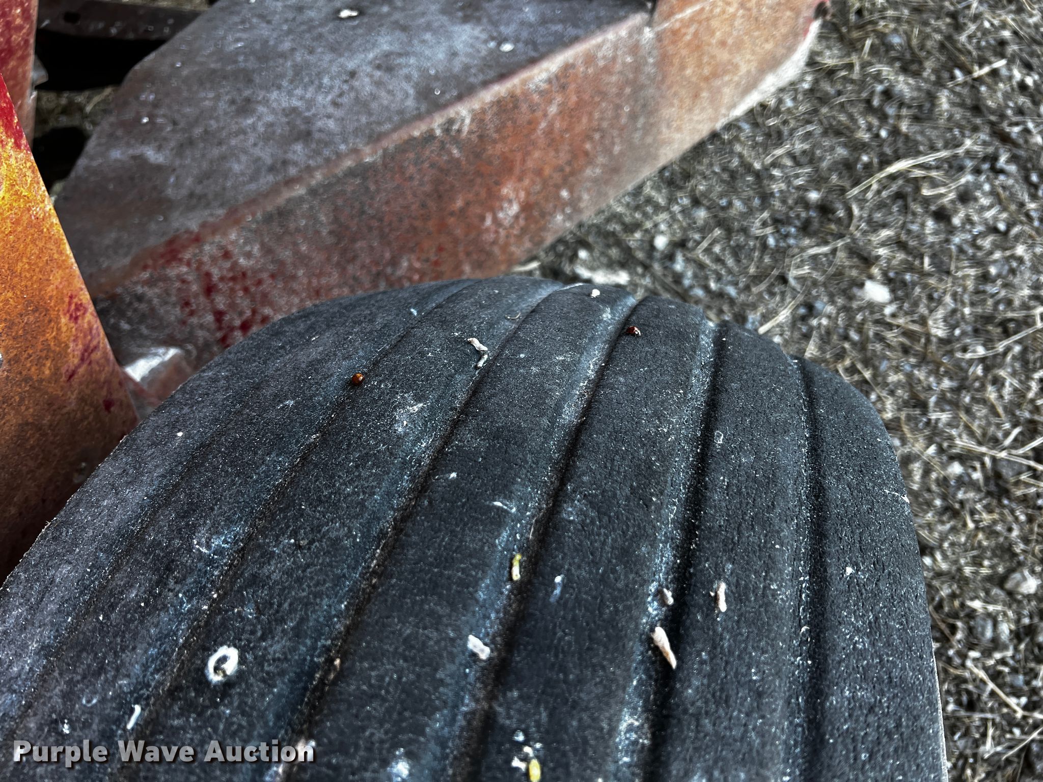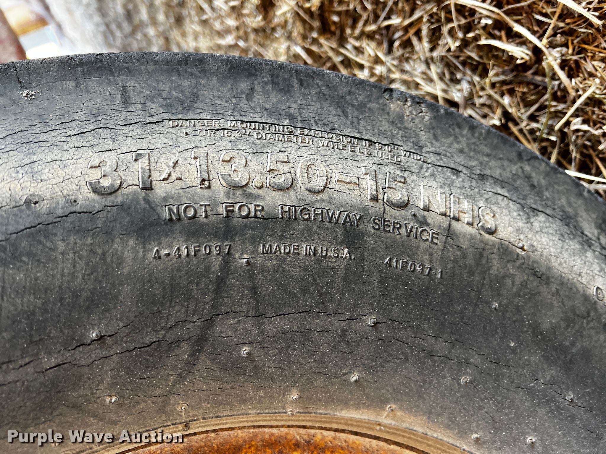 New Holland 357 feed grinder/mixer. Operational. PTO: 540, Auger Quantity: 1, Diameter: 8", Discharge: Side Width: 24", Chute: Manual, Door: Manual. Chassis Suspension: Spring. Tires Size: 31x13.50-15. Stich Enterprise. 7250 130th Rd. Chanute, KS 66720